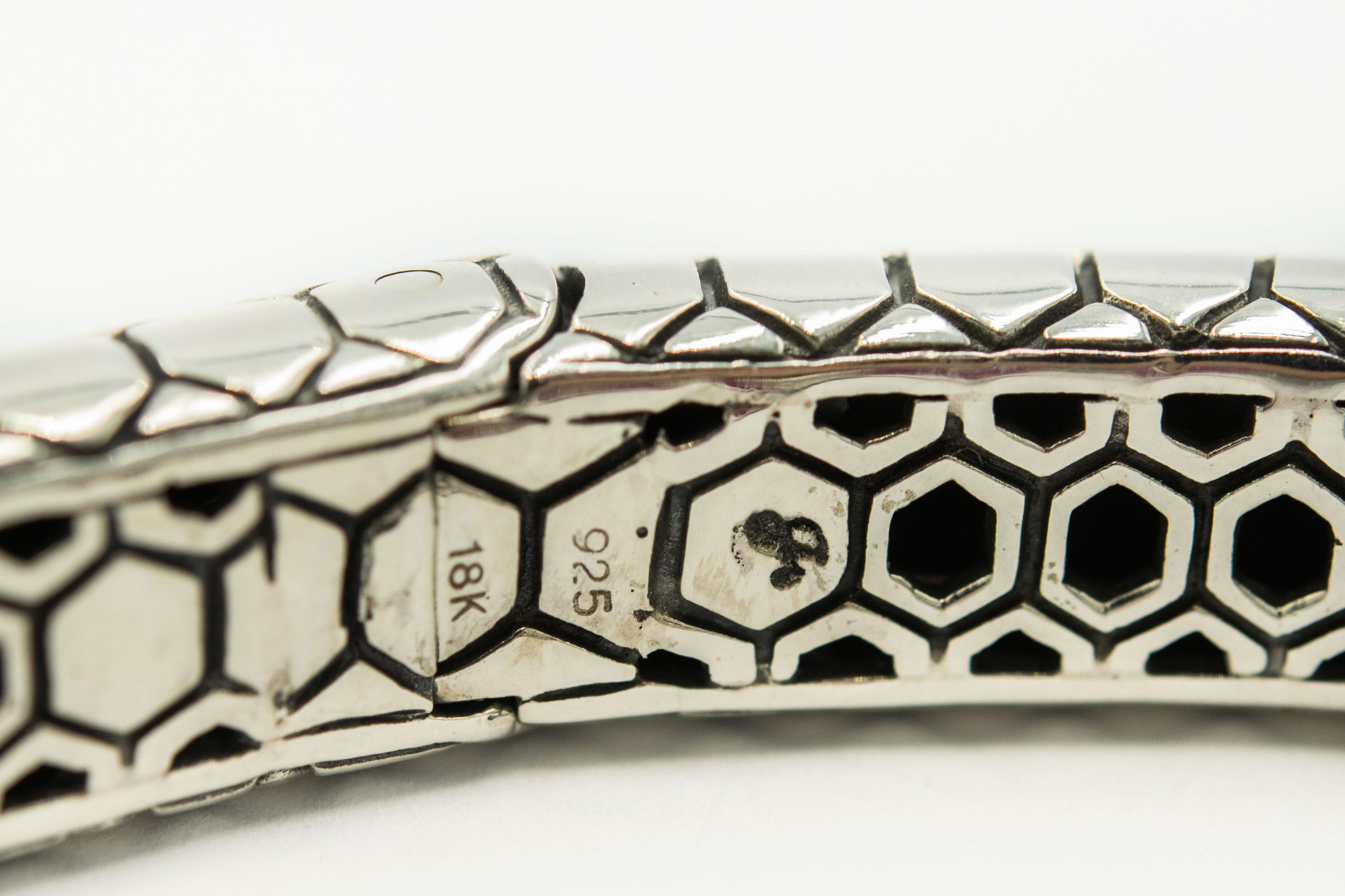 Estate Sterling Silver Yellow Gold and Gemstone Bangle Bracelet by John Hardy; sterling silver; 18k yellow gold; 33.9dwt/52.72g; 8 1/2"