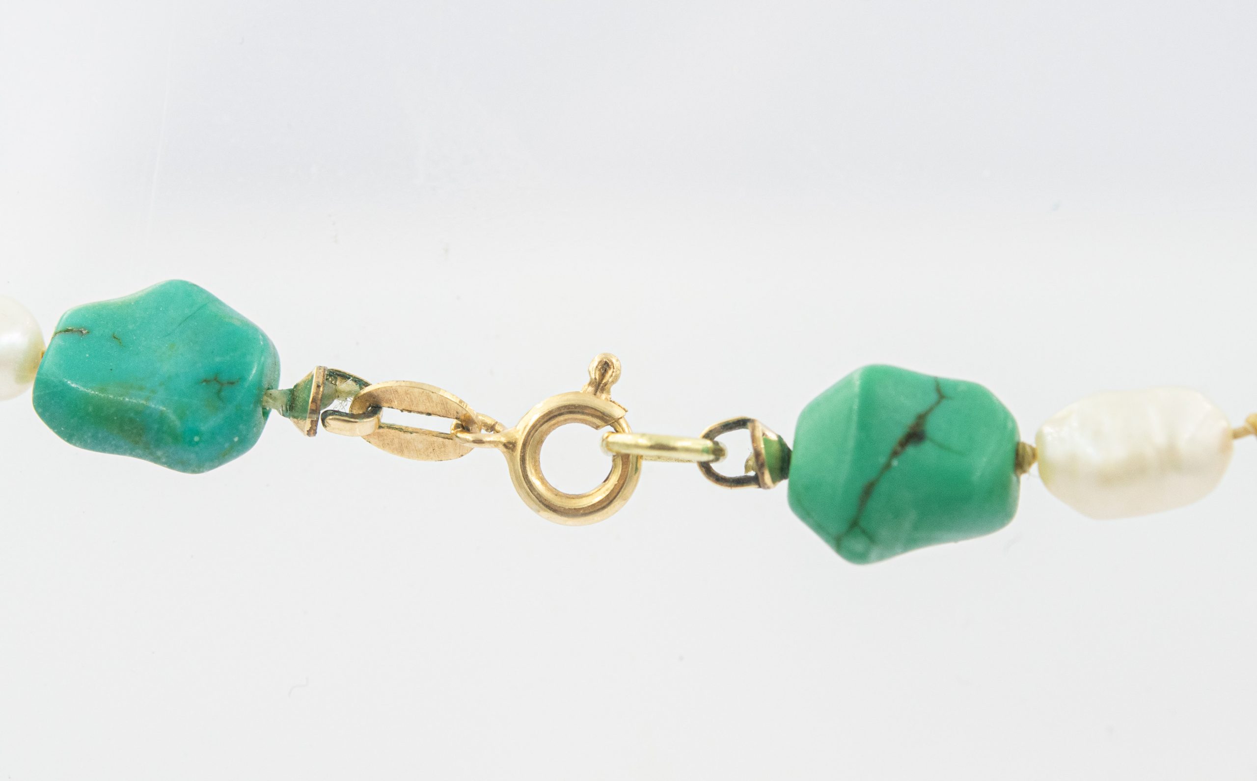 Estate Turquoise Pearl and Coral Necklace; 14k yellow gold clasp; 17"