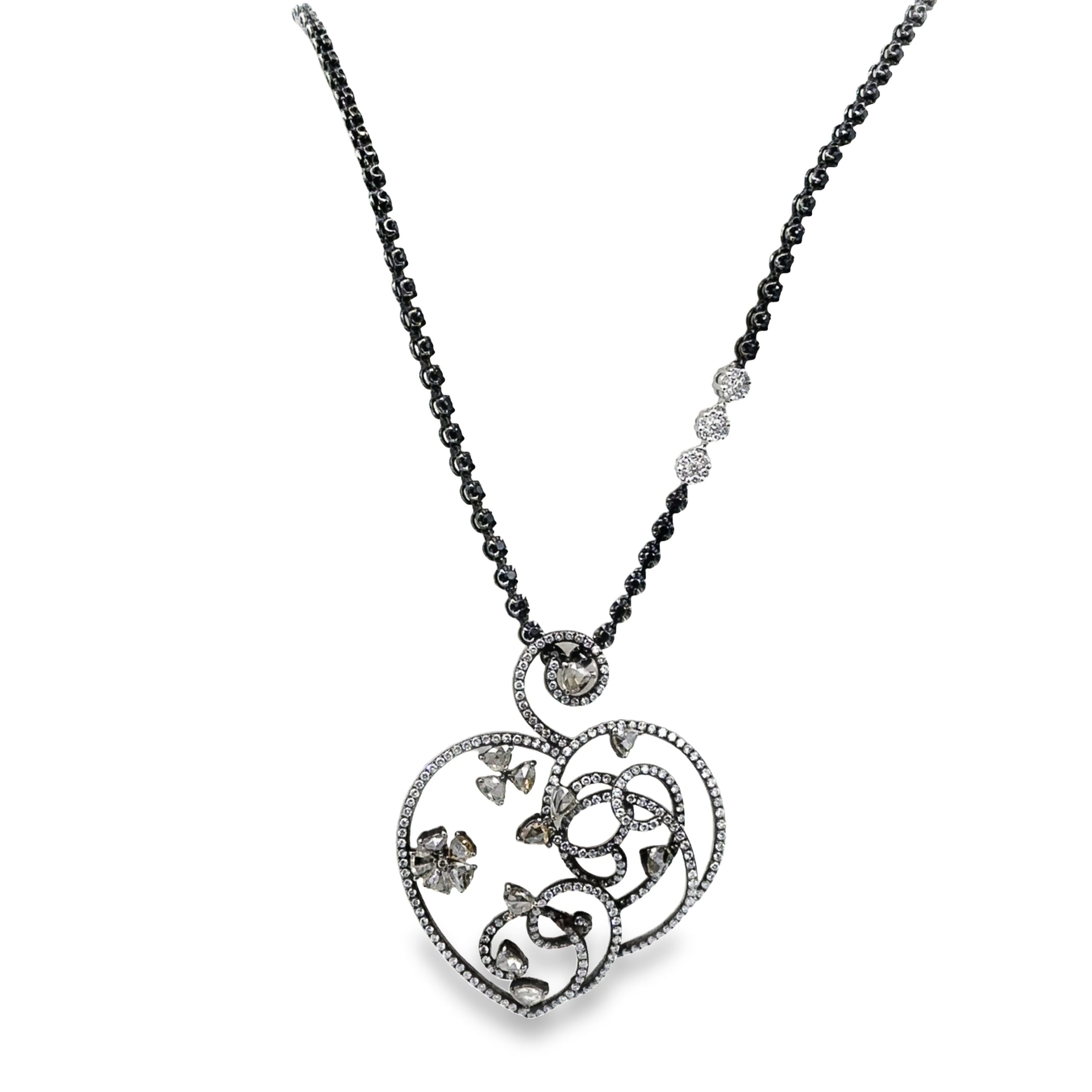 Estate Two Toned White and Black Opera Length Necklace; 24.20dwt/30.0g; 672 pave set fancy black and brown diamonds 8.50cts; 672 colorless fancy black and brown diamonds weighing 8.50cts; 32"