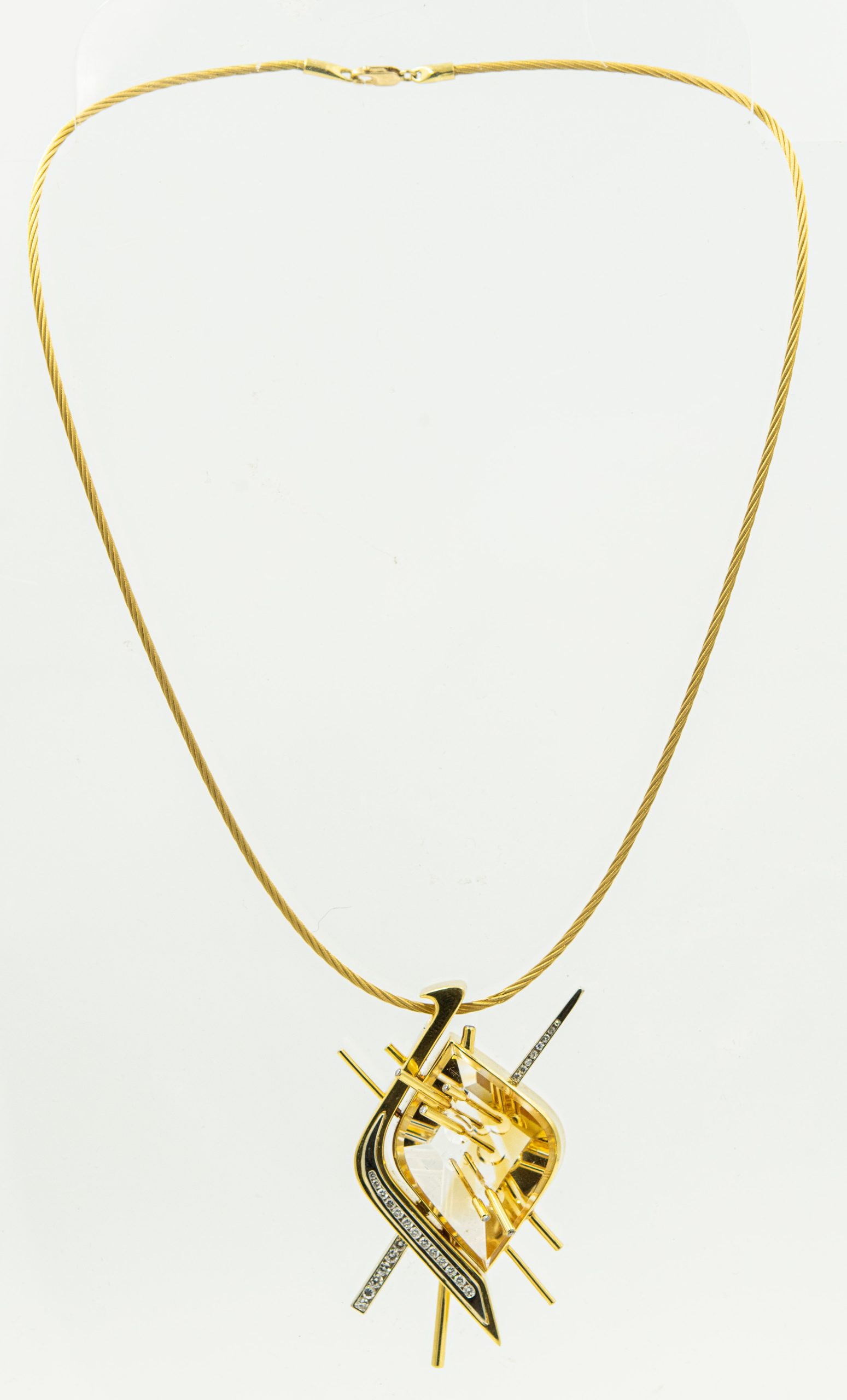 Estate Unique Atelier Munsteiner Fantasy Cut Citrine Diamond Necklace; 18k gold; platinum; 32.30dwt/50.0g; 37 diamonds .75cts; 16"