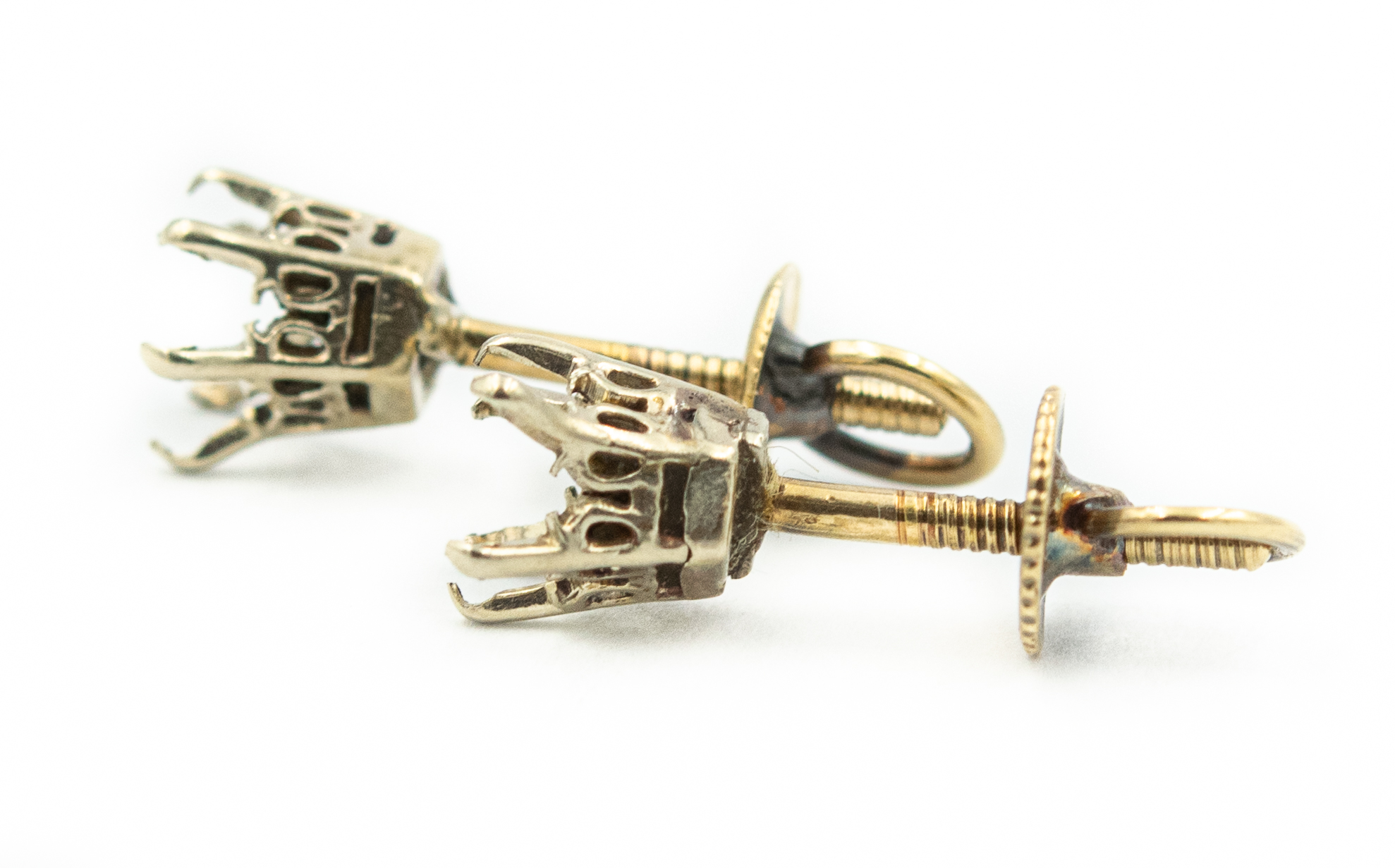 Estate Victorian Diamond Stud Earrings; platinum topped; 18K gold mounts; 1.00dwt/1.50g; 2 old mine cut diamonds 1.53cts