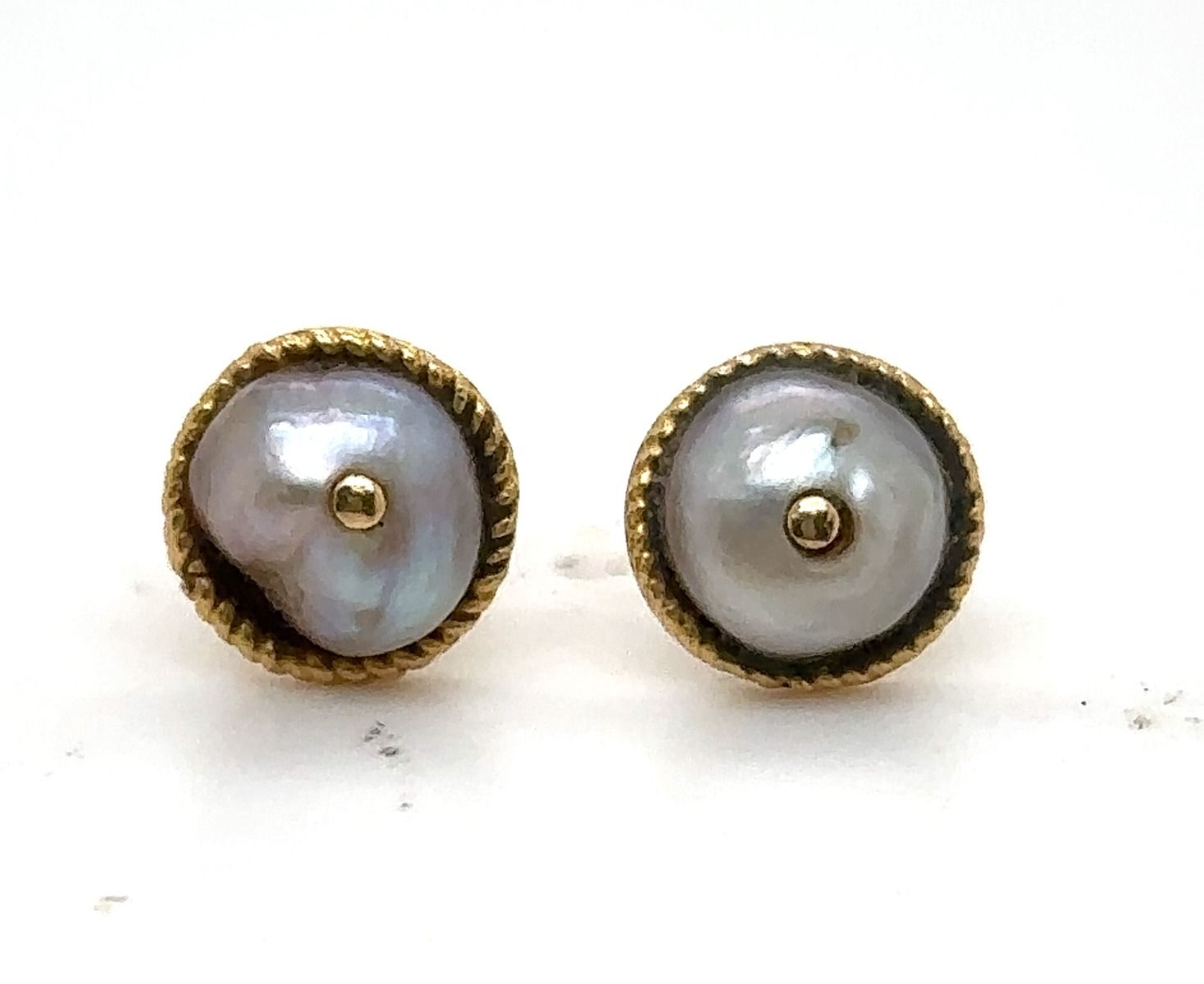 Estate Victorian Yellow Gold and Natural Pearl Earrings; 18k yellow gold; 1.90g; 7.0mm grey pearls exhibiting a rose/purple overtone with an excellent luster
