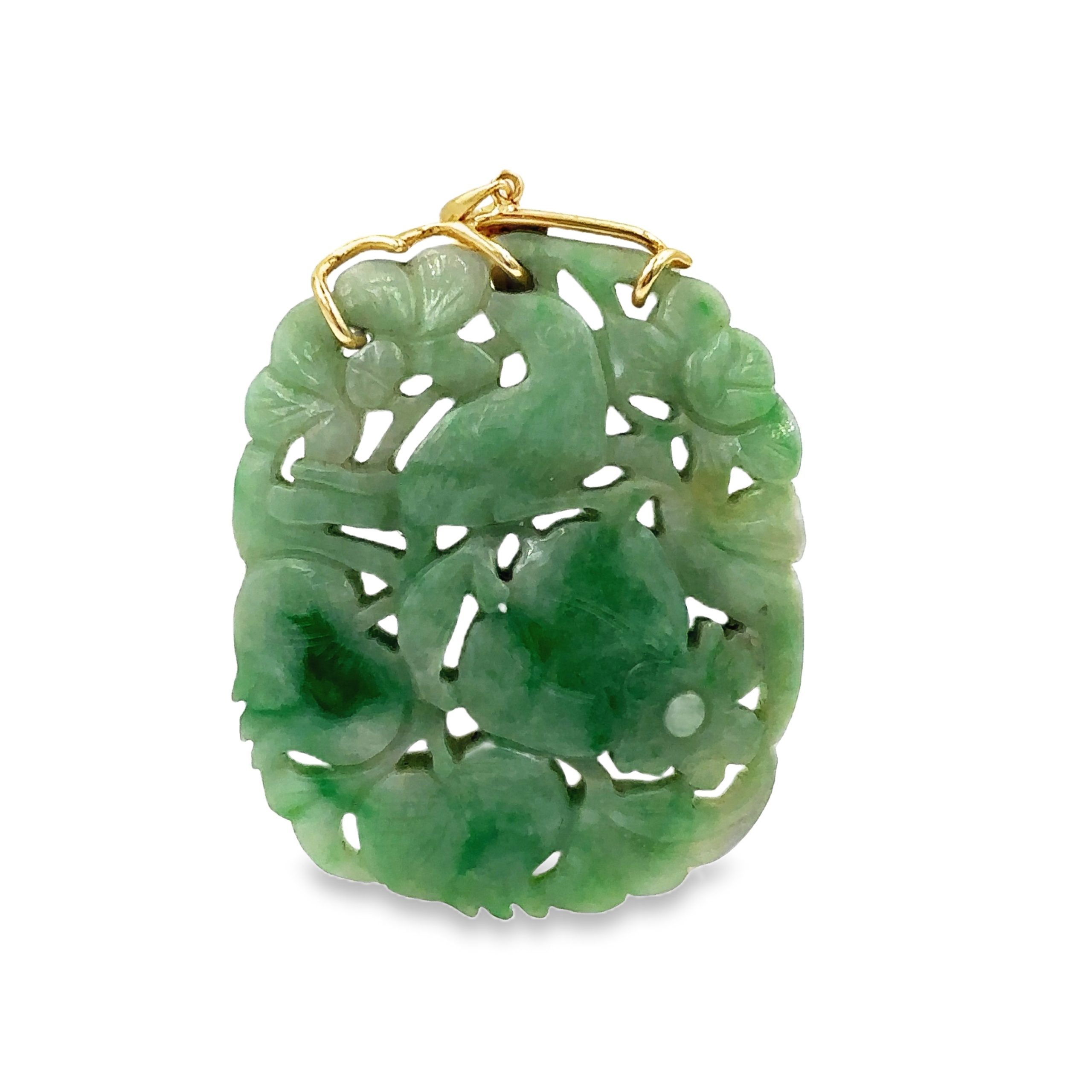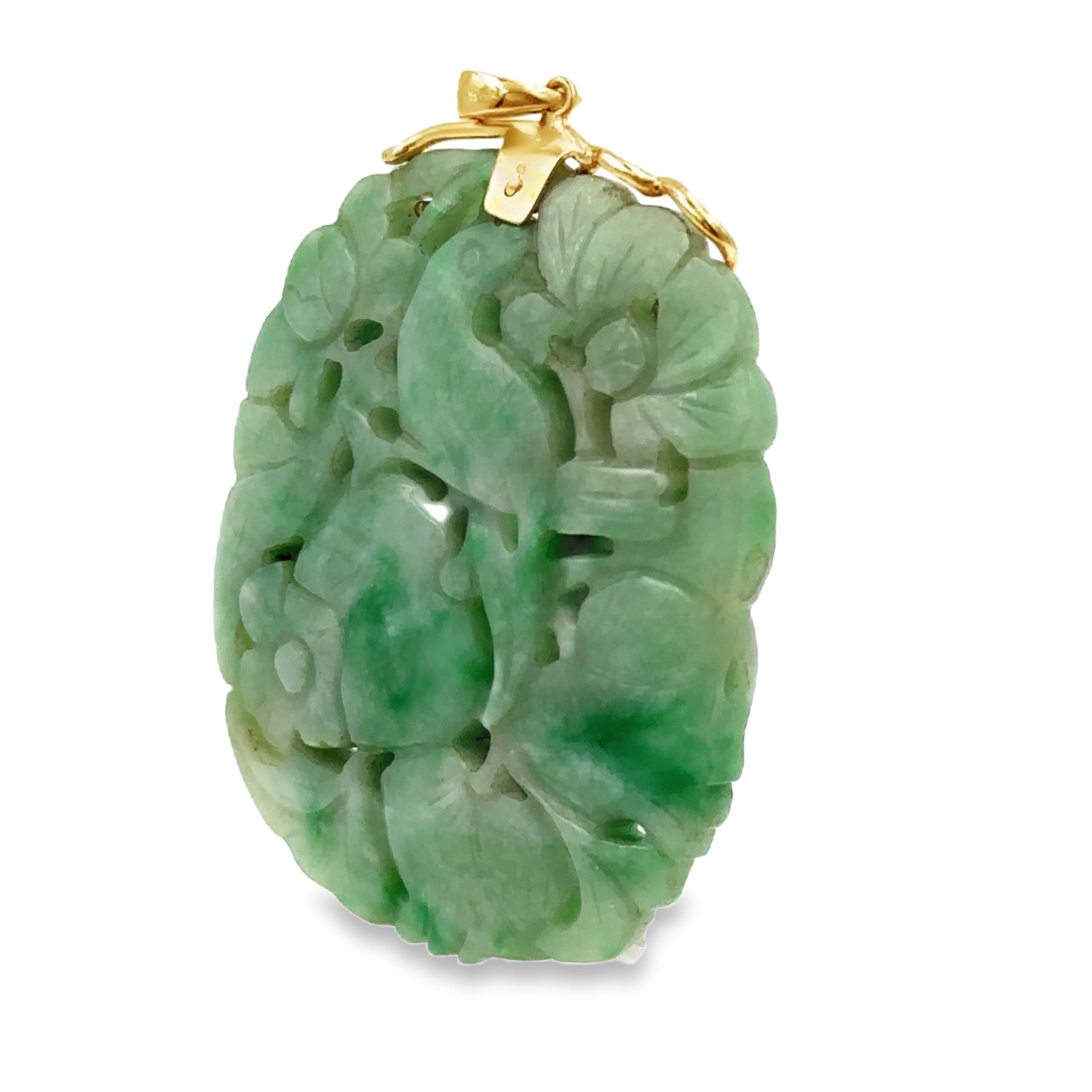 Estate Vintage Carved Jade Pendant; 14k yellow gold bail; 14.10dwt/21.90g; 2" x 1 3/4"