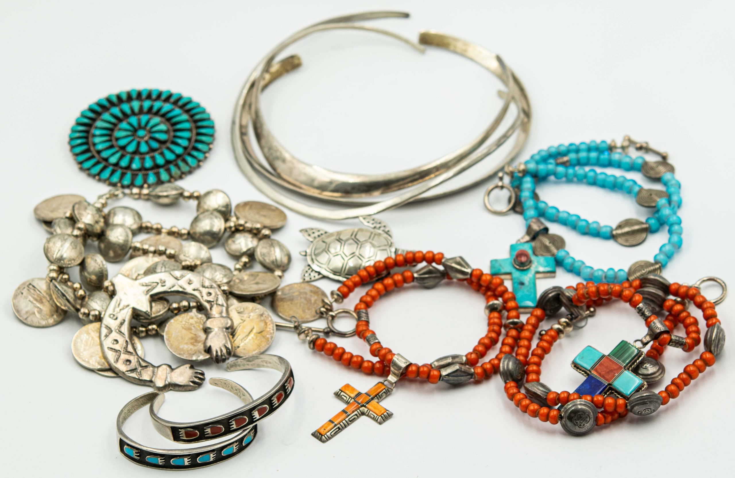 Estate Vintage Collection of (9) Native American Silver Jewelry Pieces