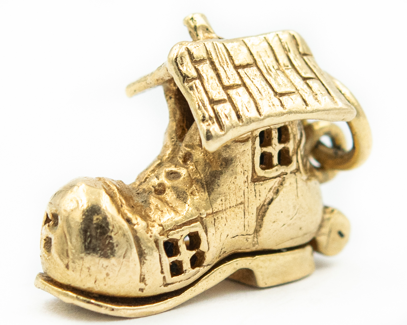 Estate Vintage Movable Yellow Gold Boot/Shoe House Charm; 14k yellow gold; 17mm x 13mm