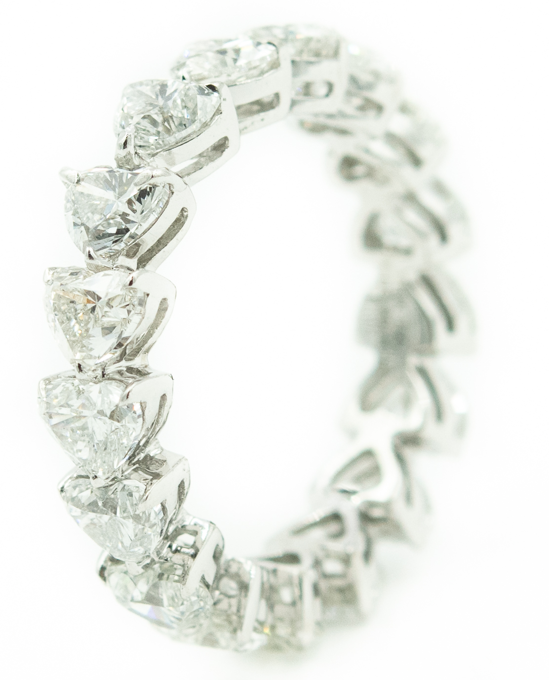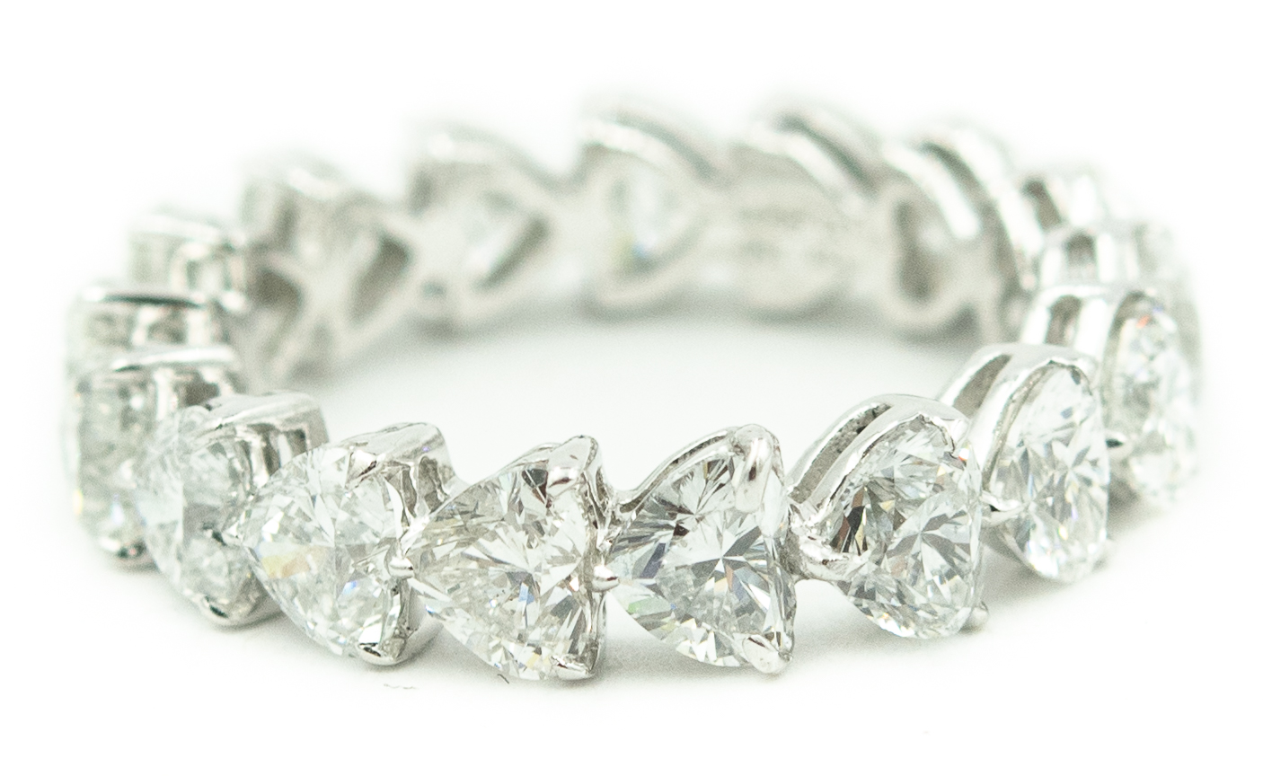 Estate Vintage Platinum and Diamond Heart Eternity Ring; platinum; 1.90dwt/3.00g; 17 heart shape diamonds 3.75cts; Ring Size 4 1/2