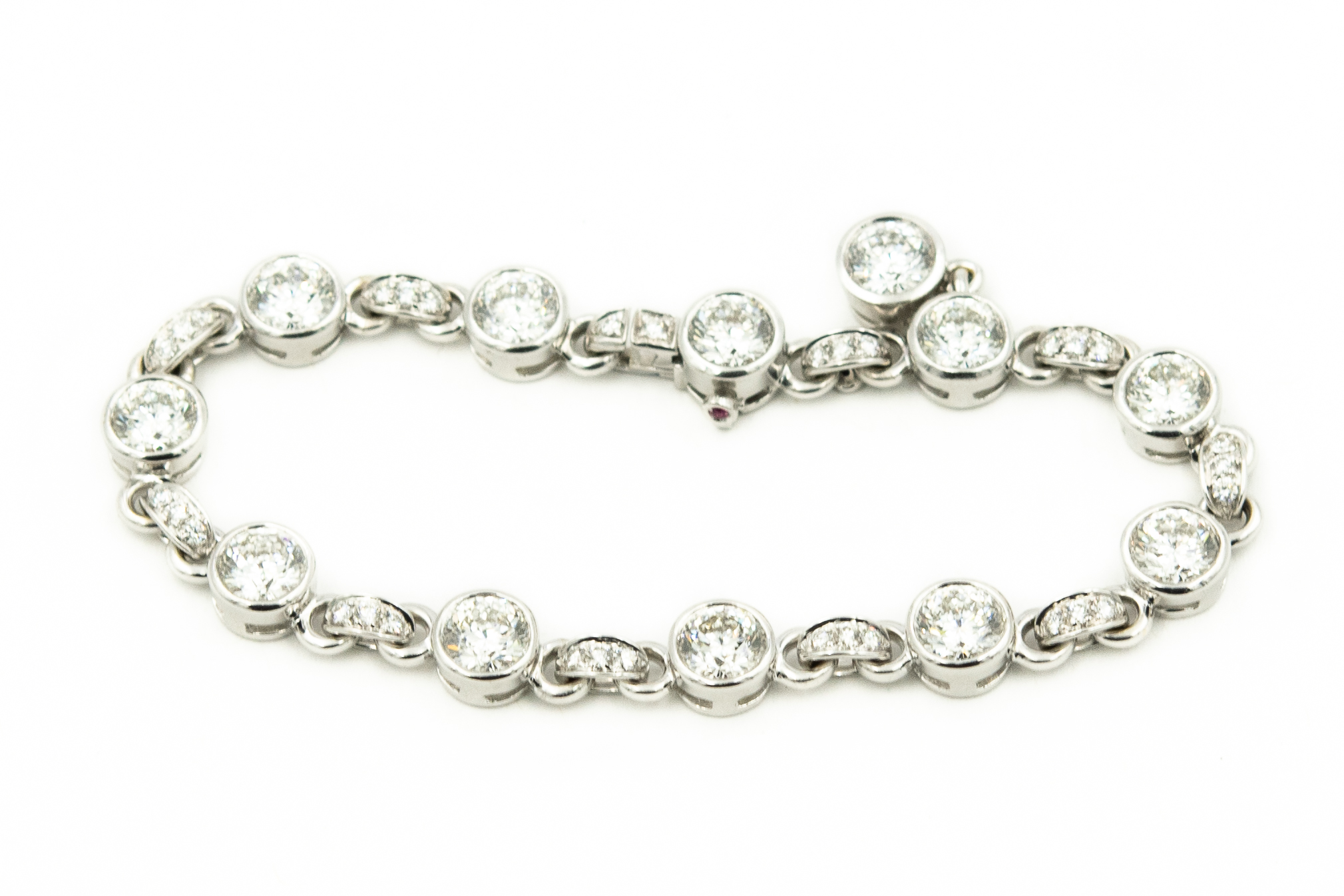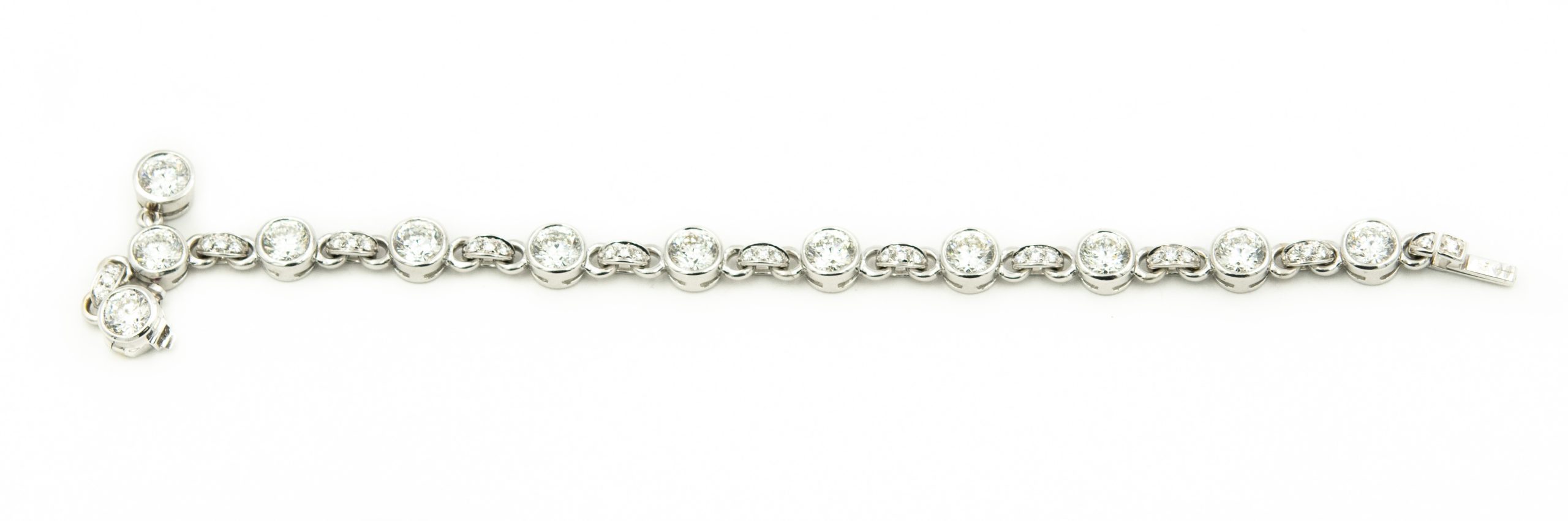 Estate White Gold and Diamond Bracelet by Roberto Coin; 18k white gold; 13.3dwt; 32 brilliant cut diamonds 8.84cts; 12 round brilliant cut diamonds 8.67cts