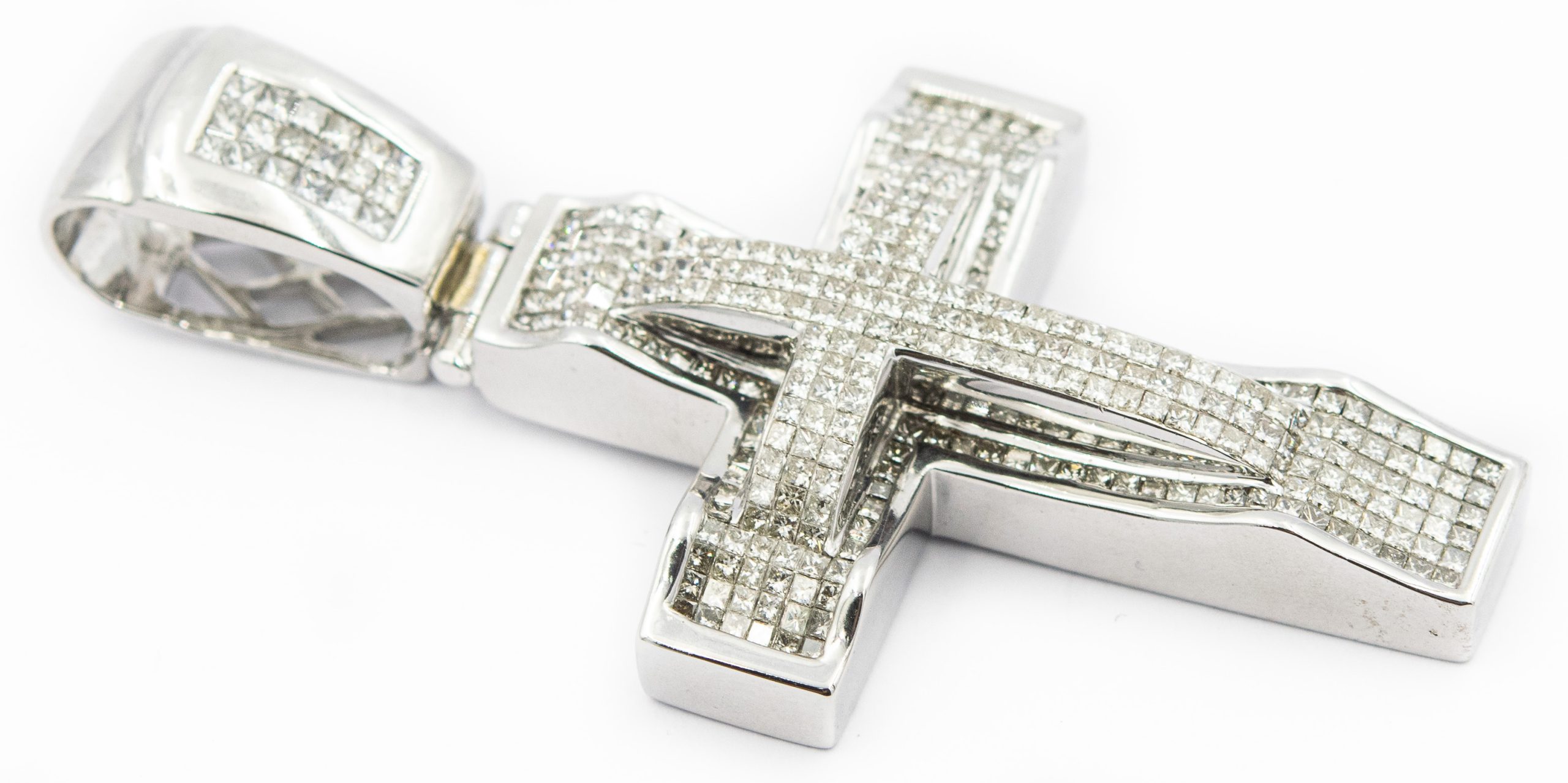 Estate White Gold and Diamond Cross Pendant; 14k white gold; 36.60dwt/56.9g; 323 diamonds 9.00cts; 3 1/2"