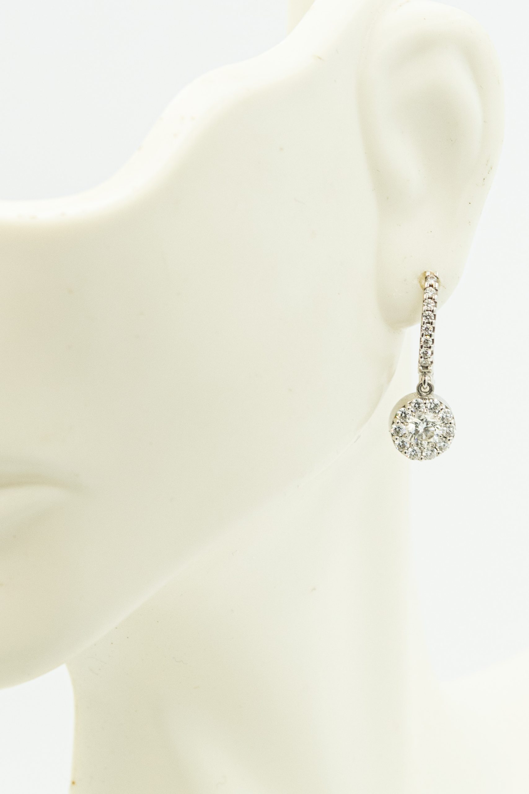 Estate White Gold and Diamond Earrings By Hearts On Fire; 18k white gold; 2.30dwt/3.50g; 38 round brilliant cut prong and bezel set diamonds; Signed "HOF". Brand new these earrings are $6500