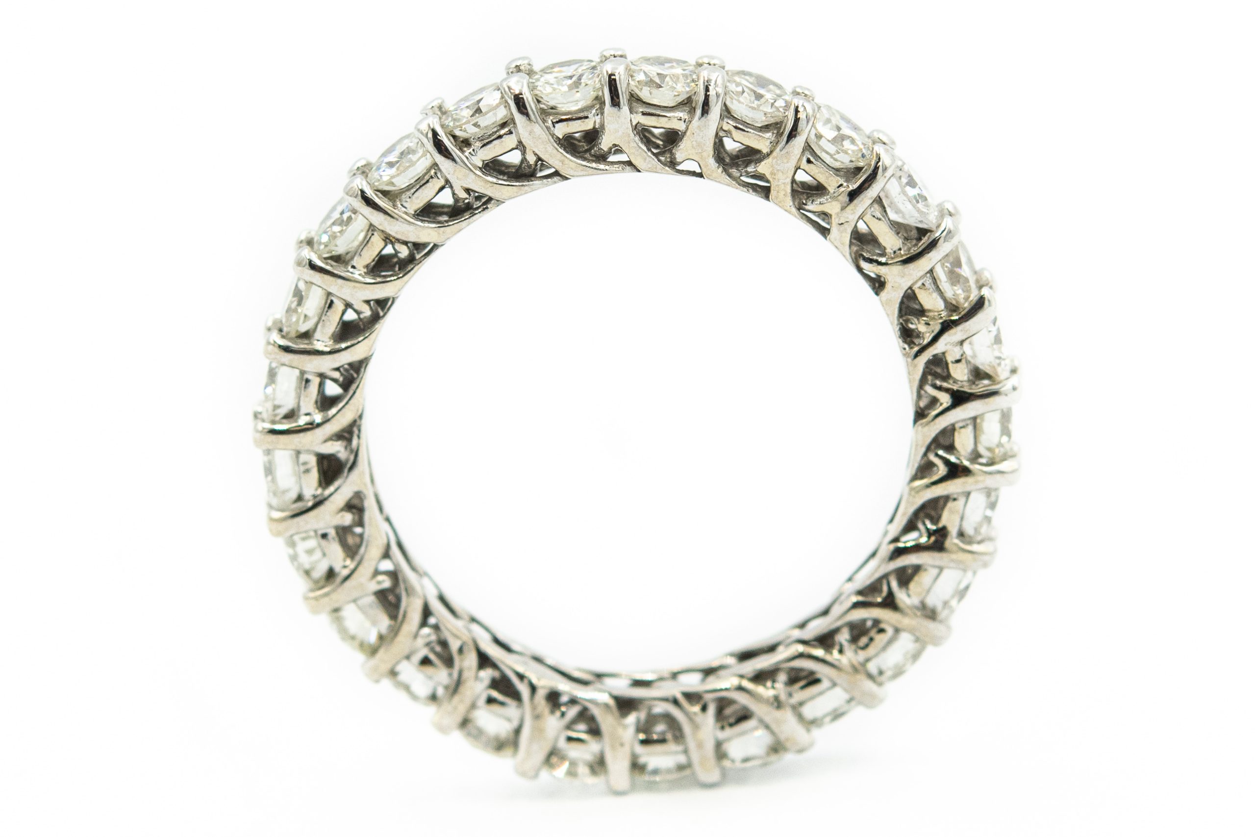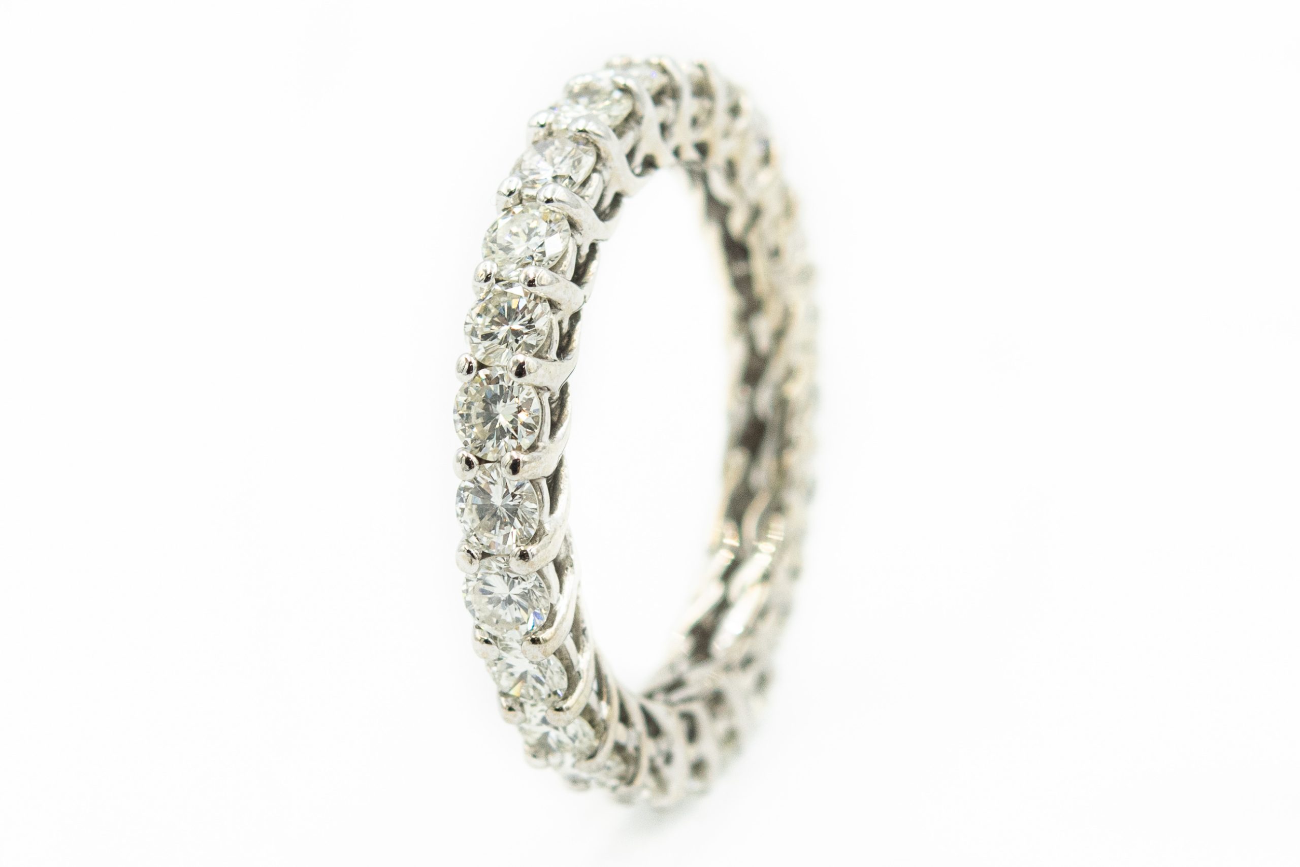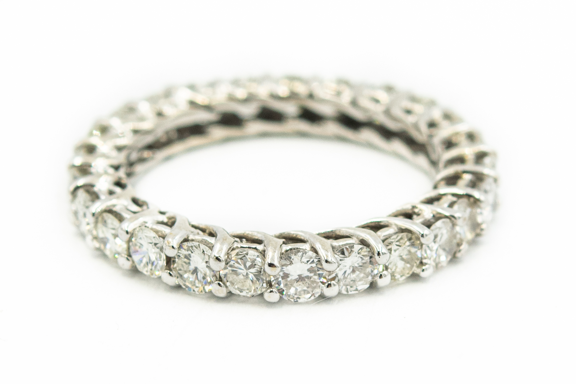 Estate White Gold and Diamond Eternity Ring; 14k white gold; 3.0dwt/4.69g; 25 round brilliant cut diamonds weighing 2.75; Ring Size 9