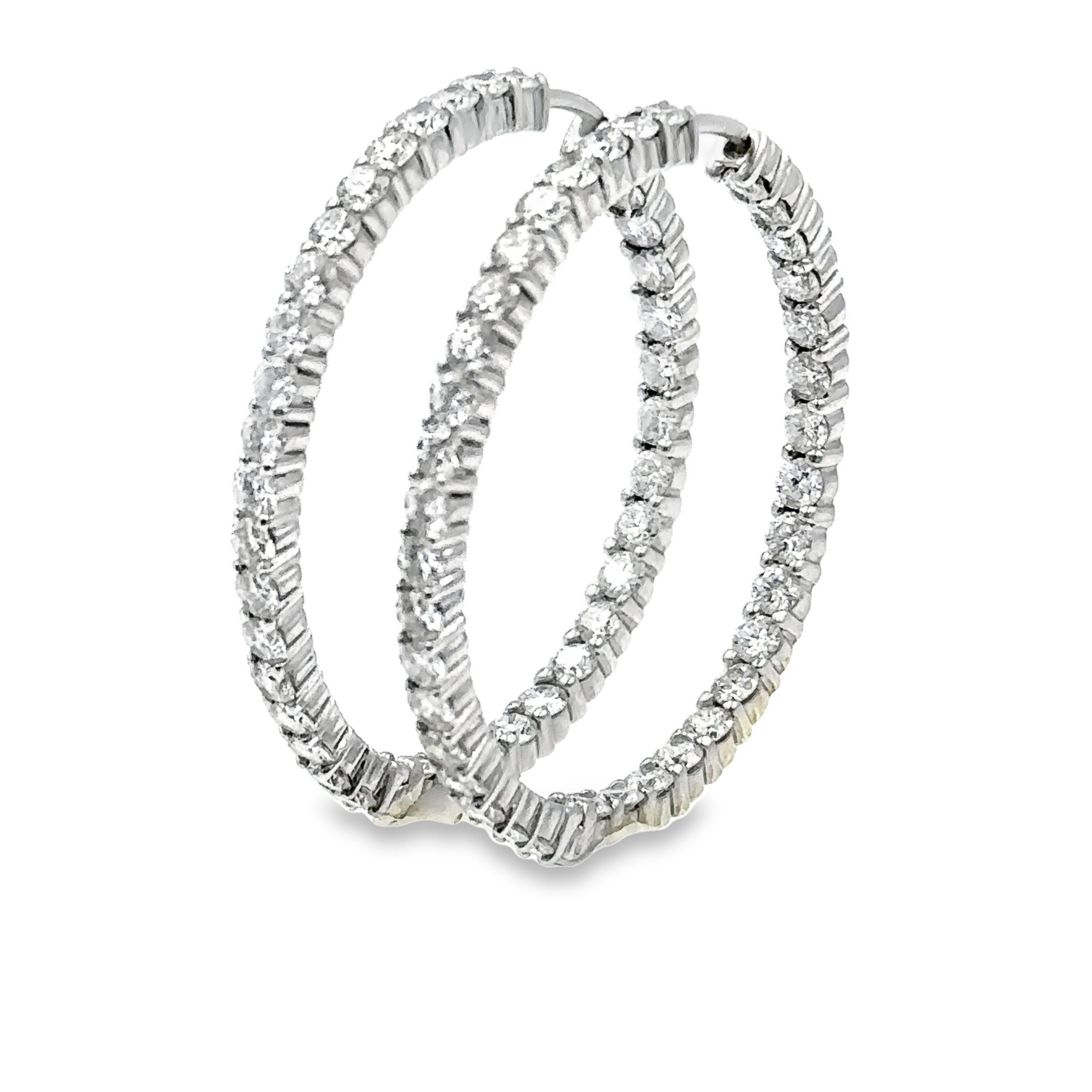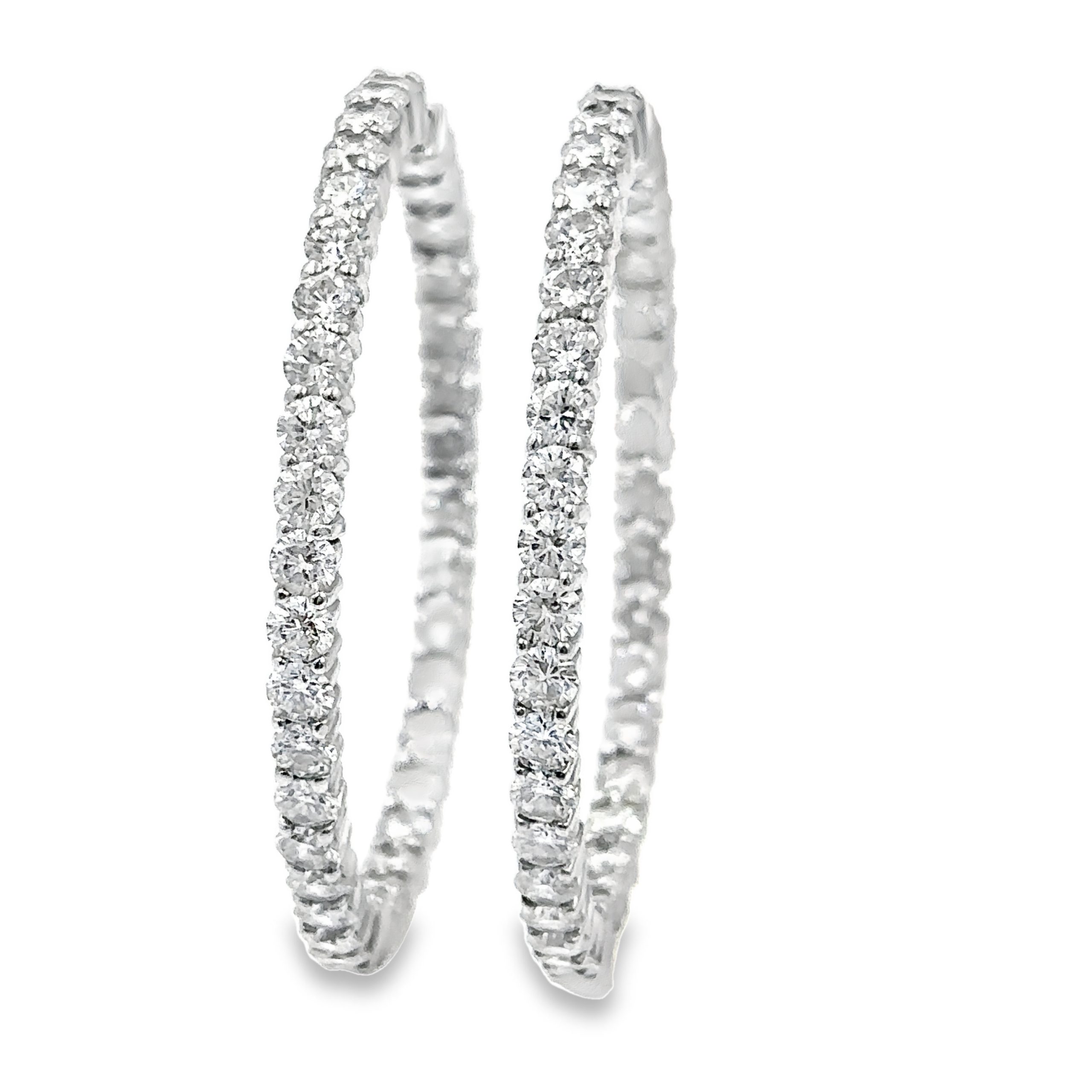 Estate White Gold and Diamond Hoop Earrings; 14k white gold; 7.40dwt/11.50g; 80 diamonds 6.50cts
