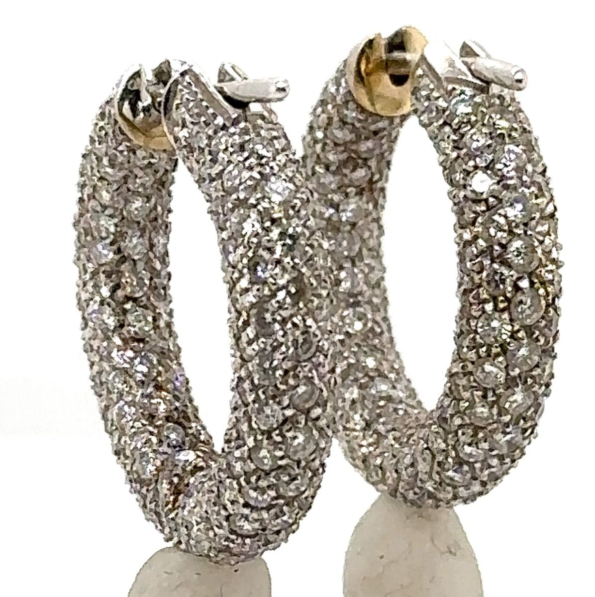 Estate White Gold and Diamond Hoop Earrings; 14k white gold; 7.50dwt/11.70g; 278 pave set brilliant cut diamonds 6.30cts