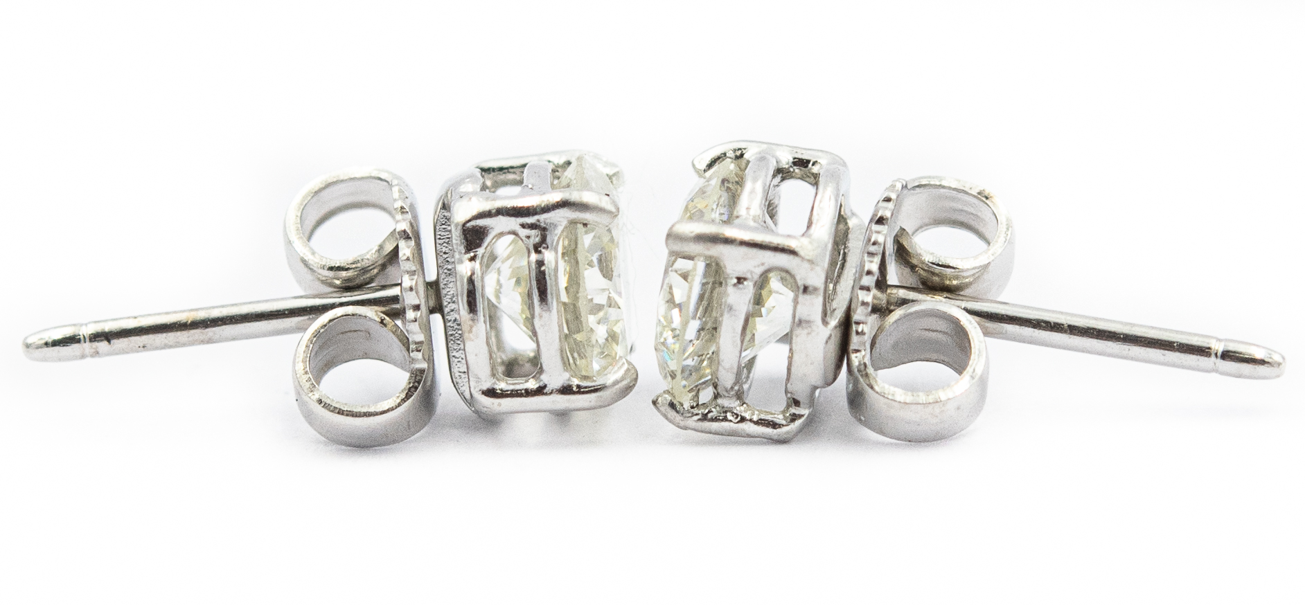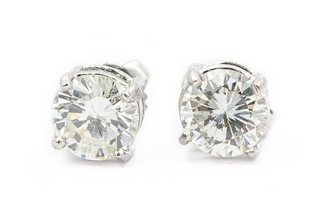 Estate White Gold and Diamond Stud Earrings; white gold; 2.20g; 2 diamonds 1.60cts