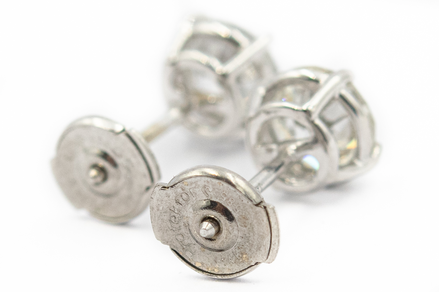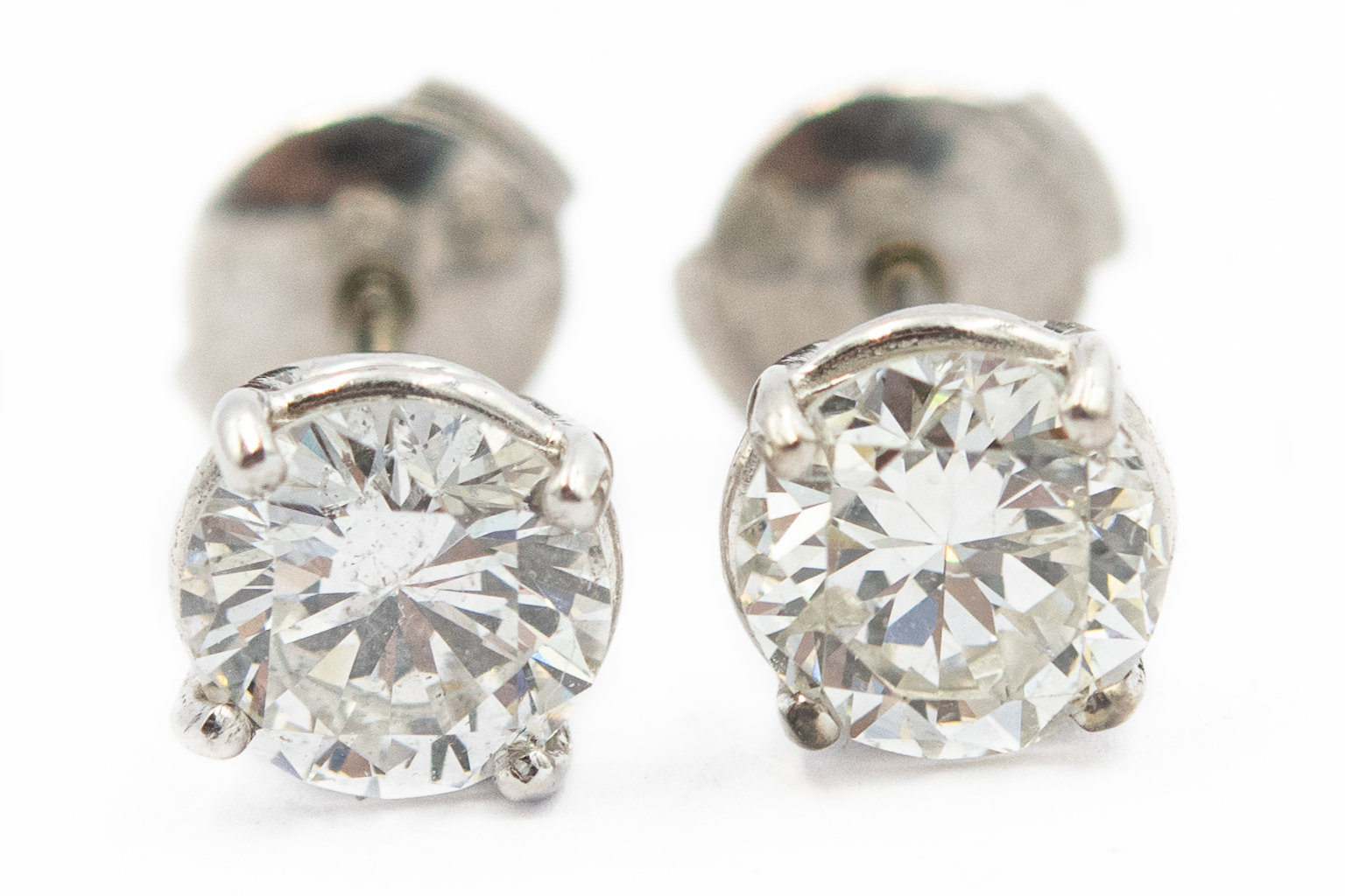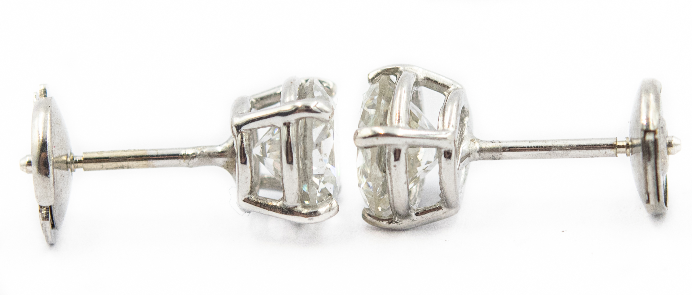 Estate White Gold and Diamond Stud Earrings; white gold; 1.10dwt/1.70g; 2 diamonds 1.91cts