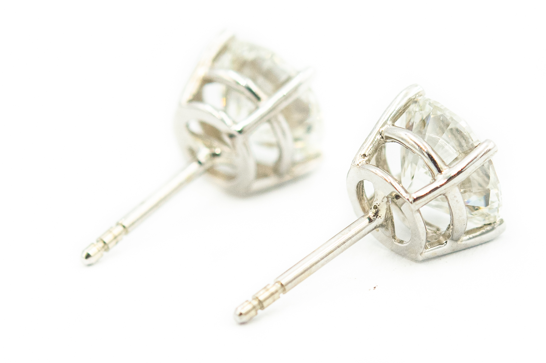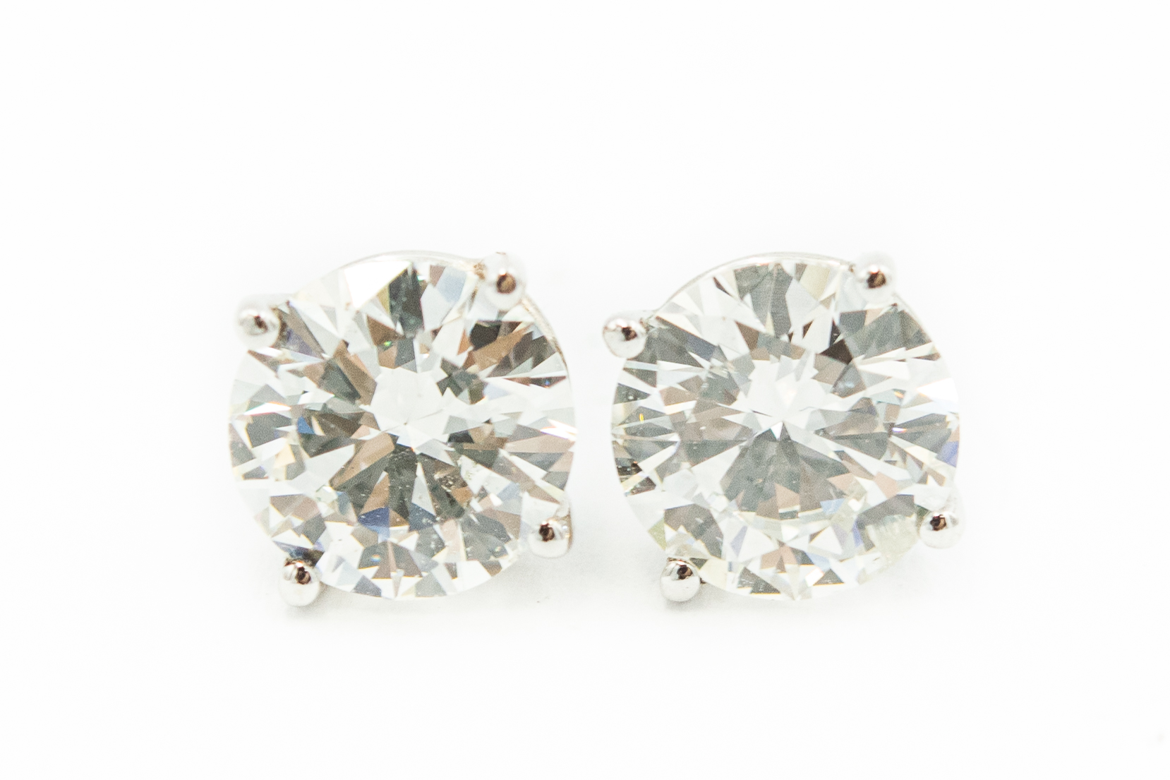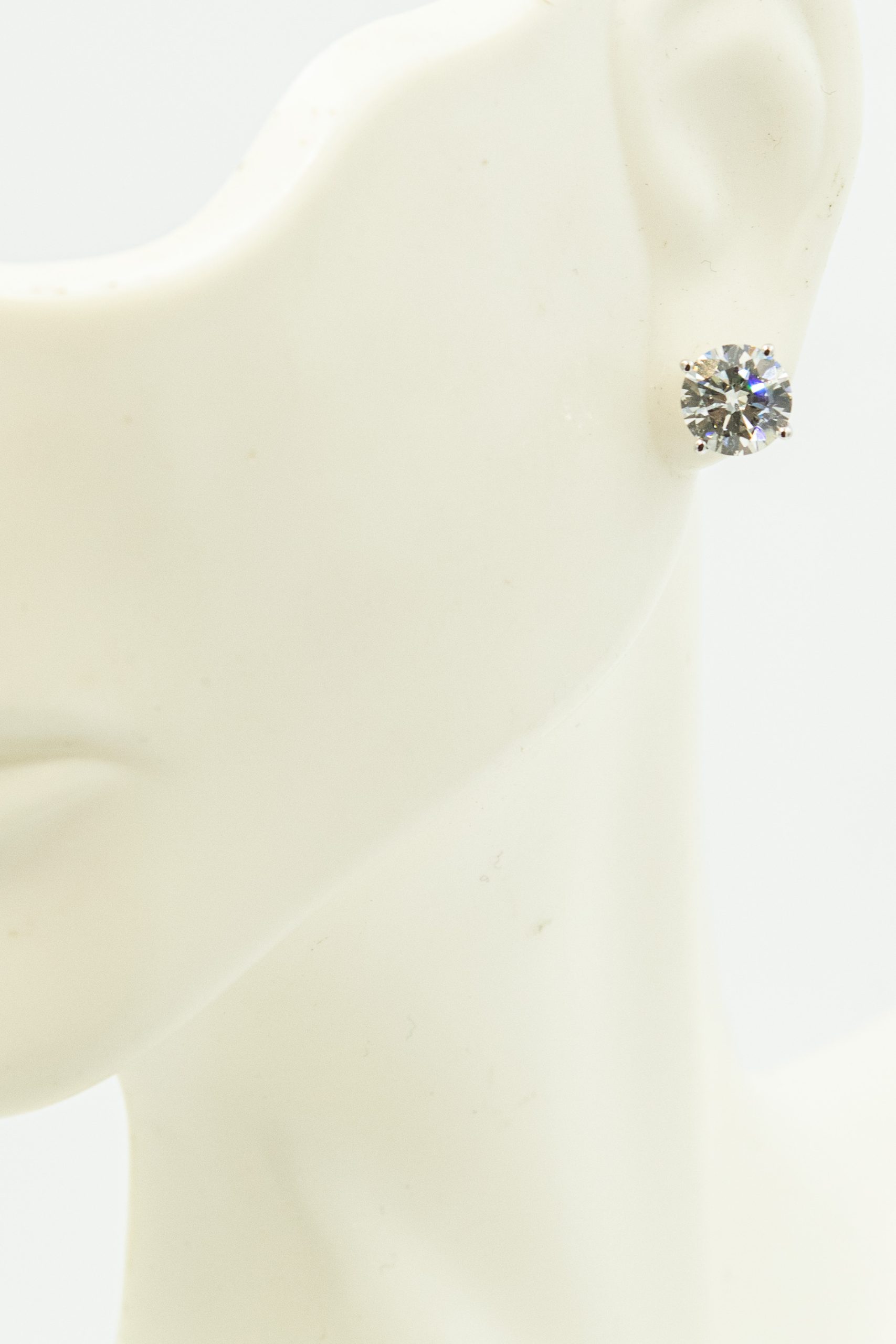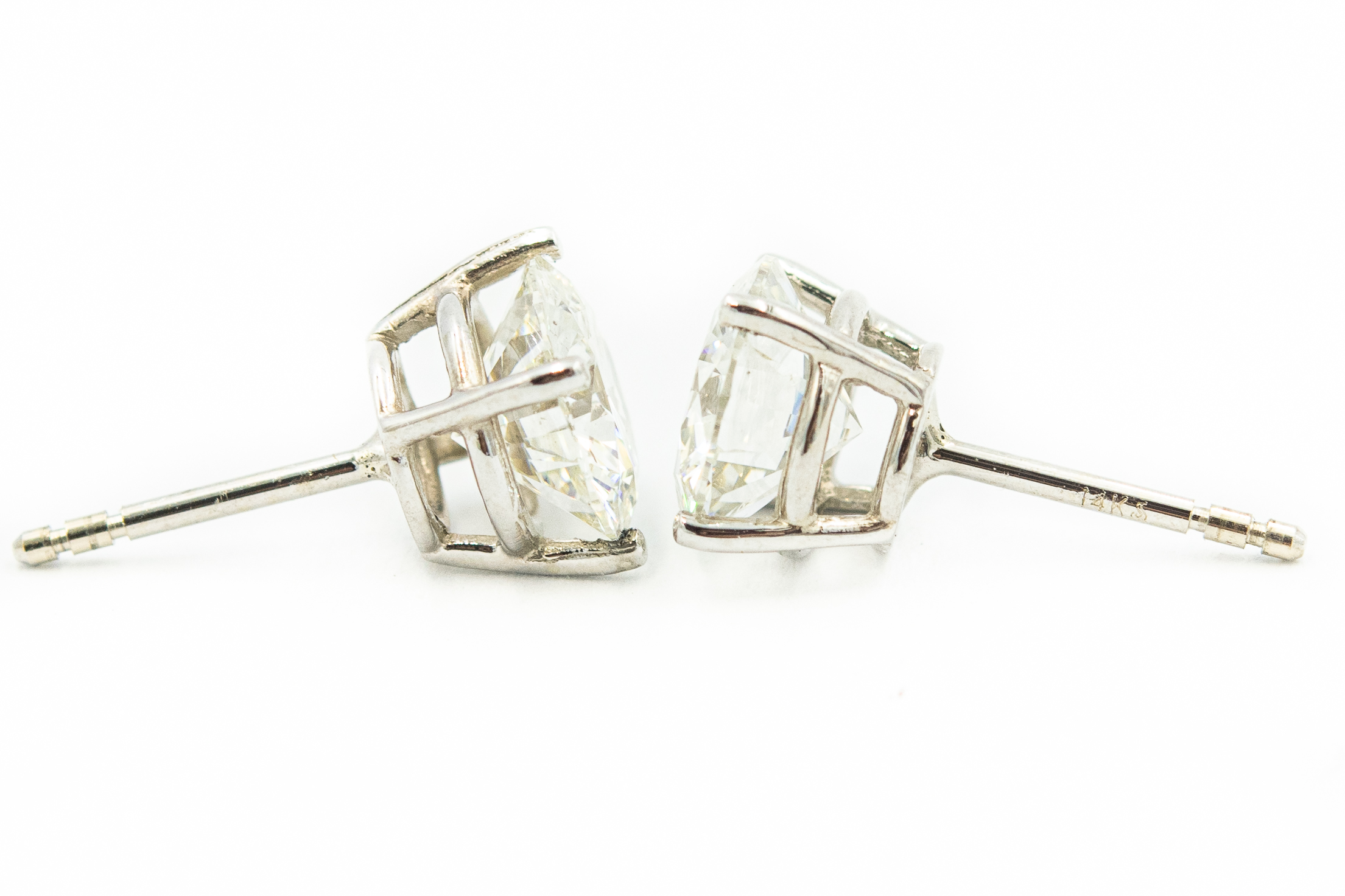 Estate White Gold and Diamond Stud Earrings; white gold; 2 round brilliant cut diamonds weighing 1.26cts and 1.24cts; Total Diamond Weight 2.50cts