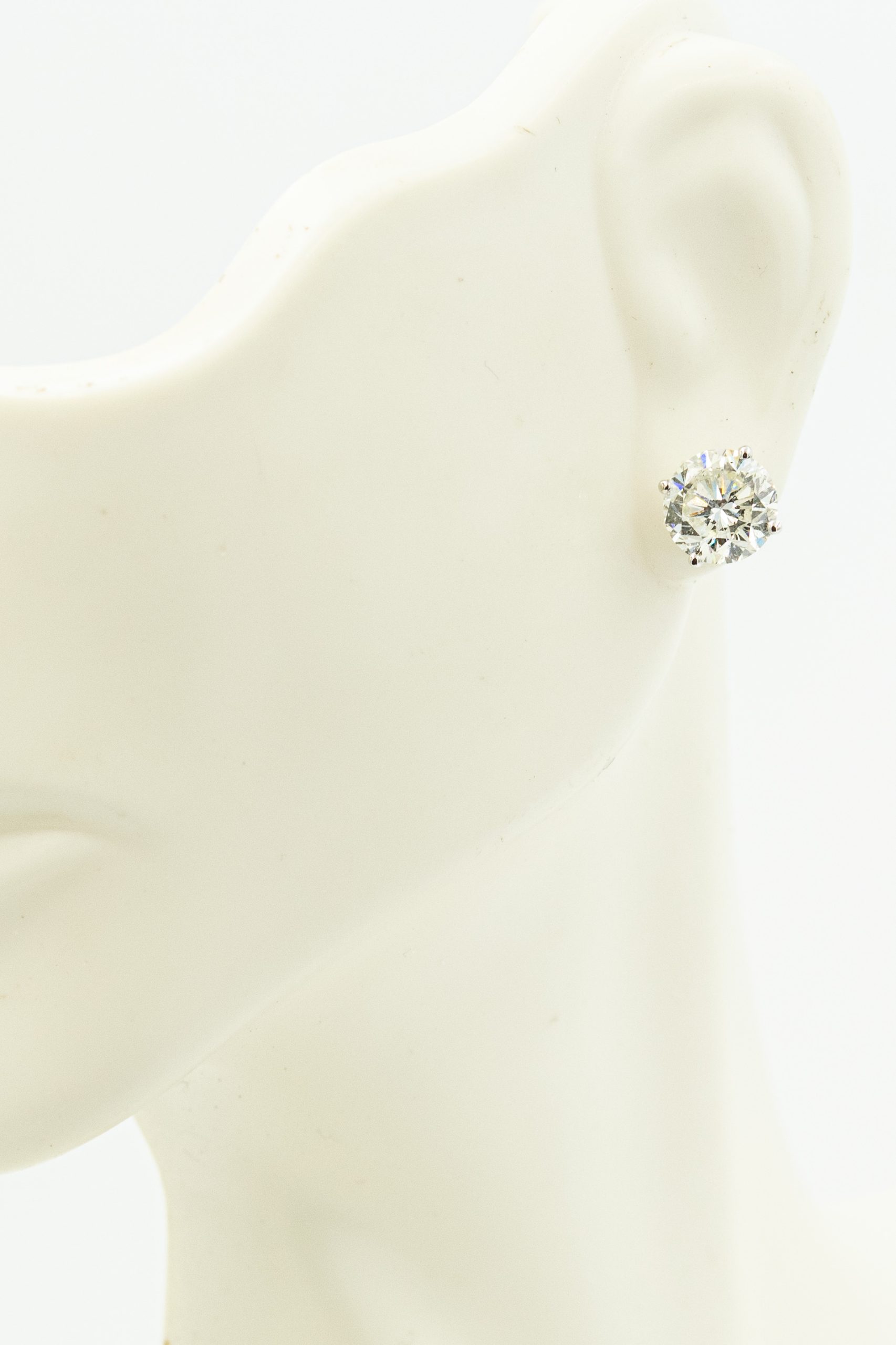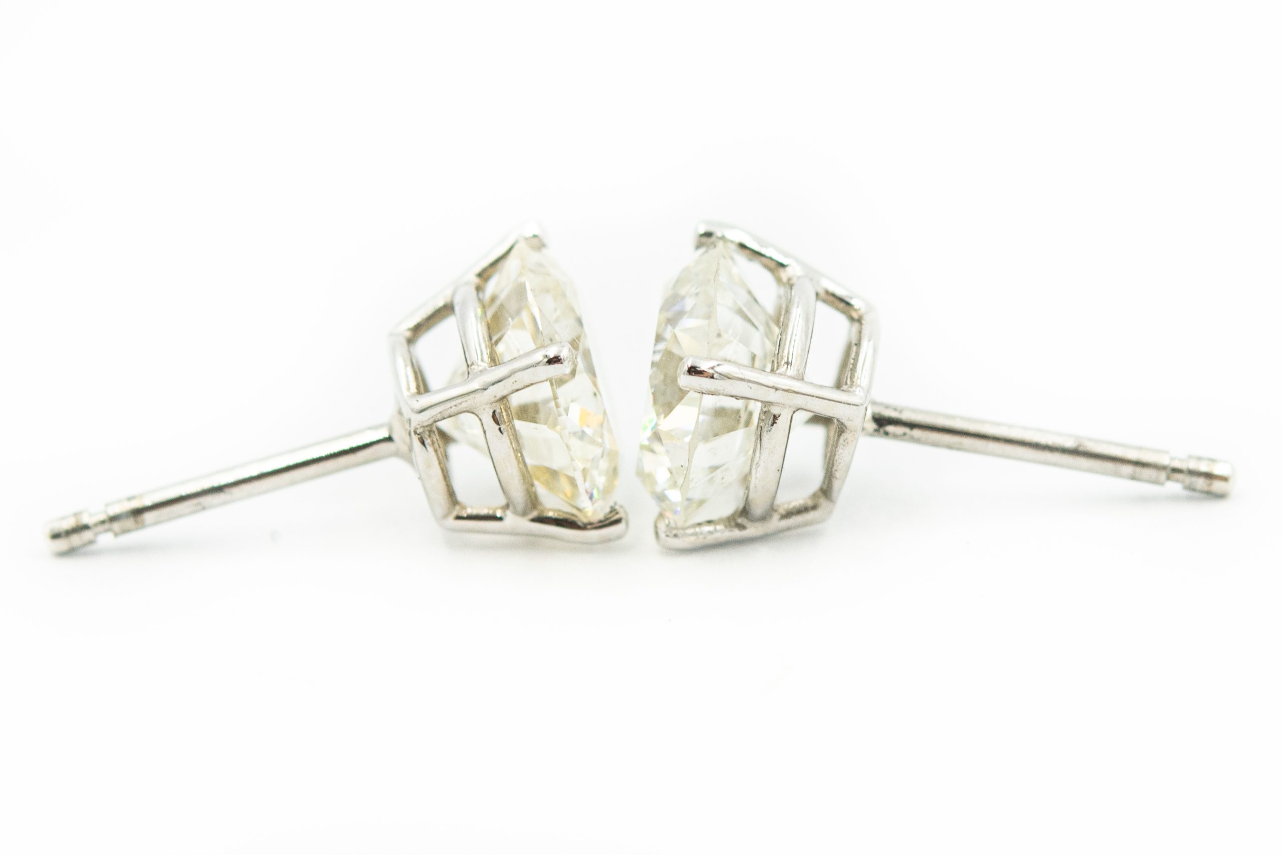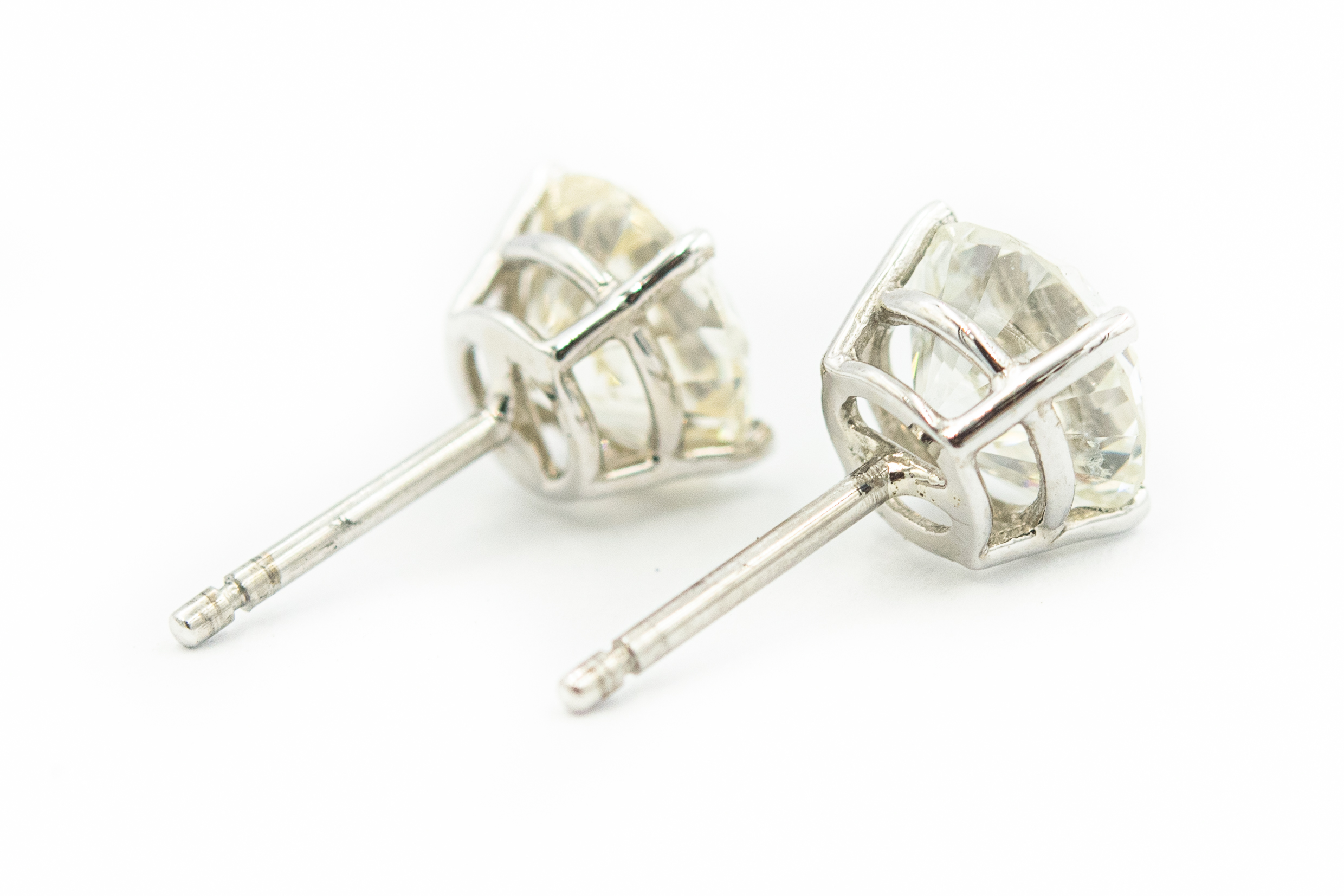 Estate White Gold and Diamond Studs Earrings; white gold; 2 round brilliant cut diamonds weighing 3.65cts combined