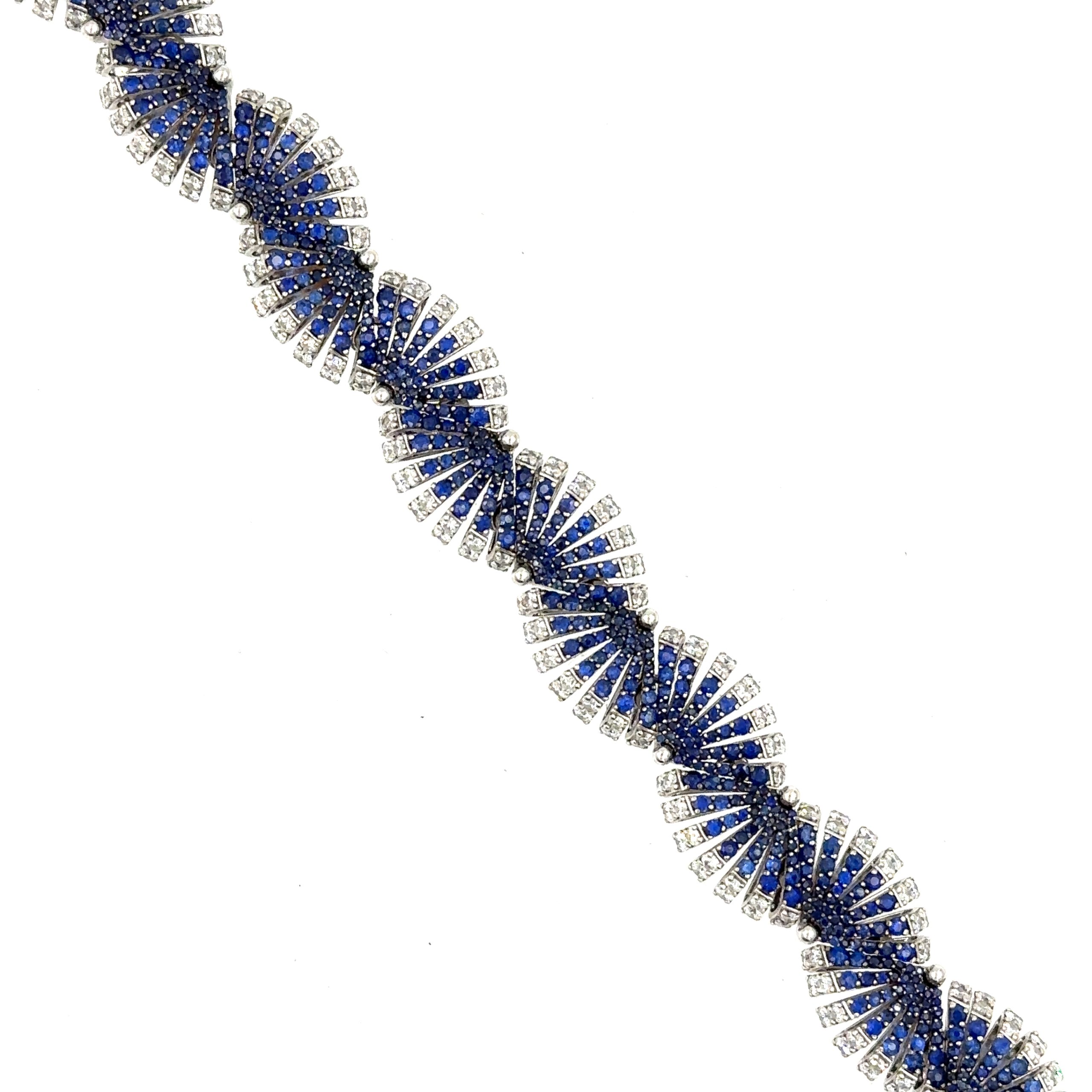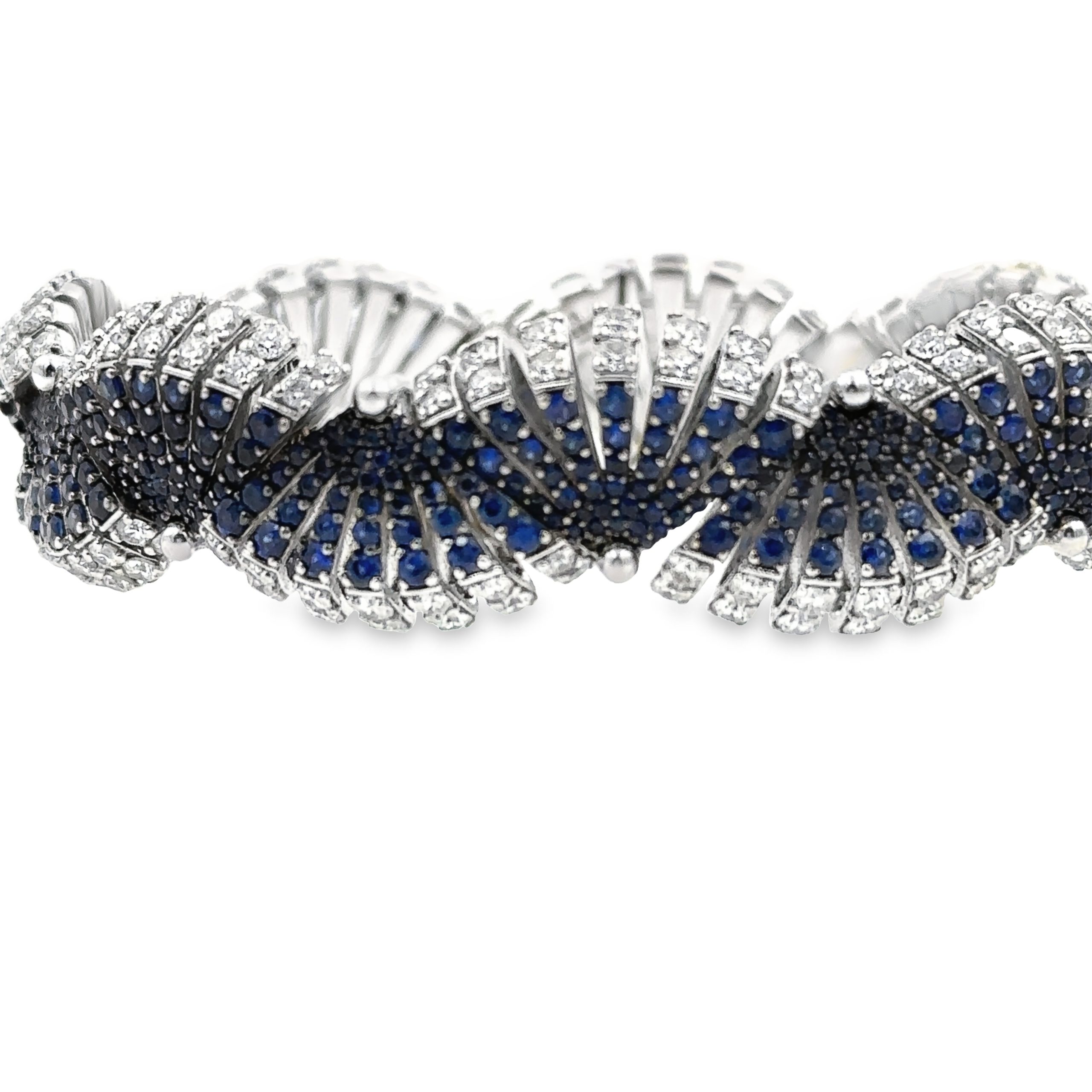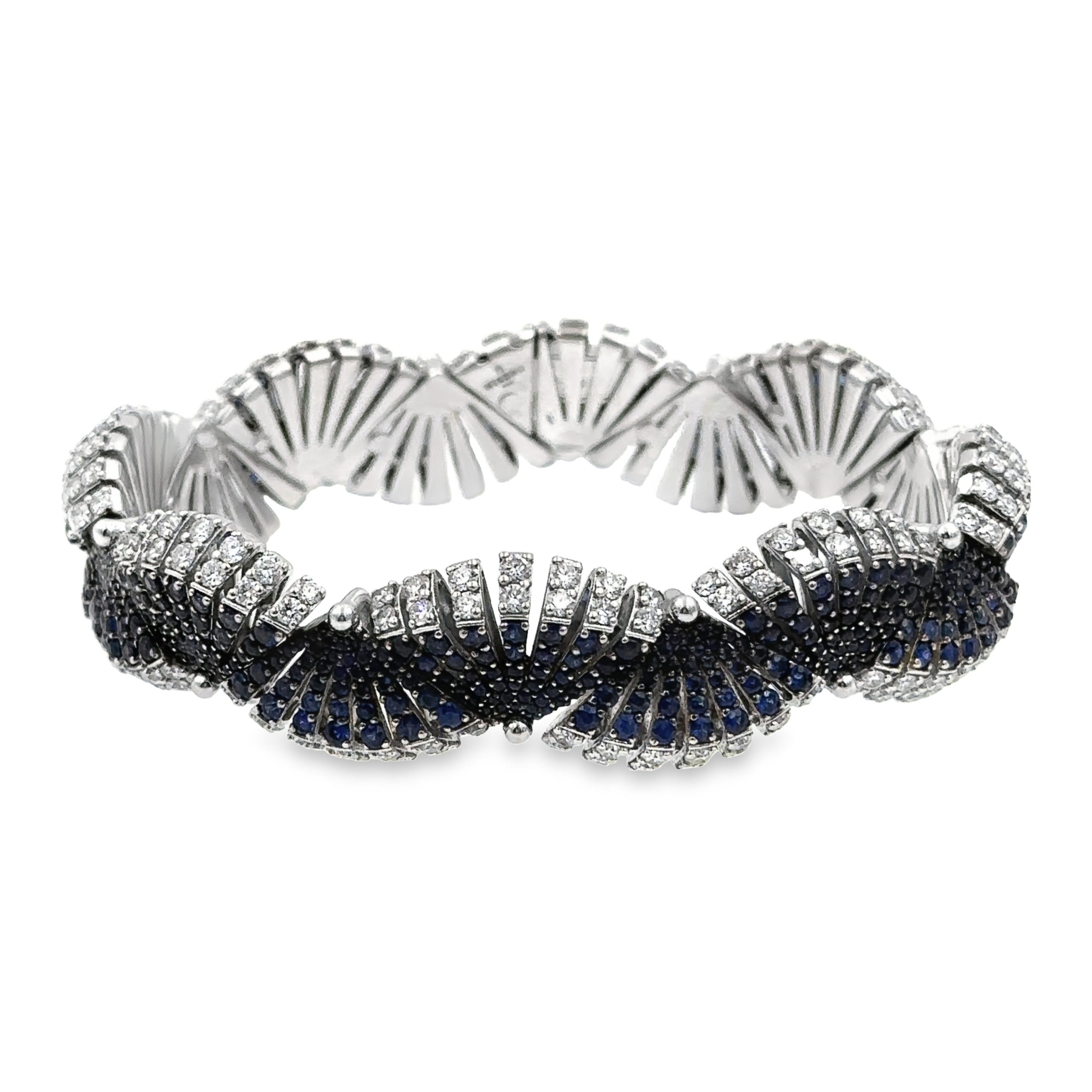 Estate White Gold Diamond and Sapphire Fan Bracelet by Miseno; 18k white gold; 30.0dwt/46.70g; 480 sapphires; 224 brilliant cut diamonds 7.85cts; 7 1/4"