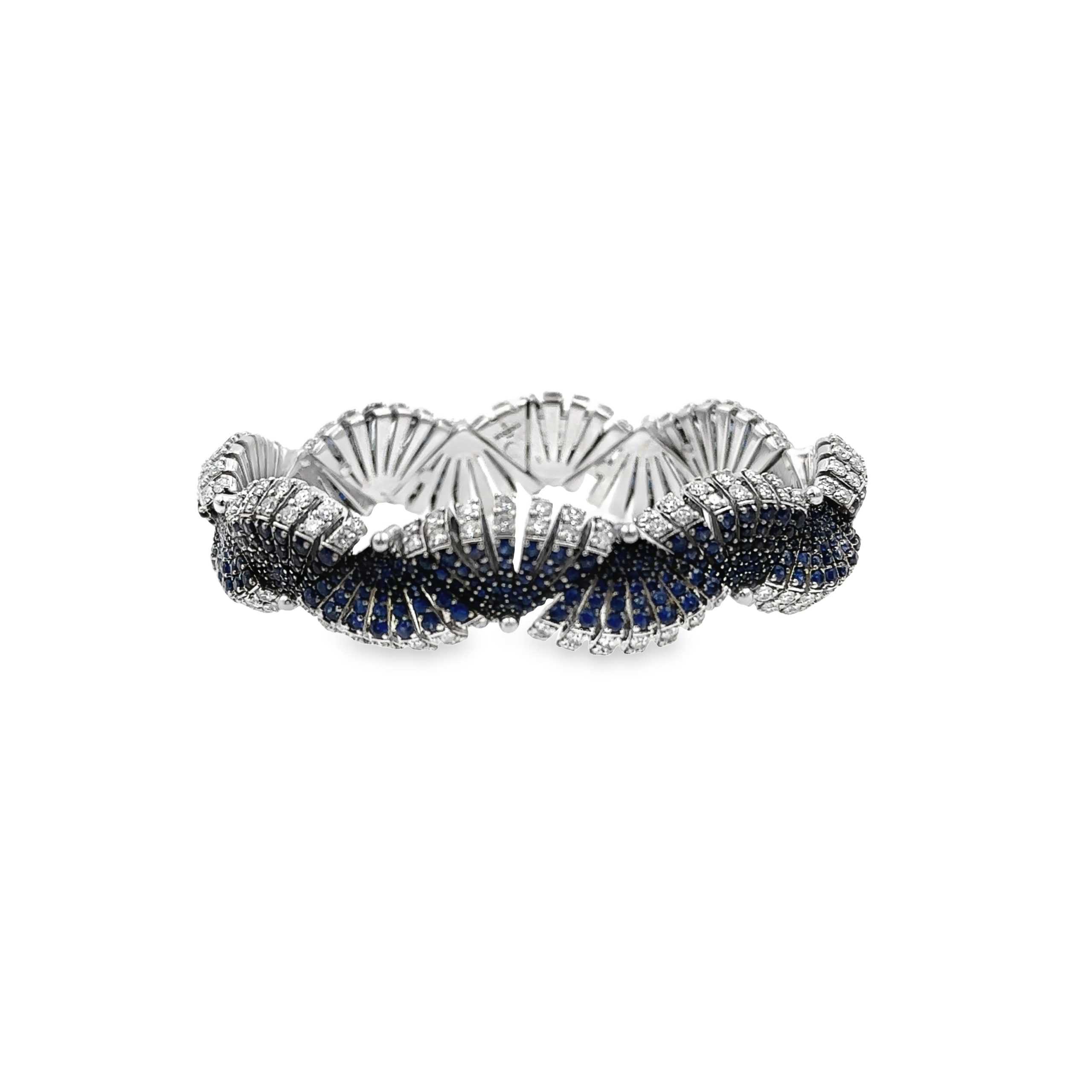 Estate White Gold Diamond and Sapphire Fan Bracelet by Miseno