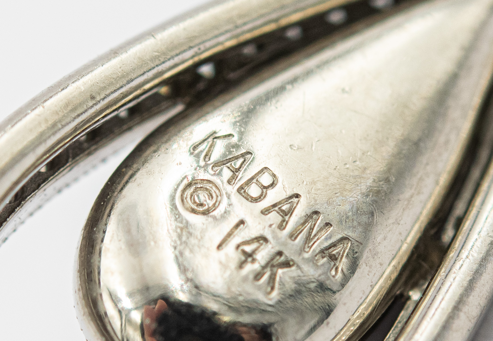 Estate White Gold Mother of Pearl Diamond Drop Earrings by Kabana; 14k white gold; 4.50dwt/7.00g; 148 brilliant cut diamonds weighing 0.75cts; Retail Price $3500