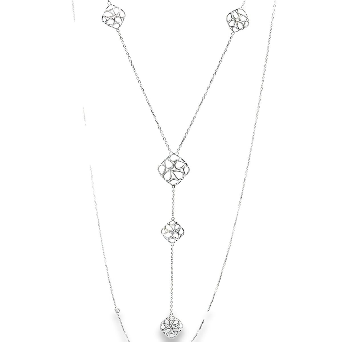 Estate White Gold Open Frame Geometric Design Necklace; 18k white gold; 11.30dwt/17.00g; 35"