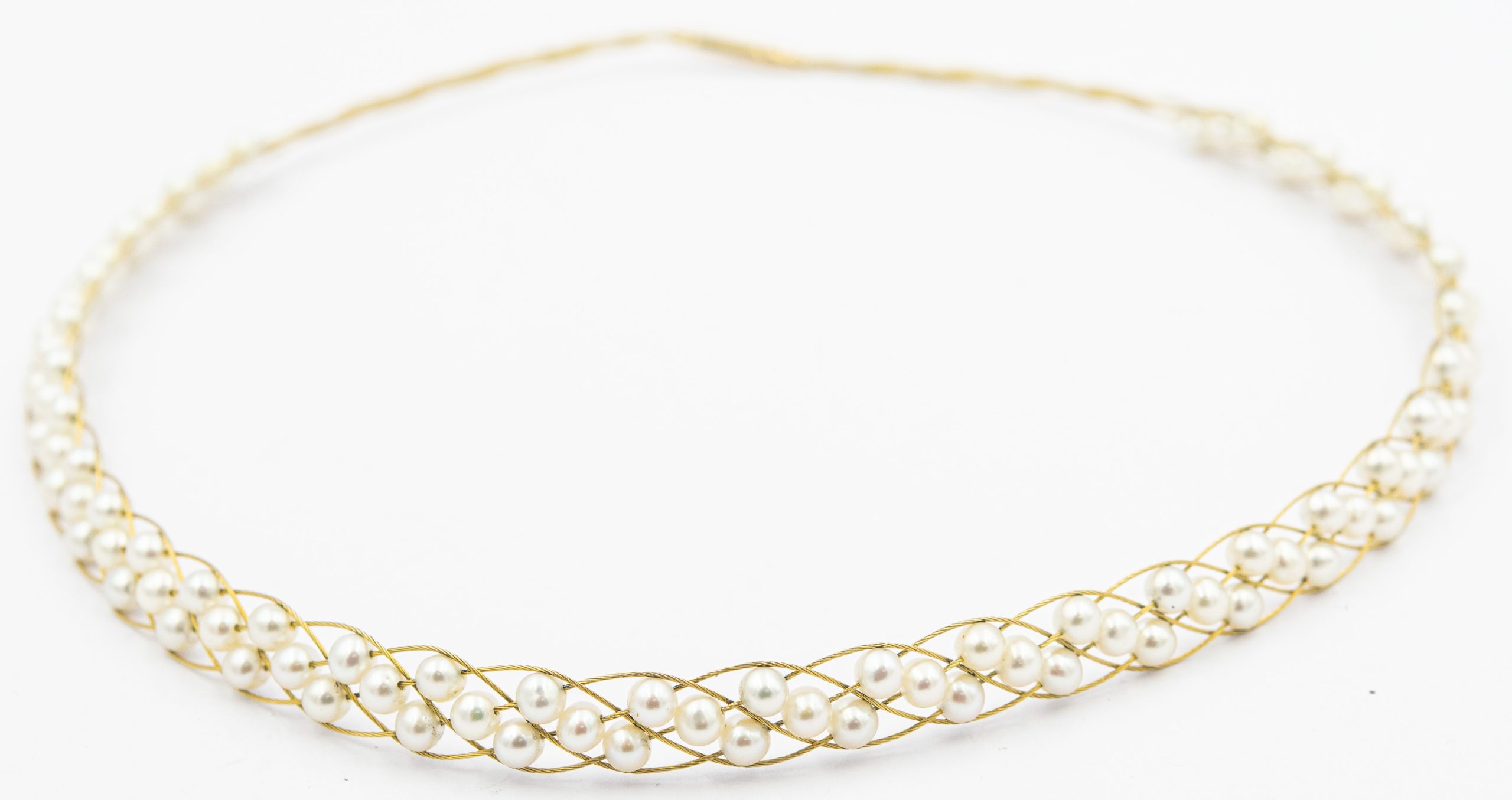 Estate Yellow Gold and Cultured Pearl Necklace; 14k yellow gold; 8.80dwt/13.75g; 16"