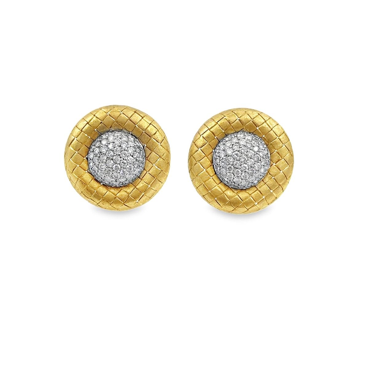 Estate Yellow Gold and Diamond Button Earrings; 18k yellow gold; 12.00dwt/19.00g; 112 diamonds 1.75cts; 23.0mm