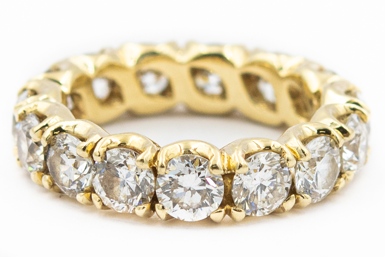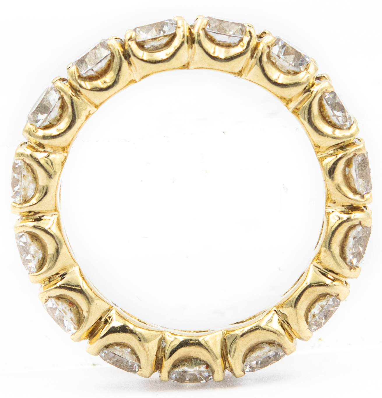 Estate Yellow Gold and Diamond Eternity Ring; 18k yellow gold; 3.80dwt/6.00g; 16 diamonds 5.00cts; Ring Size 6