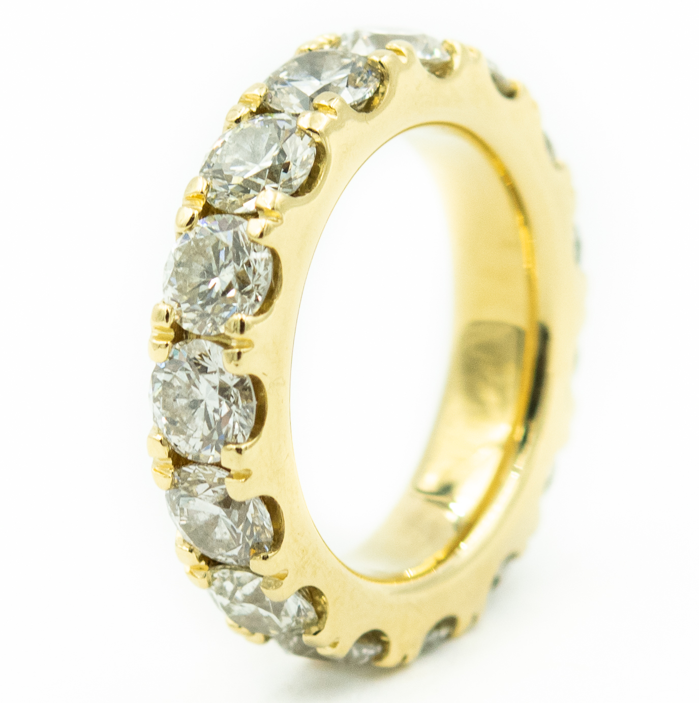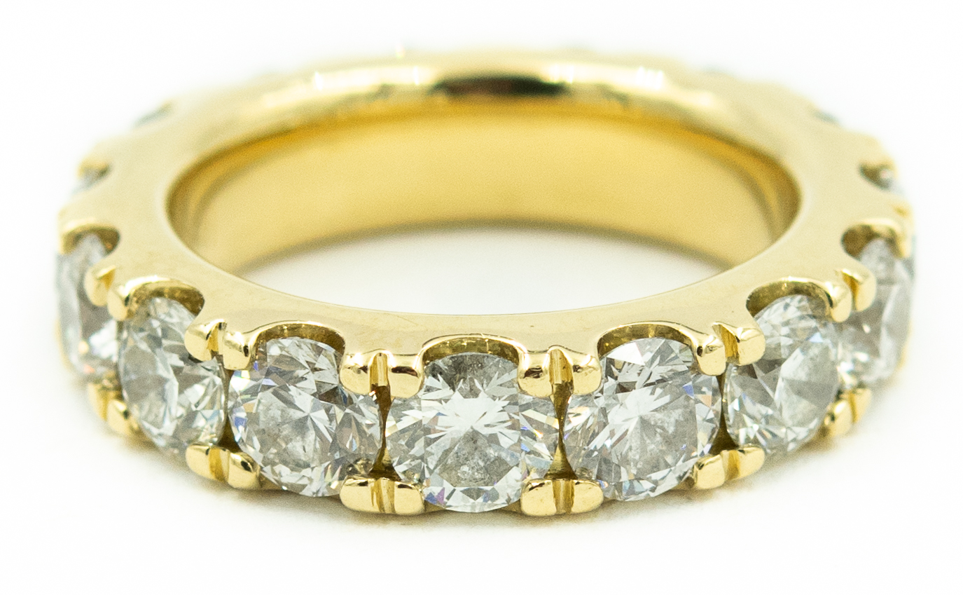 Estate Yellow Gold and Diamond Eternity Ring; 18k yellow gold; 5.60dwt/8.80g; 15 brilliant cut diamond 5.00cts; Ring Size 5