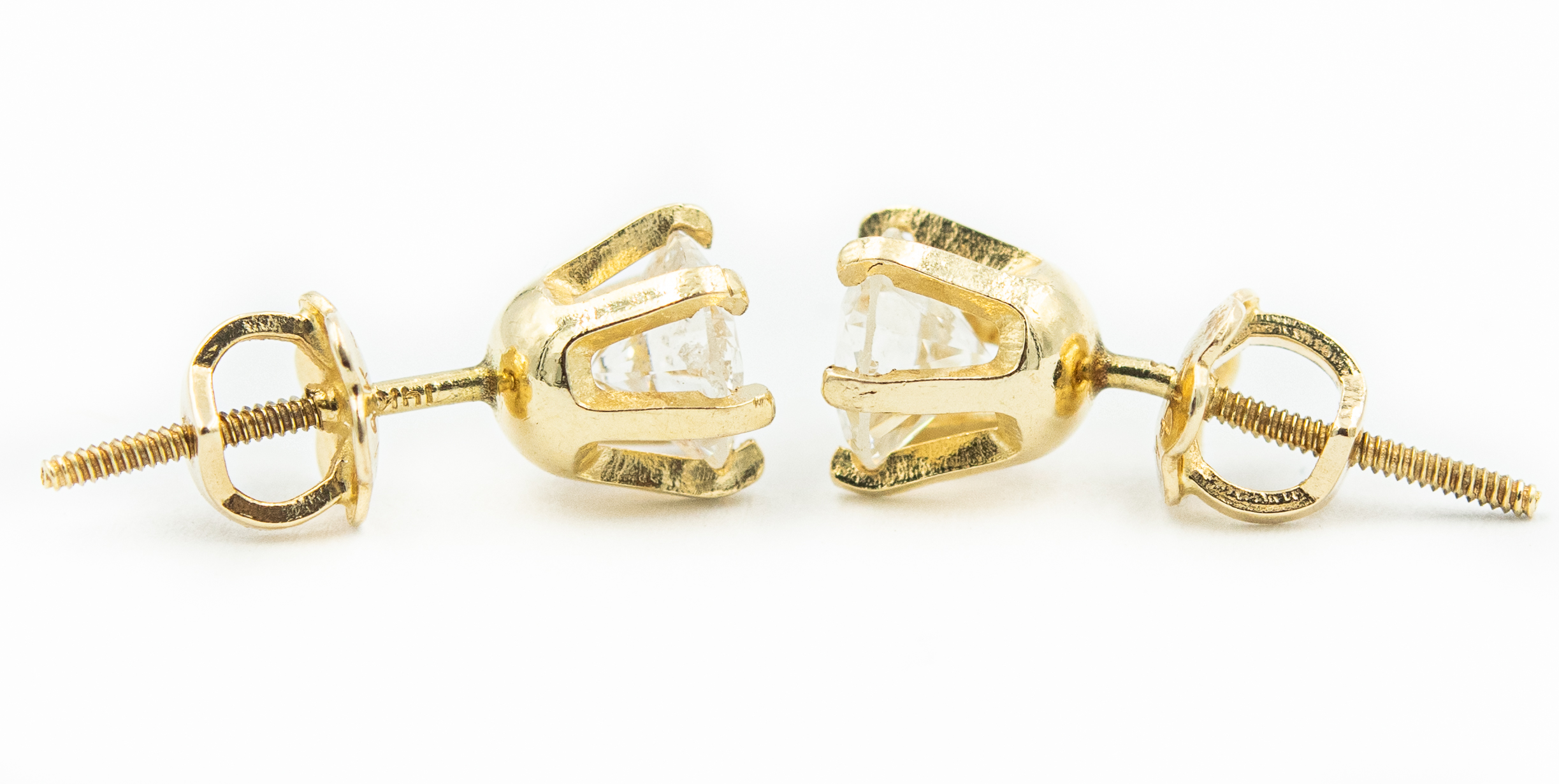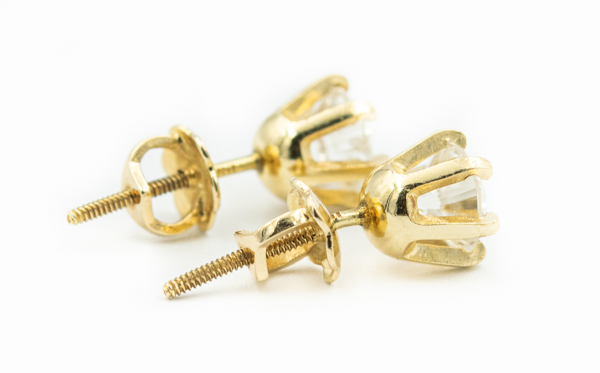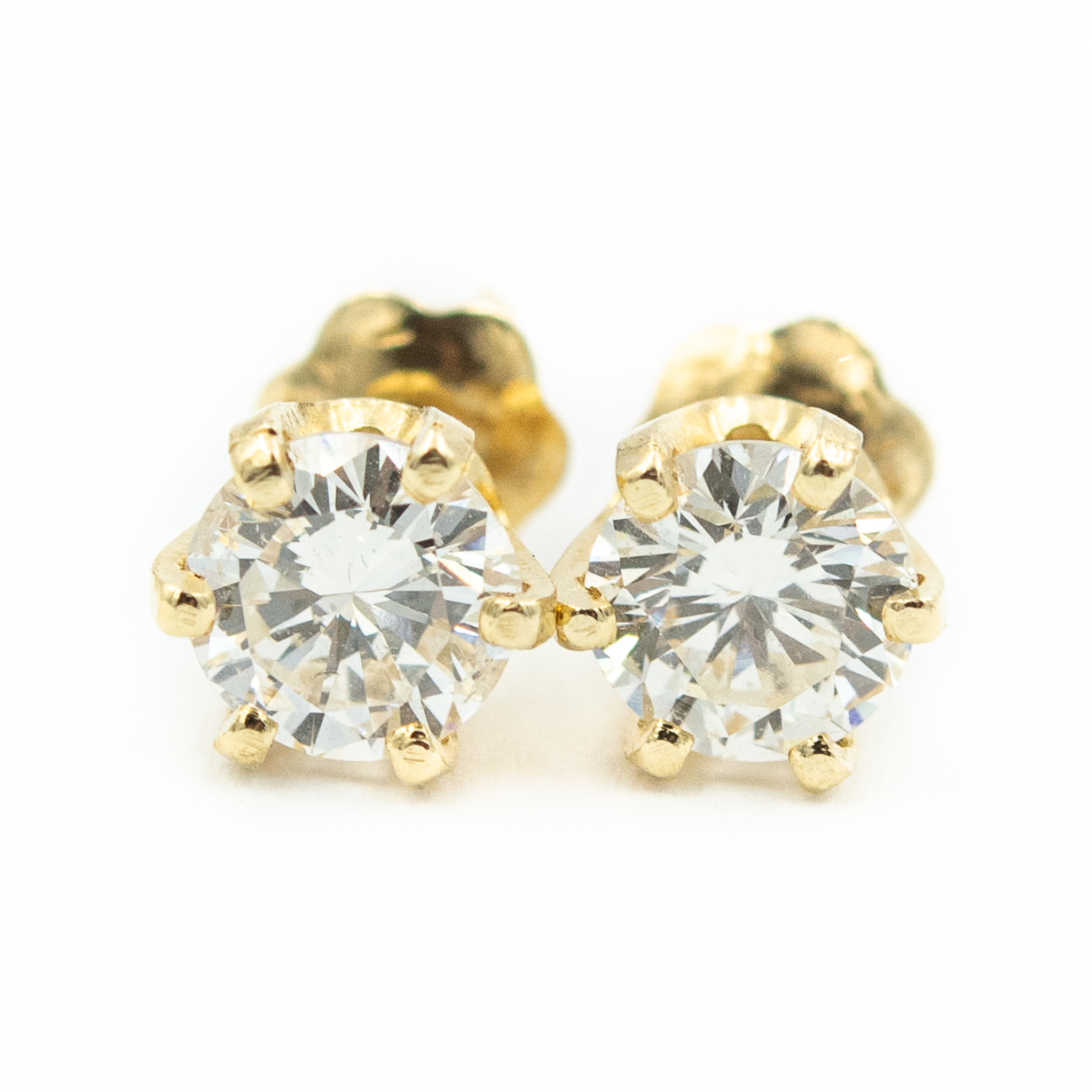 Estate Yellow Gold and Diamond Stud Earrings; 14k yellow gold; 0.8dwt/1.20g; 2 brilliant cut diamonds 1.00cts