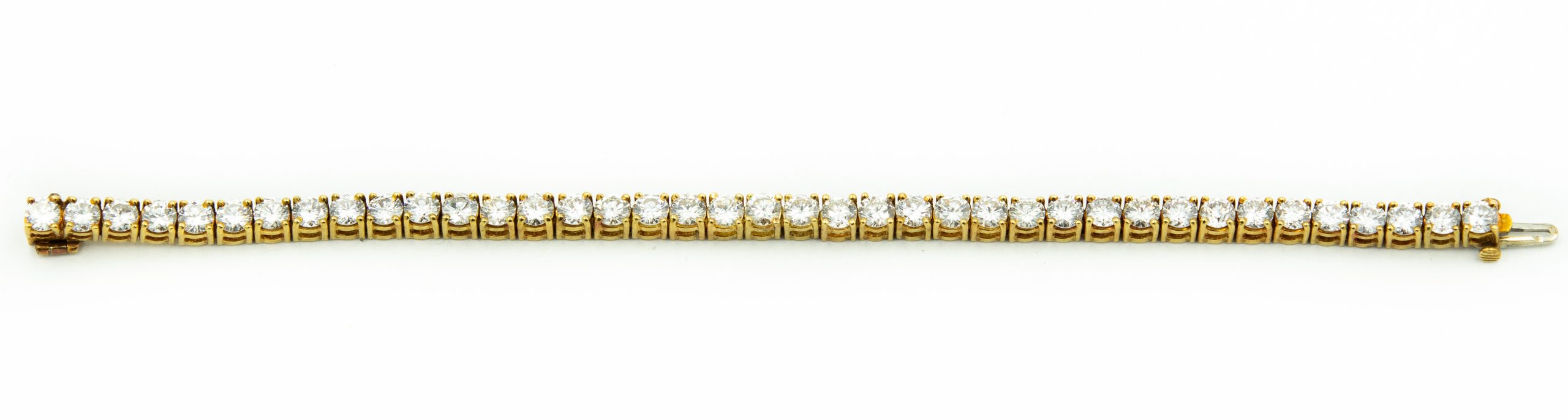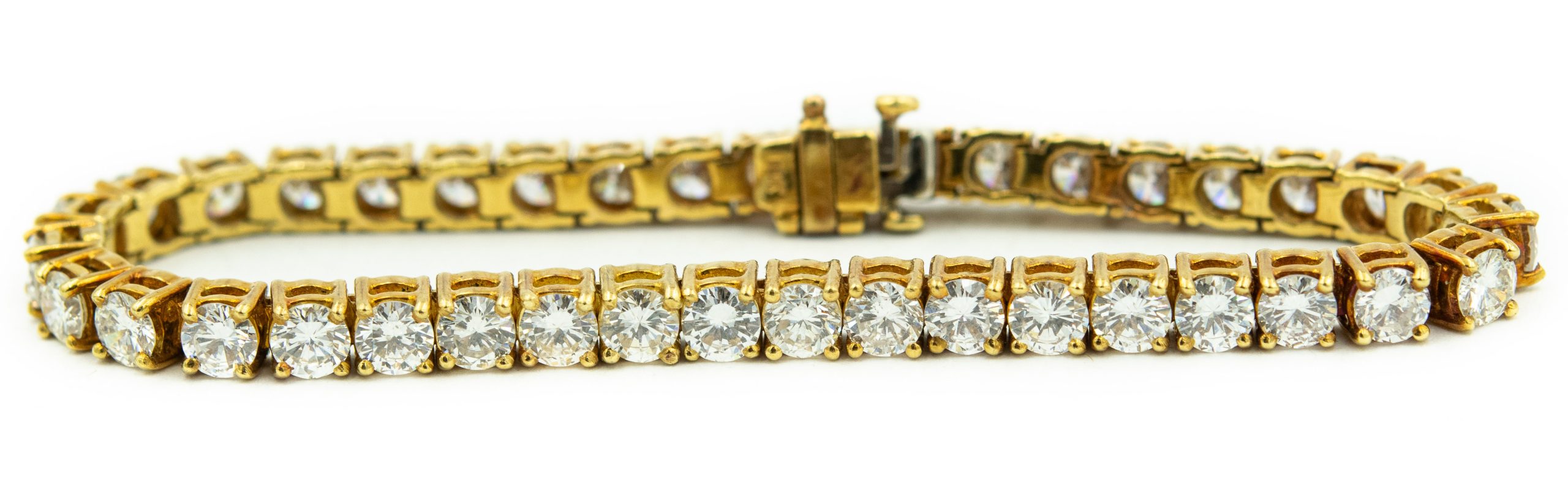 Estate Yellow Gold and Diamond Tennis Bracelet; 18k yellow gold; 14.0dwt/21.9g; 39 brilliant cut diamonds 11.75cts; 6 3/4"
