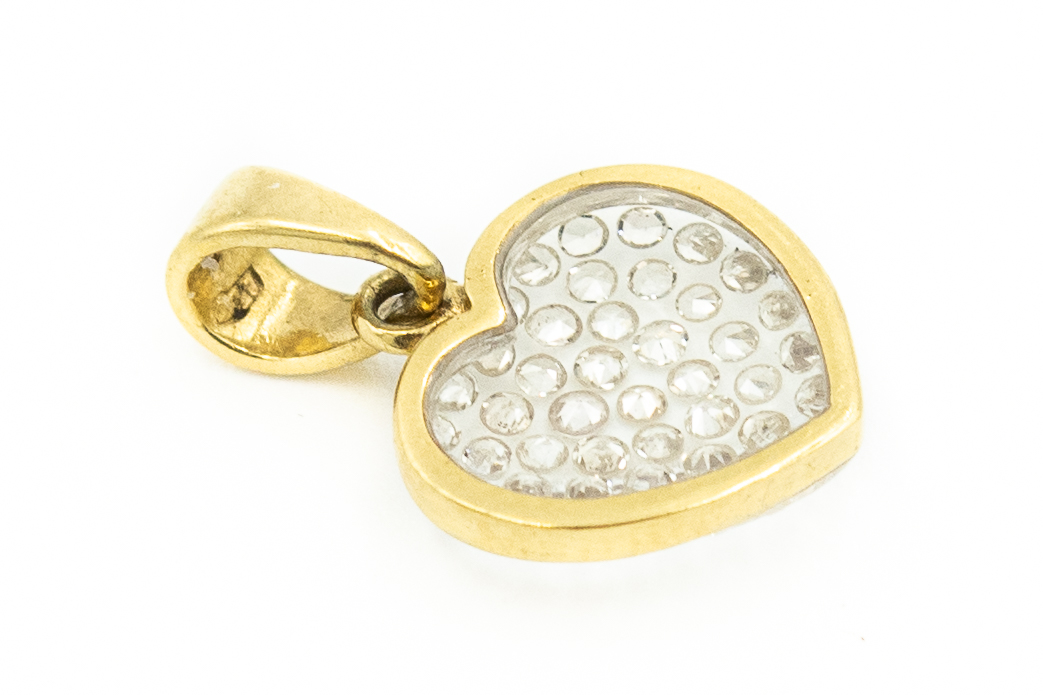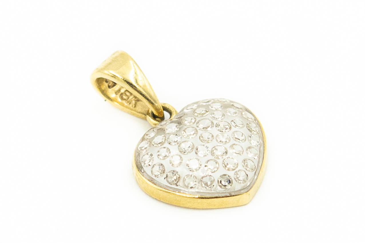 Estate Yellow Gold and Lucite Heart Pendant; 18k yellow gold; 40 diamonds 0.50cts