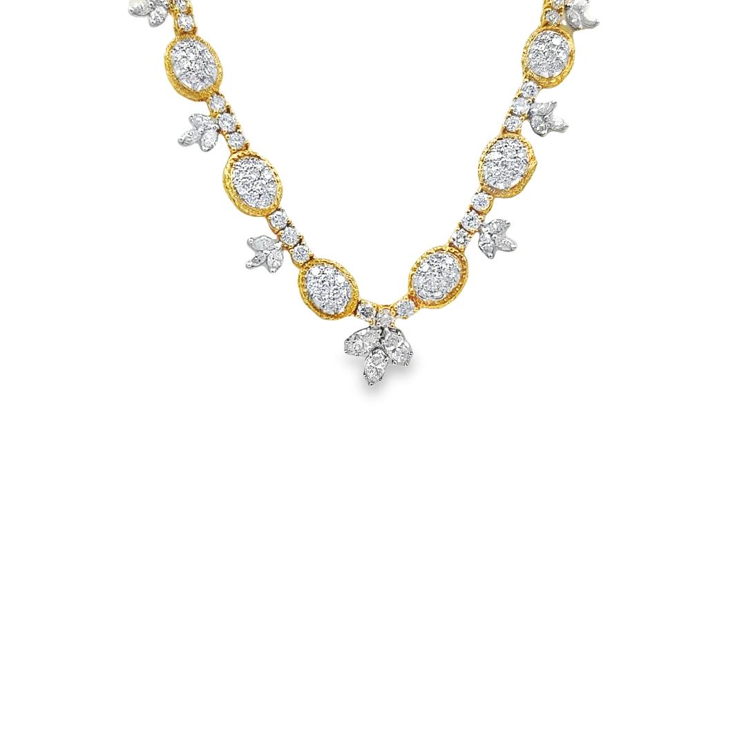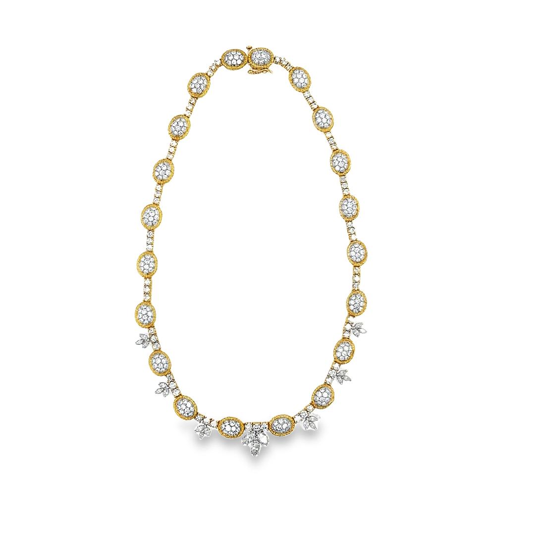 Estate Yellow Gold and Pave Set Diamond Necklace; 18k yellow gold; 28.60dwt/44.40g; 260 pave set round and 21 marquise cut diamonds 14.00cts; 14 1/2"