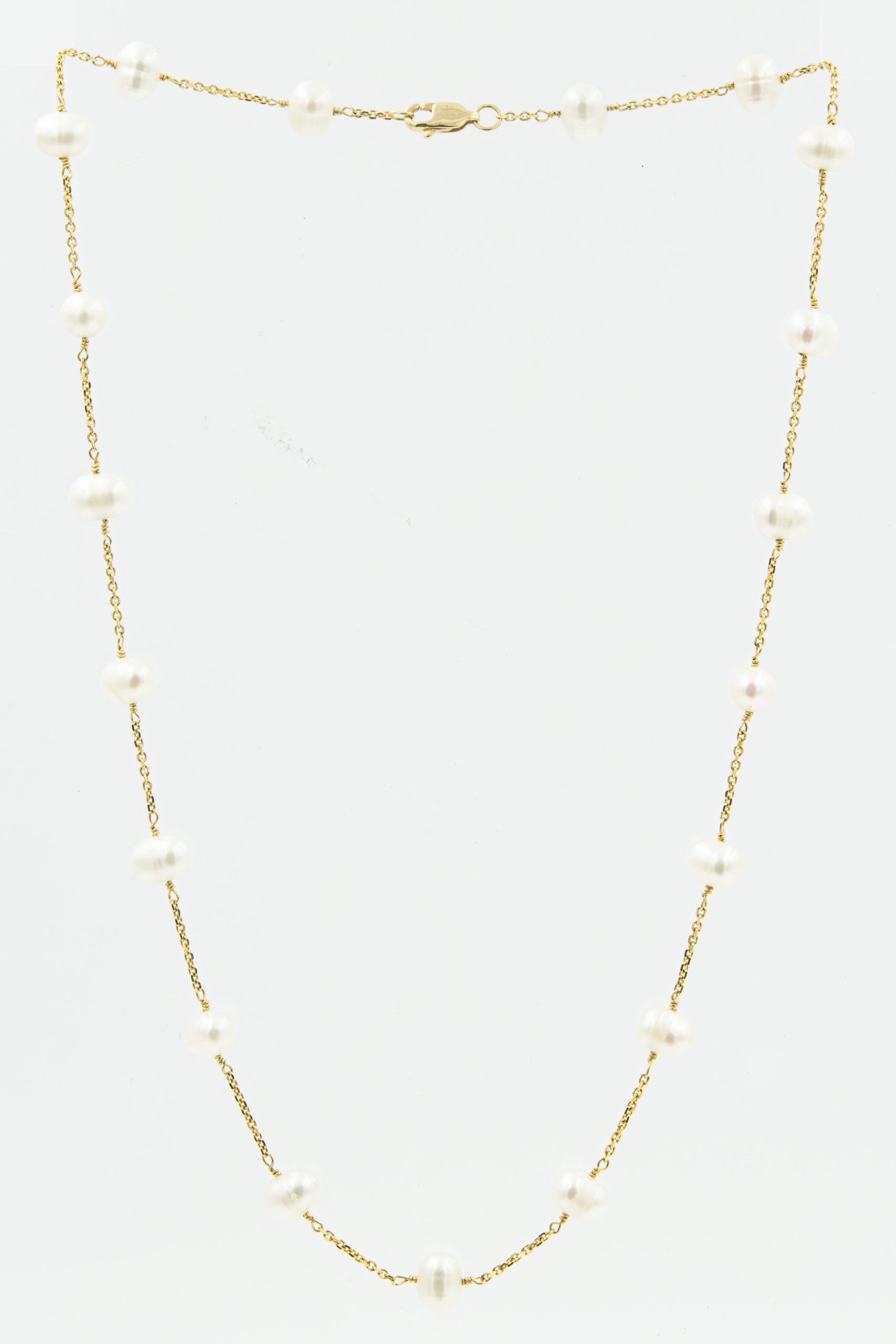 Estate Yellow Gold and Pearl Necklace; 14k yellow gold; 9.30dwt; 18"