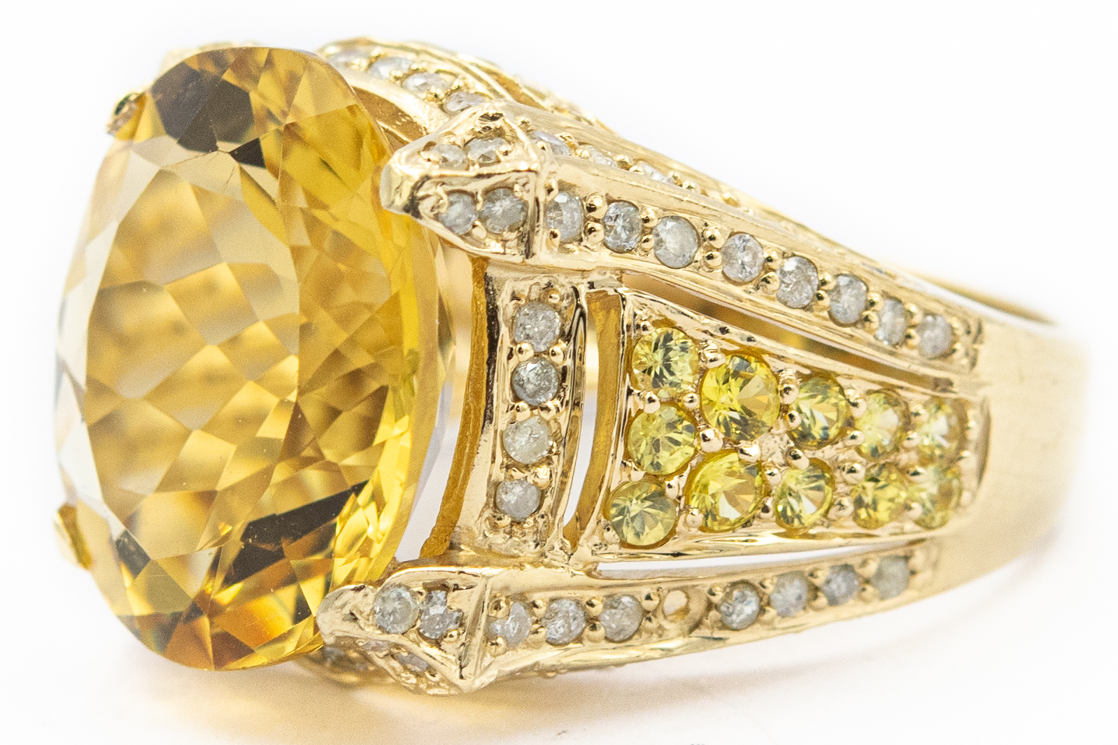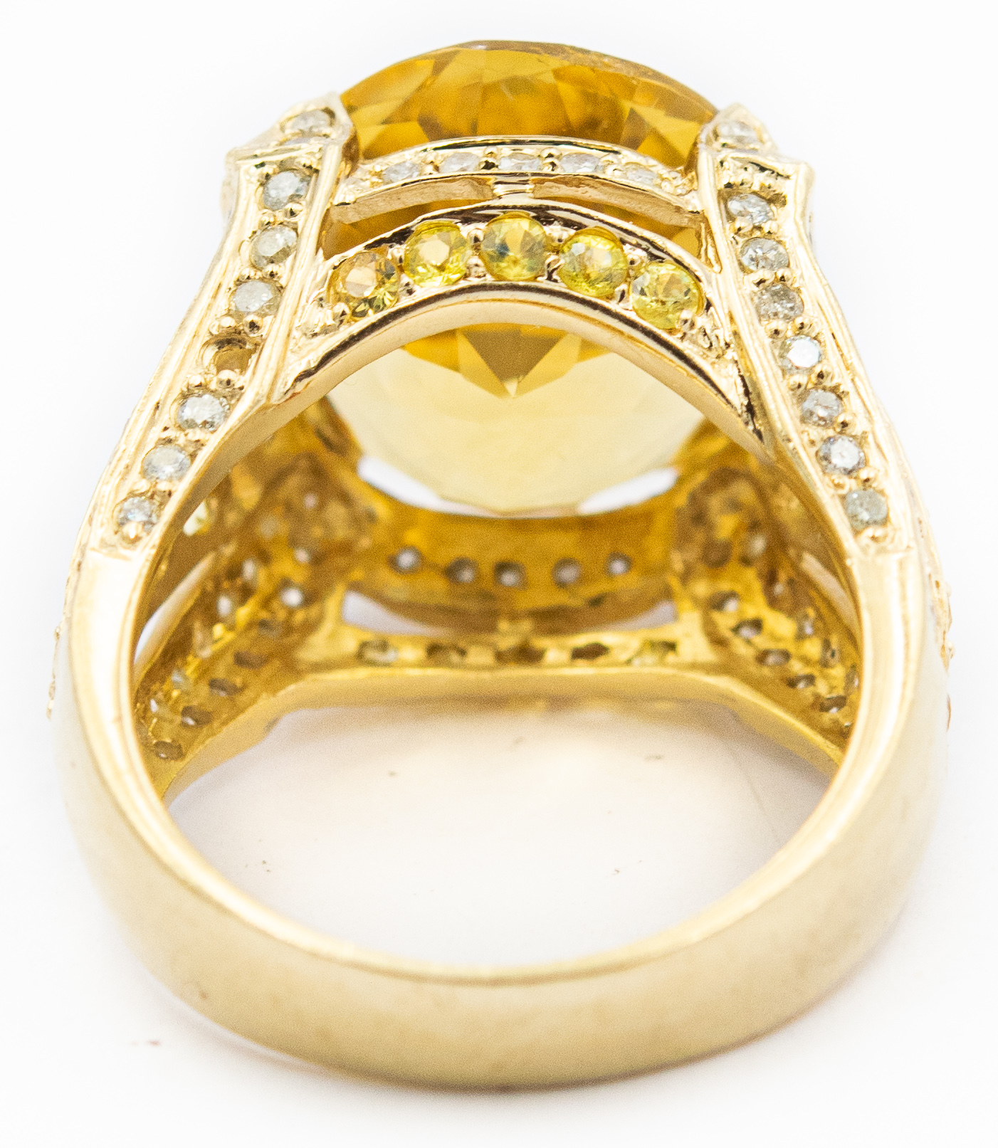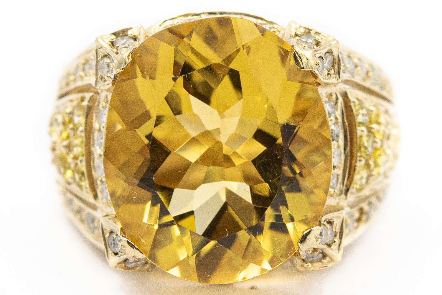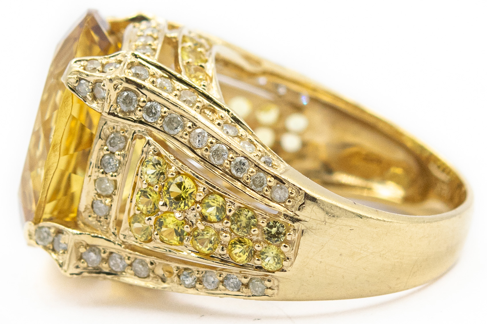 Estate Yellow Gold Diamond and Citrine Ring; 14k yellow gold; 5.70dwt/9.00g; 82 diamonds 1.00cts; Ring Size 7