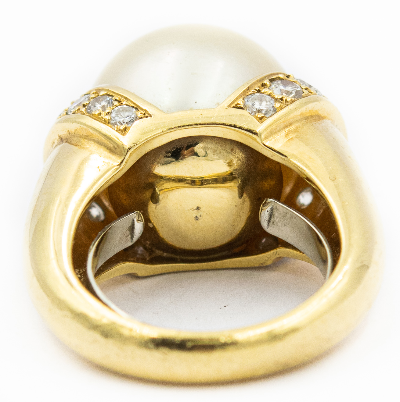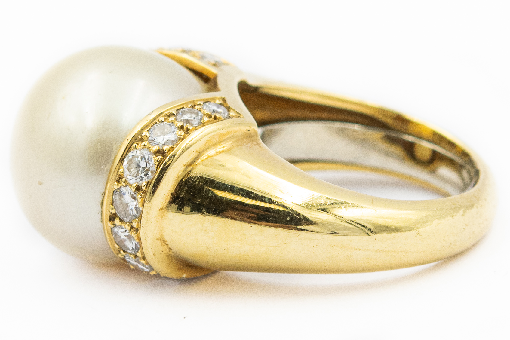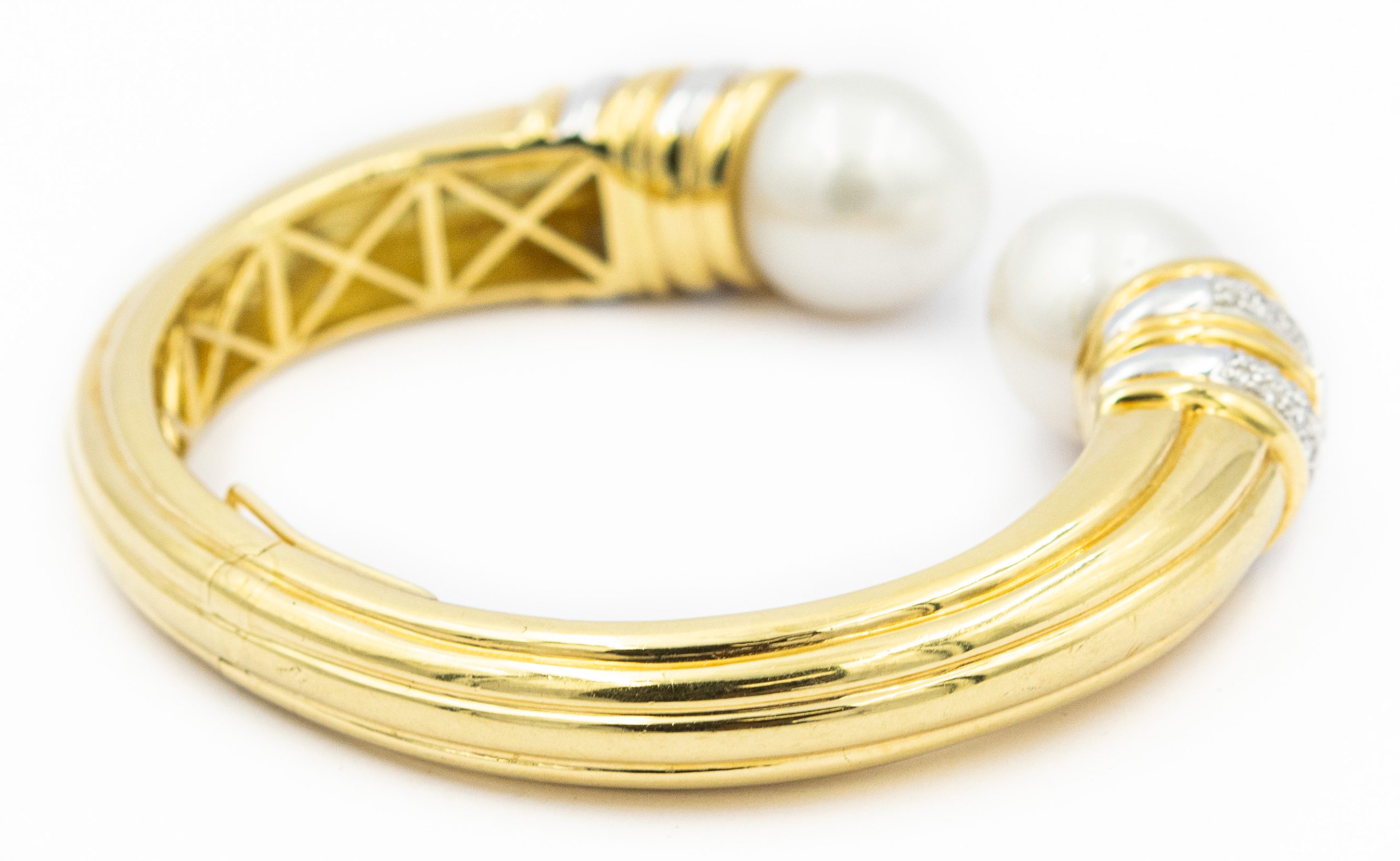 Estate Yellow Gold Diamond and South Sea Pearl Bangle and Ring Suite; 18k yellow gold; 50.0dwt/77.0g; 82 diamonds 2.50cts