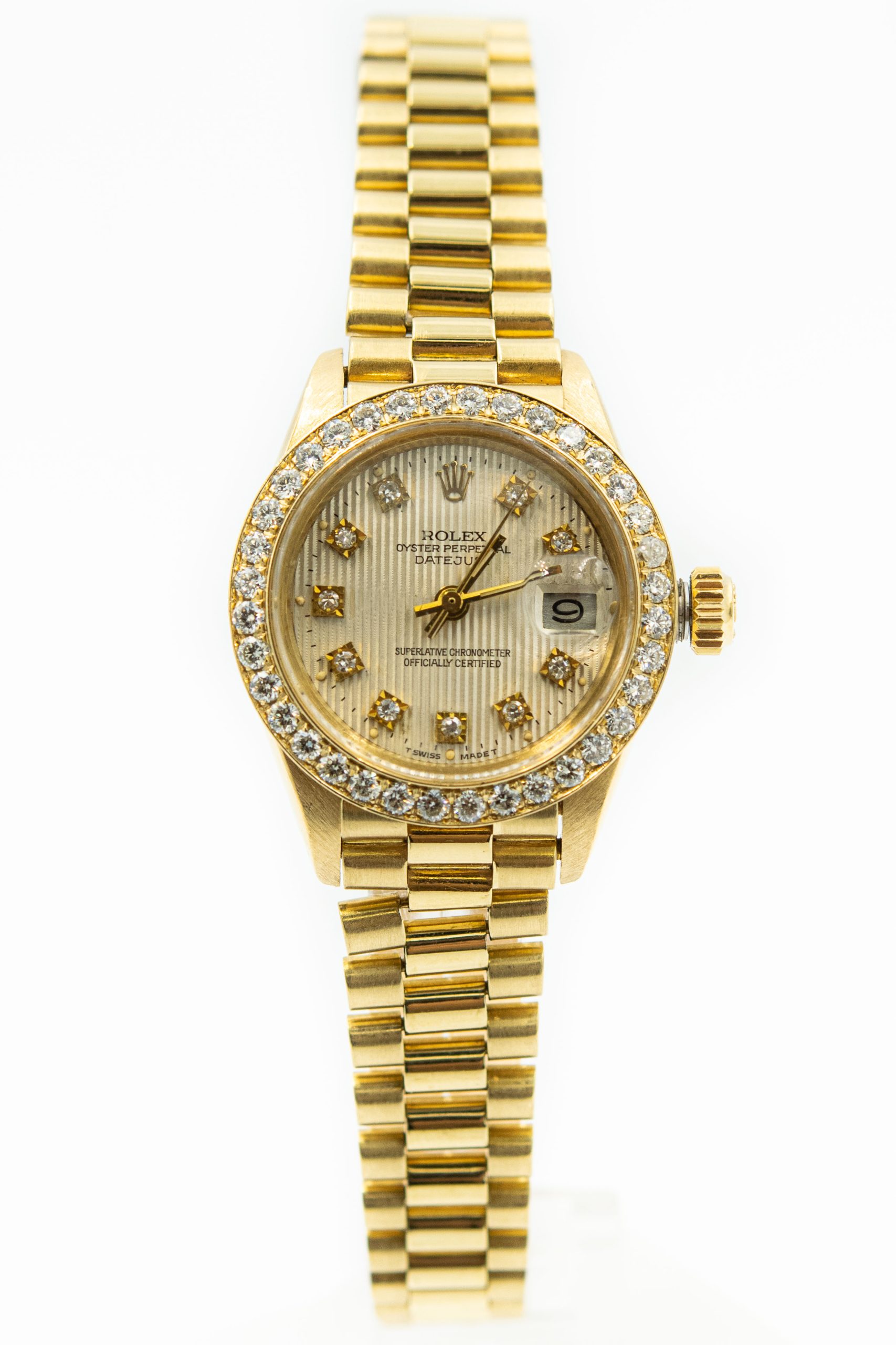 Ladies Rolex Datejust Wristwatch with Solid Gold Diamond Bezel and Dial Model Ref 6917