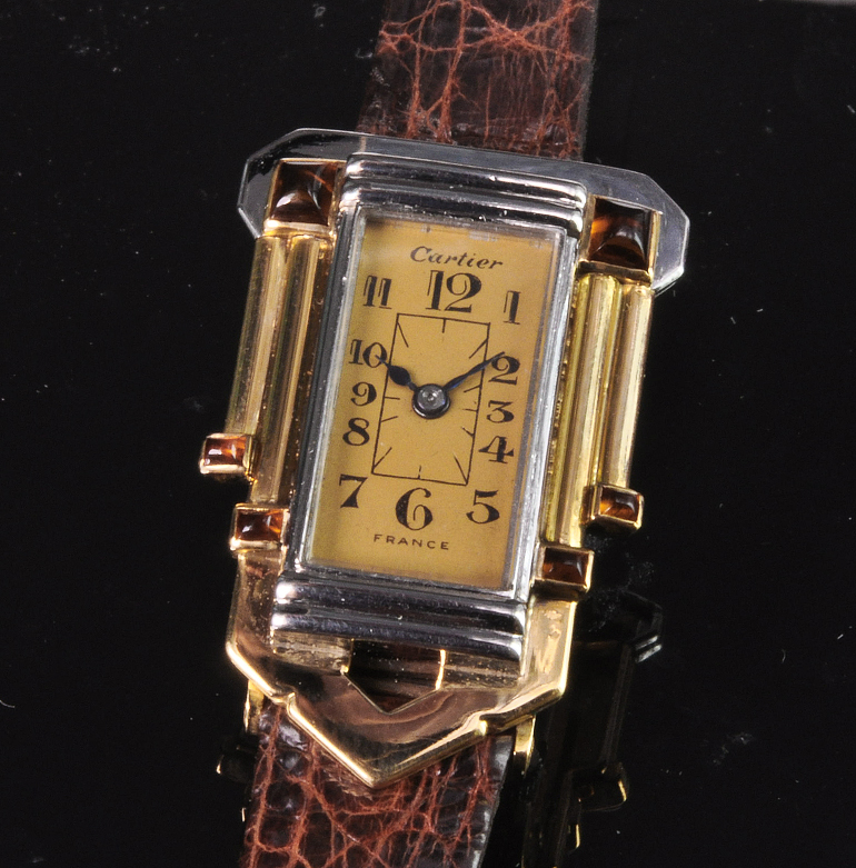 MK Personal Collection Art Deco Platinum and Gold Citrine Cartier Wristwatch