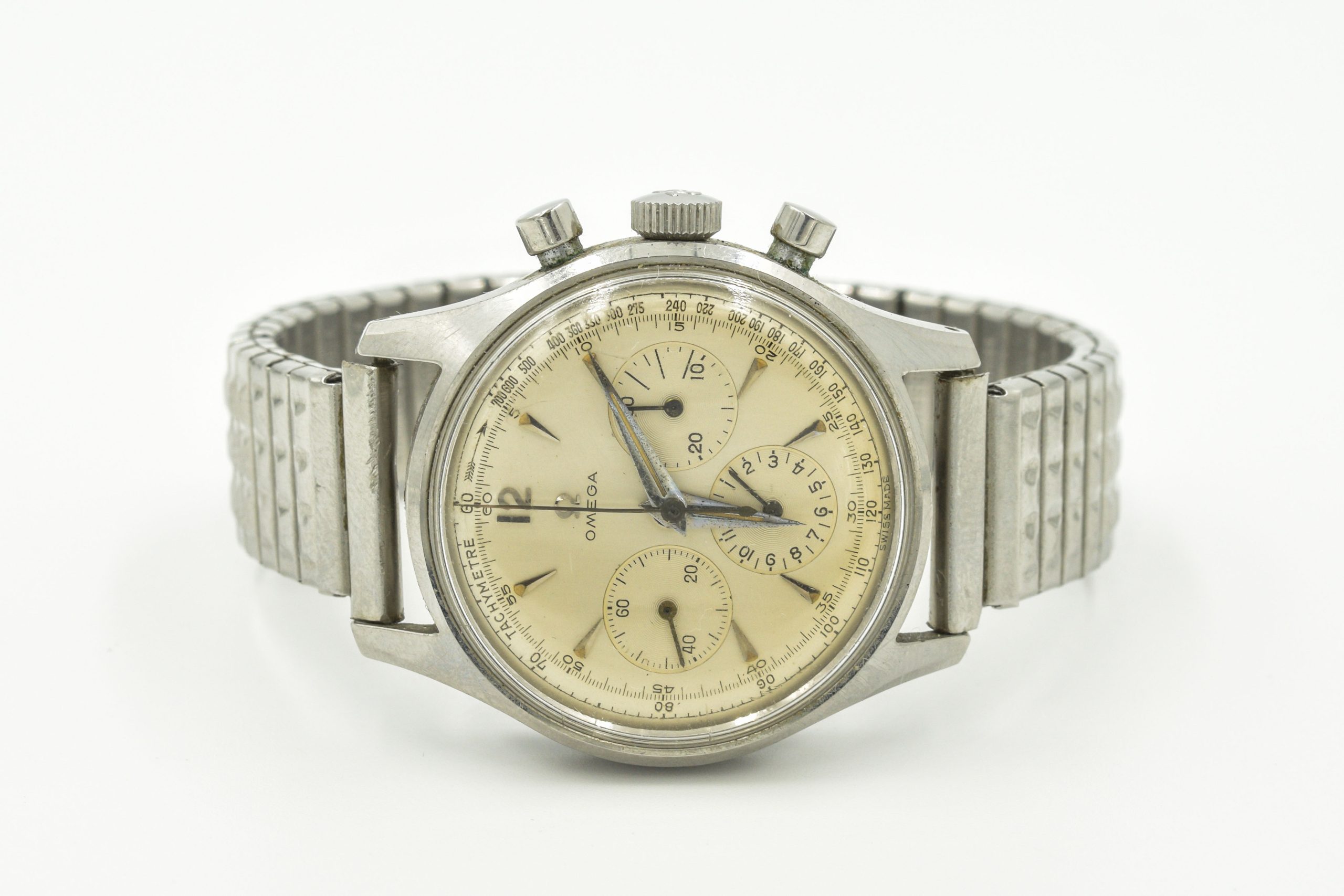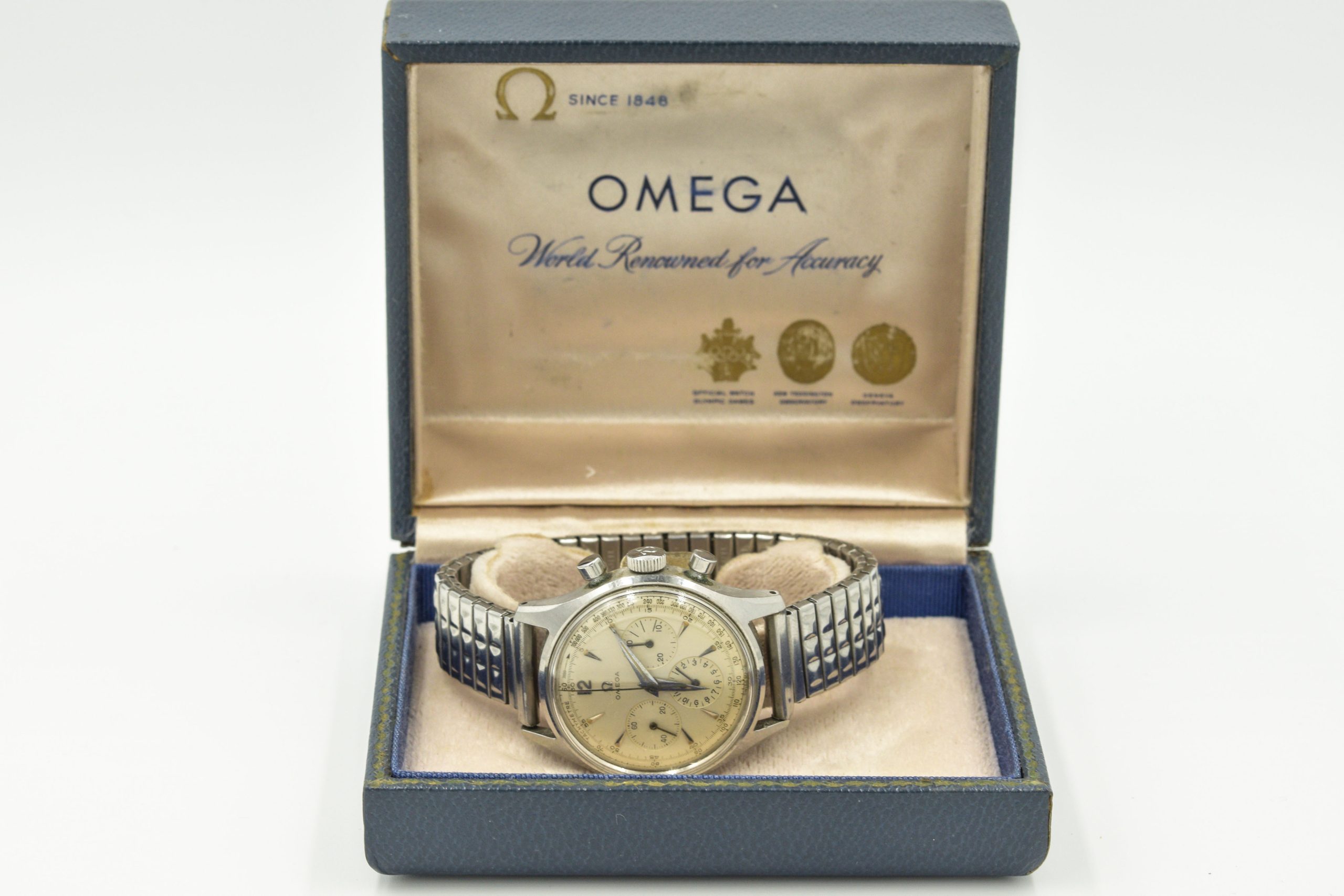 MK Personal Collection Rare Military Omega Chronograph Ref 2451 Cal 321 Wristwatch Circa 1957 Fighter Pilot Distinguished Flying Cross Recipient