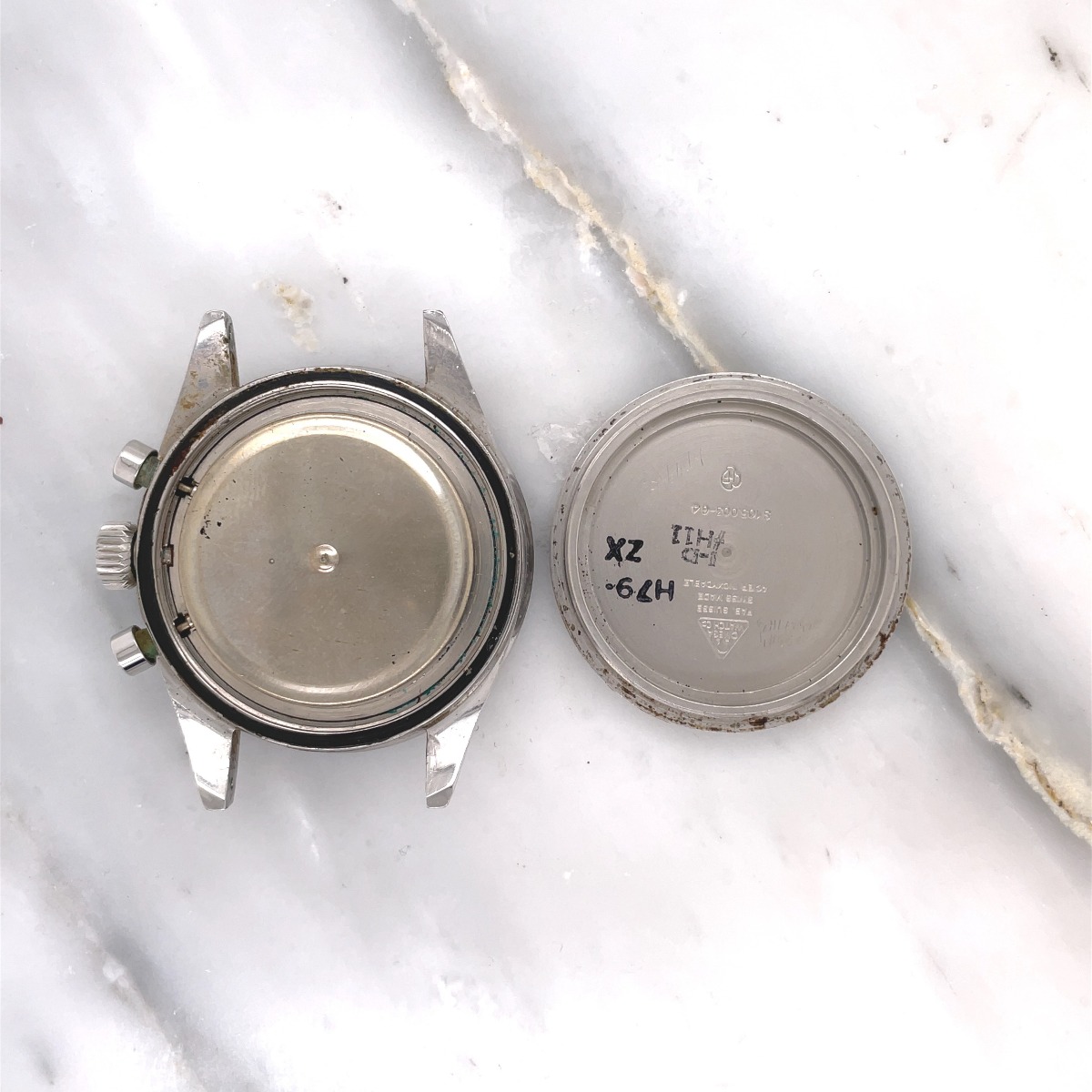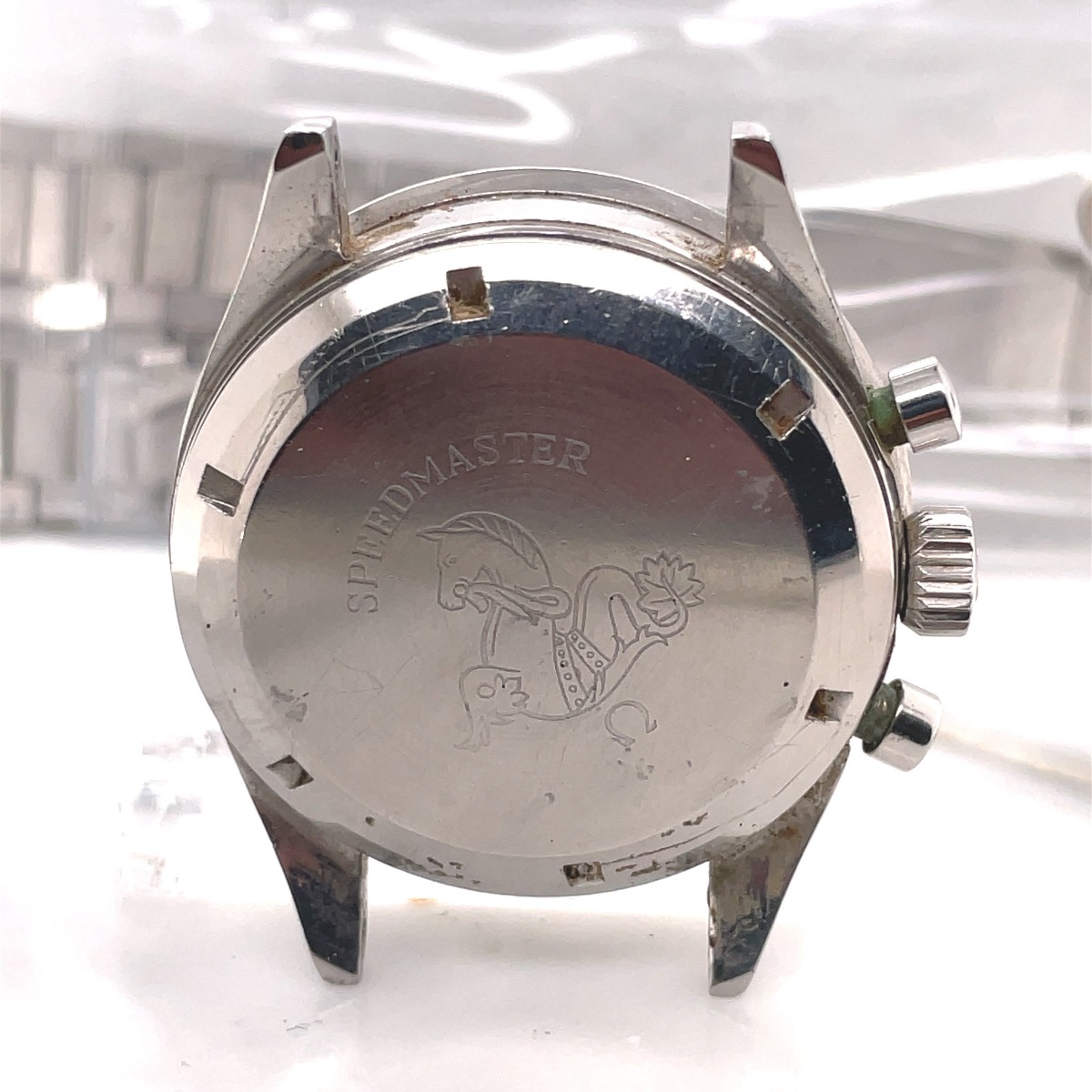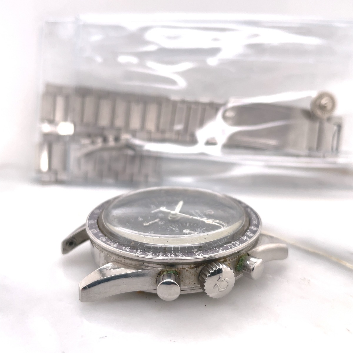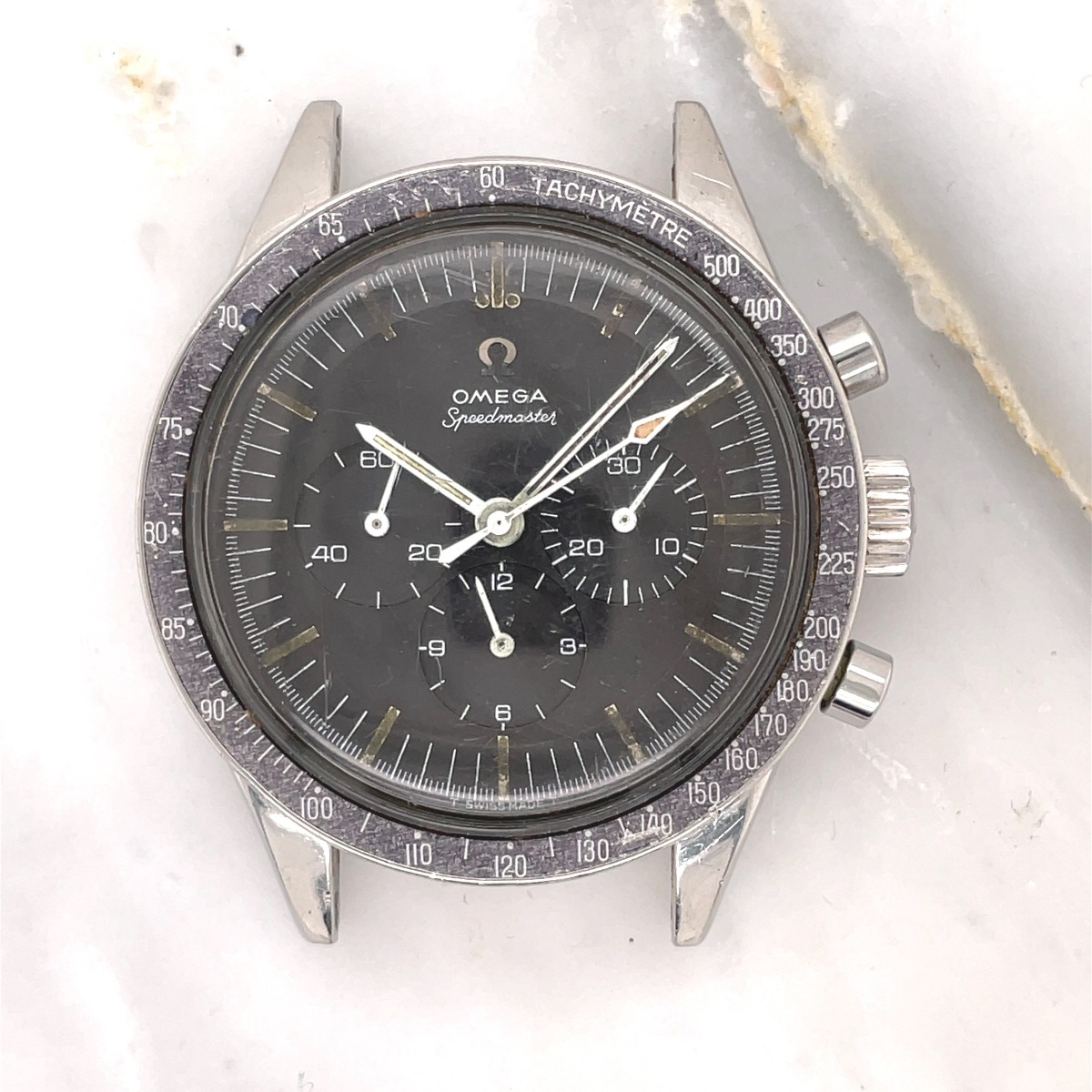 MK Personal Collection The present lot is part of a larger privately held collection and is intended for exhibition purposes only. MK Rare Omega Speedmaster Ed White Cal.321 Wristwatch Circa 1965 Ref 105.003-64. This watch has a very rare Movement No. 22.087.028 Circa 1964 17-jewel Cal.321 chronograph movement, topped with a rare original black dial (T-Swiss-T) luminous baton hour markers and outer 'racing' five minute divisions, subsidiary dials at 3, 6 and 9 for running seconds, 30 minute and 12 hour recording, white luminous filled baton hands, brushed and polished case with screw on back, black aluminum tachymeter bezel (faded), Omega crown flanked by twin chronograph pushers. As you can see from the photos the watch is in overall good condition. The Ref. 105.003 was released from 1963 to 1966. It gained notoriety for its use by American astronaut Ed White during his EVA in 1965, the first ever for NASA, solidifying its reputation as a part of space history. This reference, like its predecessor the CK 2915, also departed from traditional chronograph models in that it was the first Speedmaster to have baton, rather than dauphine, hands.