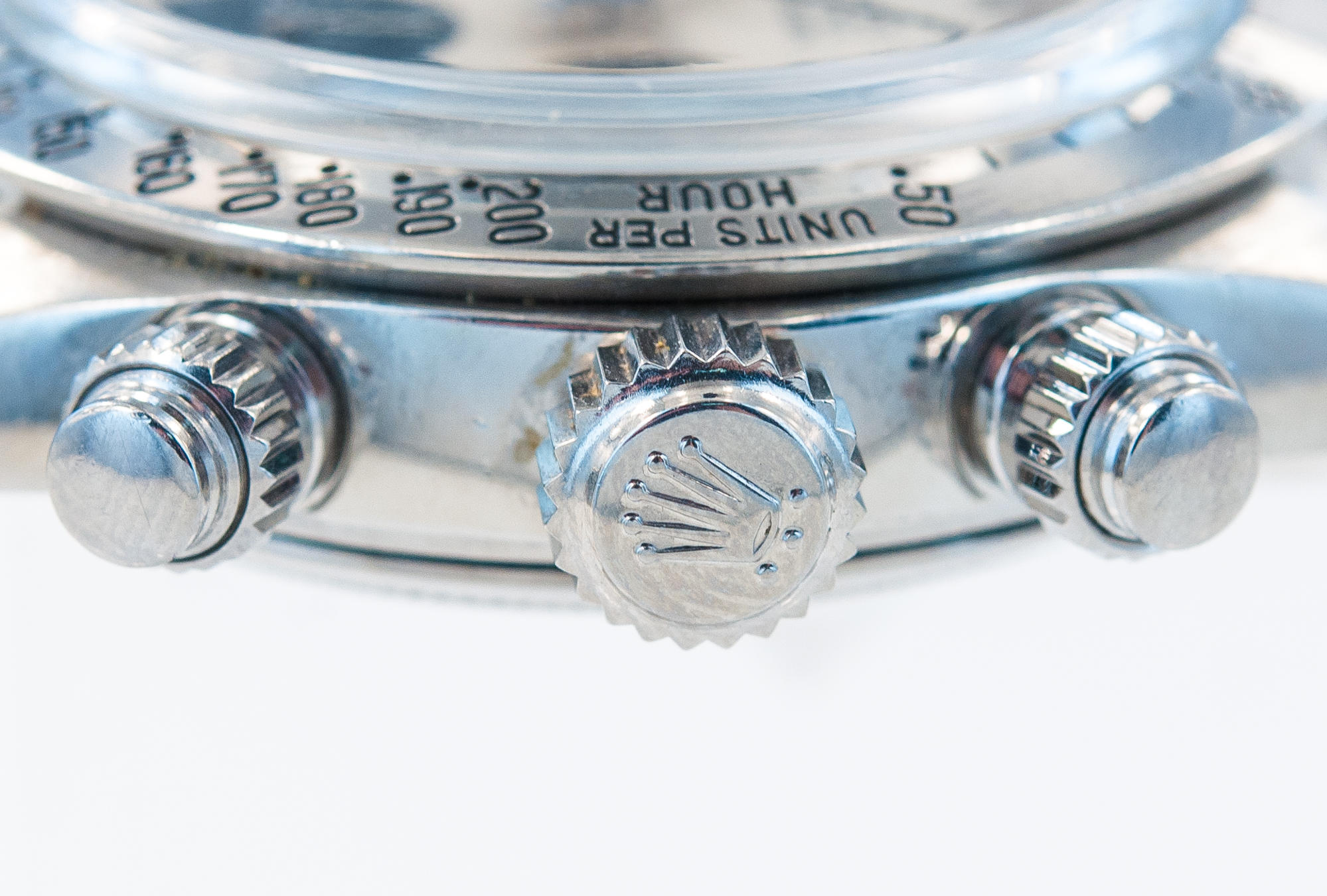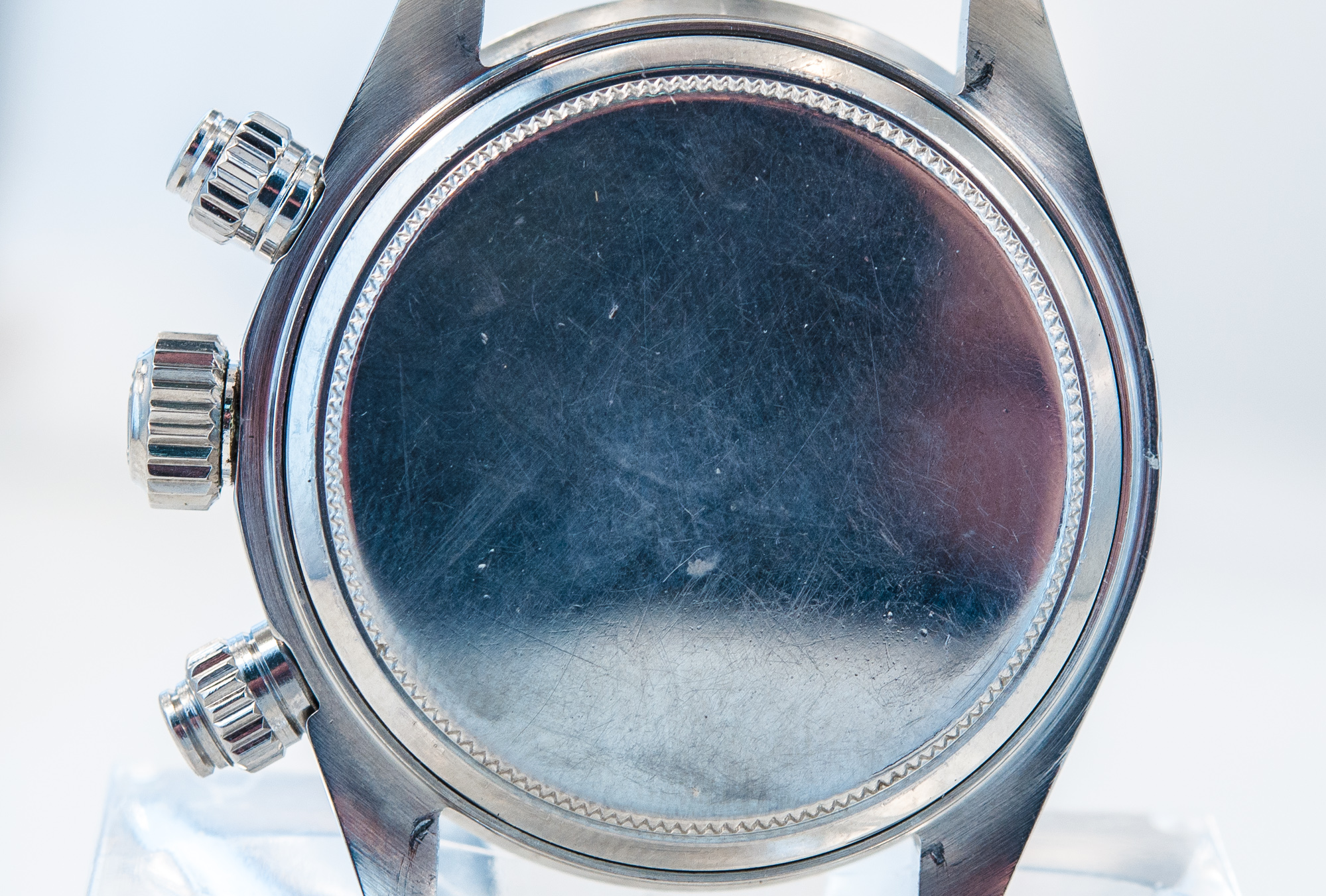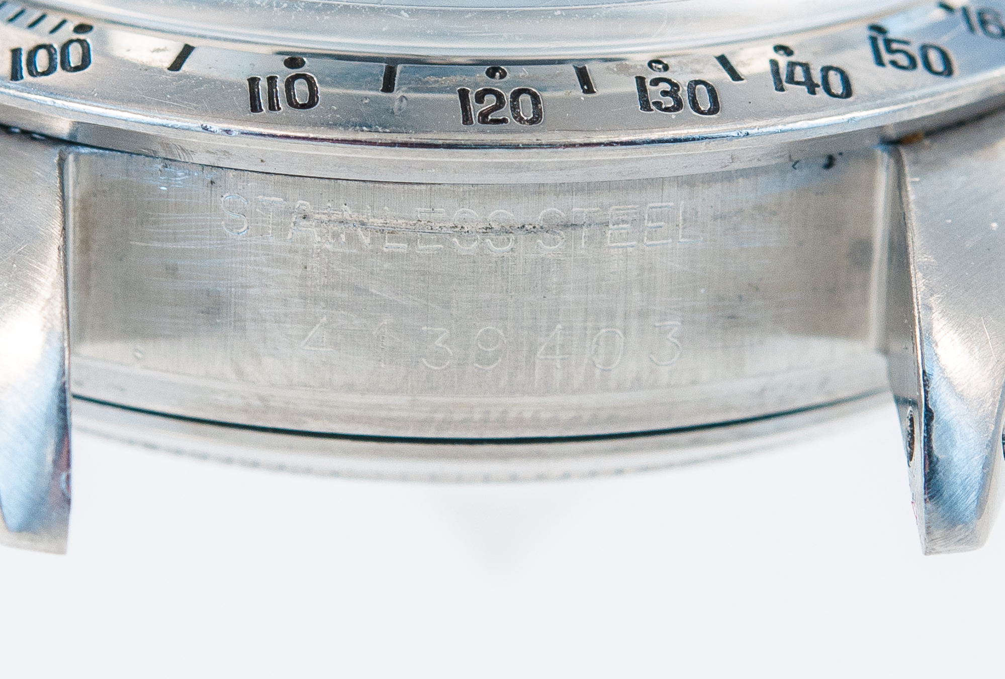 MK Personal Collection The present lot is part of a larger privately held collection and is intended for exhibition purposes only. Rare Rolex Steel Cosmograph Sigma Dial Wristwatch Ref 6263 Circa 1974. This fine men's steel Rolex Daytona Cosmograph with three-body construction case and screwed-down case back, buttons and crown Serial # 4,139,403 that measures 44.00mm x 41.00mm including the crown. The watch has a tachometer graduation on the steel bezel to 200 units per hour, bi-colored original black and silver with applied steel bâton indexes, luminous dots, outer minute/seconds track and subsidiary dials for the seconds, the 12-hour and 30-minute registers with luminous steel "bâton" hands, Rolex Cal. 727 rhodium plated 17 jewel movement with straight line lever escapement, monometallic balance adjusted to 3 positions, shock-absorber, self-compensating Breguet balance spring, microstella regulating screws. The dial, case and movement are all signed. Reference 6263 was in production - together with its metal-bezel sibling reference 6265 - since the late 1960s until 1987. The final evolution of the manual Daytona line, it is considered by many the most representative and iconic reference of the line, incorporating all the details which made the Daytona a masterpiece of design: bezel with black insert bearing a tachymetre scale, screw-down pushers, and the unmistakable Rolex Oyster case. The present version with silver dial and black sub-dials/registers has a stealth and sporty feel but also grants the timepiece an undeniably enormous aesthetic impact thanks to the black/white chromatic scheme which alternates obviously on the dial. The present example manufactured circa 1974 is a variant from the norm as it features an elegant and attractive "Sigma" dial. The "T Swiss T" signature at 6 o'clock is flanked by the Greek symbol Sigma, denoting the markers are white gold. Research shows that the "Sigma" notation appeared on Rolex dials in the early 1970s, following the issue of a set of guidelines by APRIOR (Association pour la promotion industrielle de lor: Association for the industrial promotion of gold). Such guidelines indeed suggested (but it was not compulsory, hence not all dials with gold bear the sigma) to add the Greek letter sigma to the dial of watches bearing gold details (such as the markers, in this case). Possibly due to the very cryptic nature of this designation, it was abandoned after a few years.