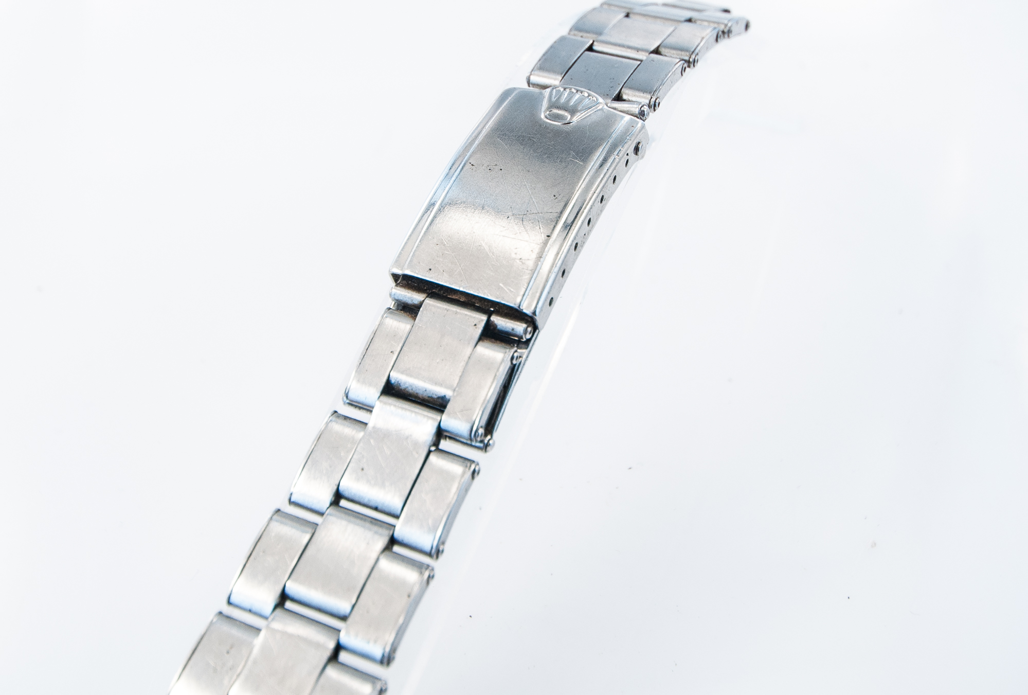 MK Personal Collection The present lot is part of a larger privately held collection and is intended for exhibition purposes only. Rare Rolex Submariner Ref 5512 Superlative Chronometer Wristwatch Circa 1966. This very fine and rare men's circular wristwatch by Rolex Watch Co., Submariner Model Ref 5512/5513 in a three piece steel case measures 47.60mm x 43.00mm including the crown (Serial #1,552,XXX). The watch has an original black dial with luminous round, triangular and baton indexes and luminous "skeleton" hands. Cal 1570 rhodium plated 26 jewel movement with a straight line lever escapement, monometallic balance adjusted to five position and temperatures, shock absorber, self compensating Brequet balance spring, microstella regulating screws (Serial #D980,XXX) that is in running condition. The watch does need an overhaul. It is attached to a steel oyster Rolex bracelet that measures 8 1/4" long. The bracelet is broken. (AKSS)