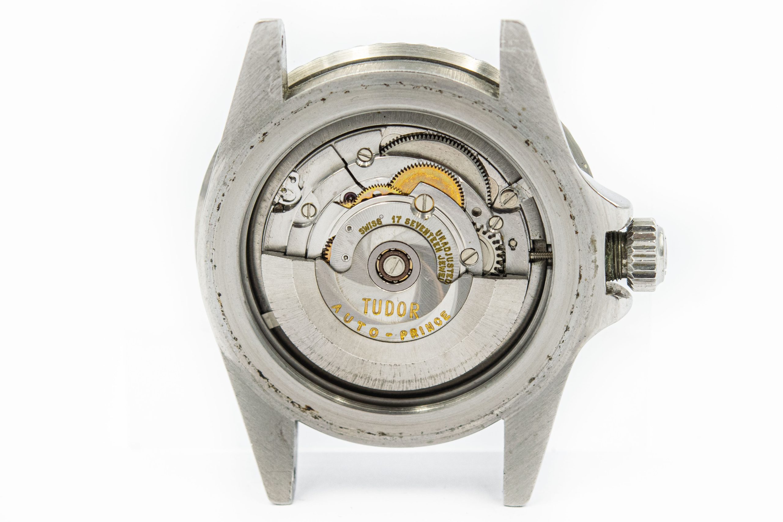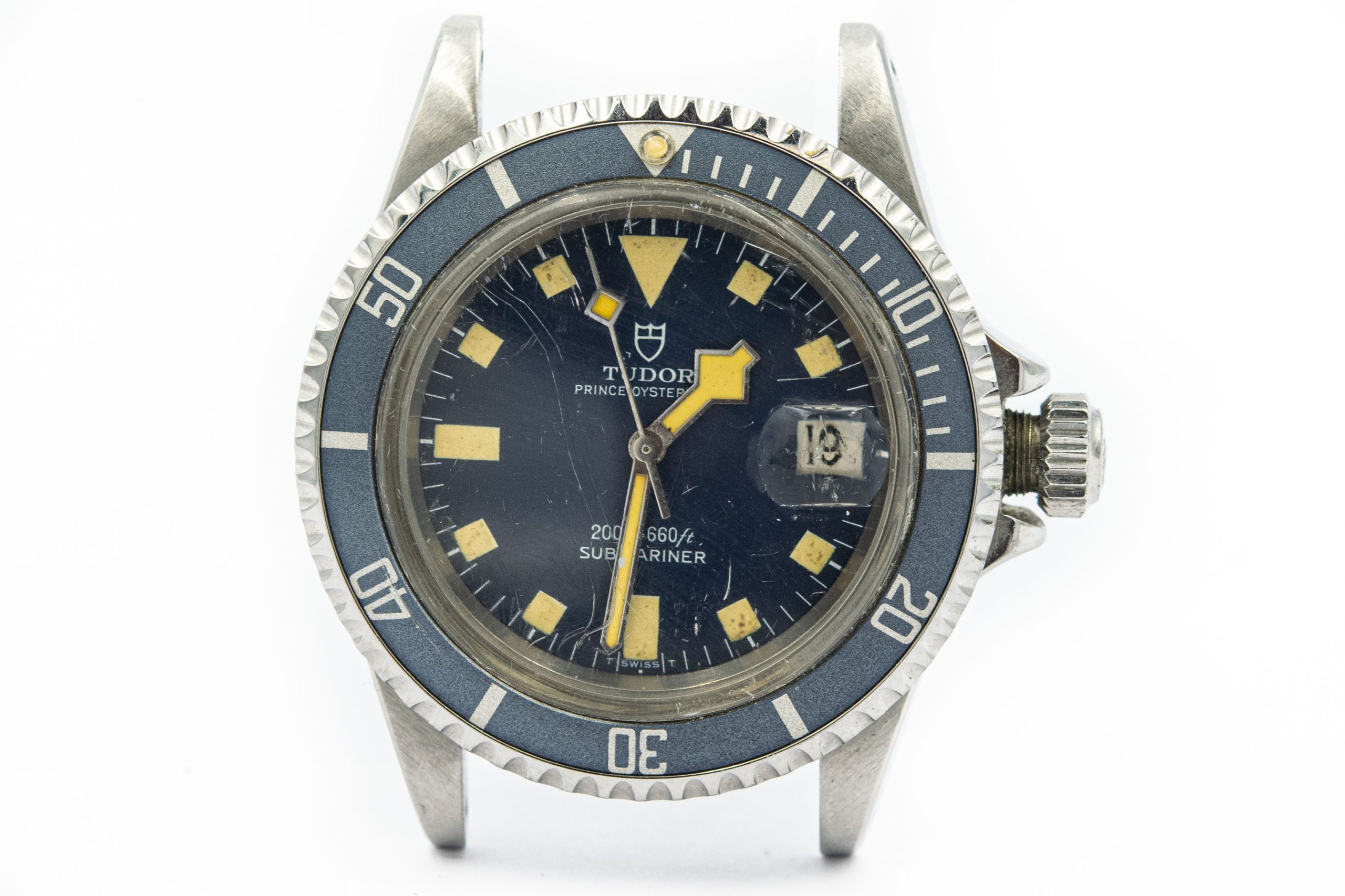 MK Personal Collection - Rare Snowflake Tudor Prince Oyster Date Submariner Wristwatch 200m/660ft Case No. 935877 Ref. 9411/0 Case Made by Rolex Geneva Circa 1977. This is a men's steel wristwatch in a waterproof oyster case. It measures 48mm x 43mm including the crown. (Serial # 935877 Ref. 94110). The watch has a Cal. 2784 nickel plated 17 jewel automatic movement signed Tudor Auto-Prince. The watch is in good running condition and it is topped with an original blue snowflake dial with matching hands both with original lume. It is framed with a bidirectional bezel with matching blue insert. The watch is accompanied with a steel Rolex modern replacement band. As you can see from the photos the watch is on overall excellent condition. Tudor introduced the distinctive Snowflake handset in its 1969 catalog with the references 7016 and 7021. Accordingly, the indexes on the dial took the square shape you see here, which differentiated this Sub even more from its Rolex-born siblings. A few other design peculiarities further set the Tudor Submariner apart, including the existence of a blue configuration (dial and bezel), and for the version with date, a lower magnification and different font for the date disc. The following generation, the references 9401/0 and 9411/0, luckily kept these unique attributes which explains the popularity they now enjoy. It might have looked different than a Rolex Submariner (and be priced lower) but it was no less tough, explaining why the French Marine Nationale trusted these diving watches for more than 20 years.