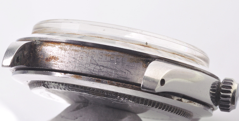 MK Personal Collection Rare Steel Tudor Ranger Wristwatch Circa 1970's. The watch features a three piece steel oyster case Serial # 874272 Ref. 9050/0. It was made in Switzerland around 1975. The watch is fitted with an automatic movement calibre 2784 with 25 jewels that is in running condition. It will need an overhaul in order to keep accurate time. The watch is topped with an original black painted dial with Arabic indexes displays hour, minute, and second with date window at 3:00 o'clock. The black dial shows silver hands. The watch case is made of stainless steel. As you can see from the photos the watch is in overall excellent condition.
