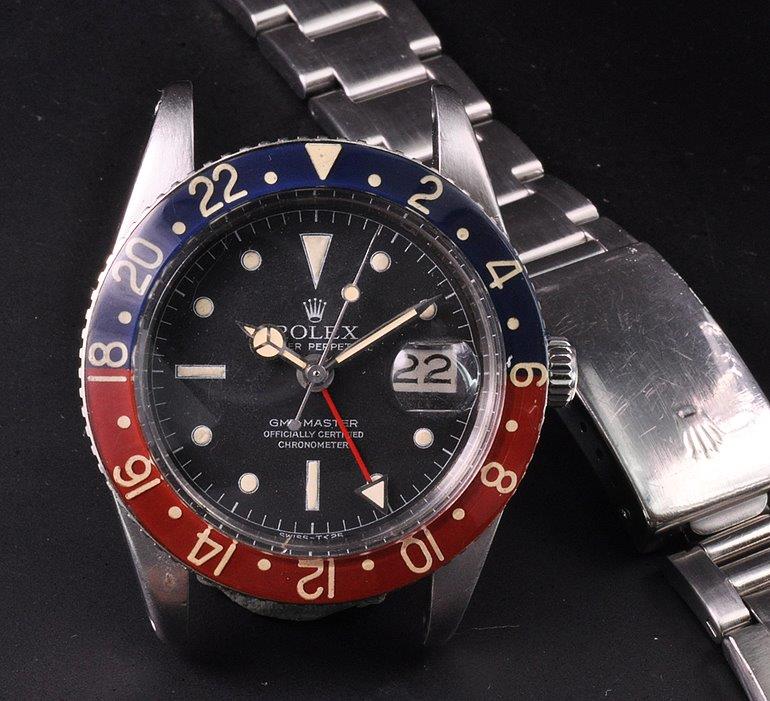 MK Personal Collection Rolex GMT Master Ref 6542 No Crown Guard Wristwatch Circa 1959