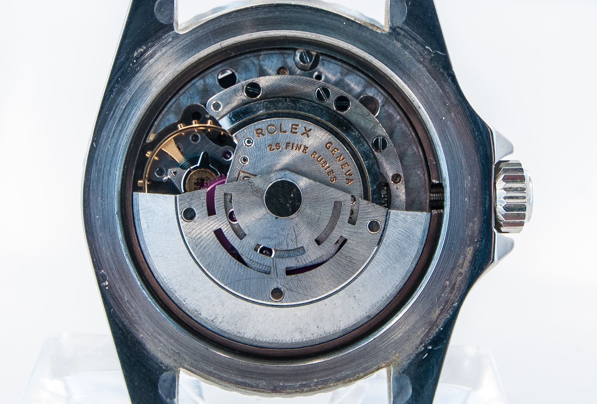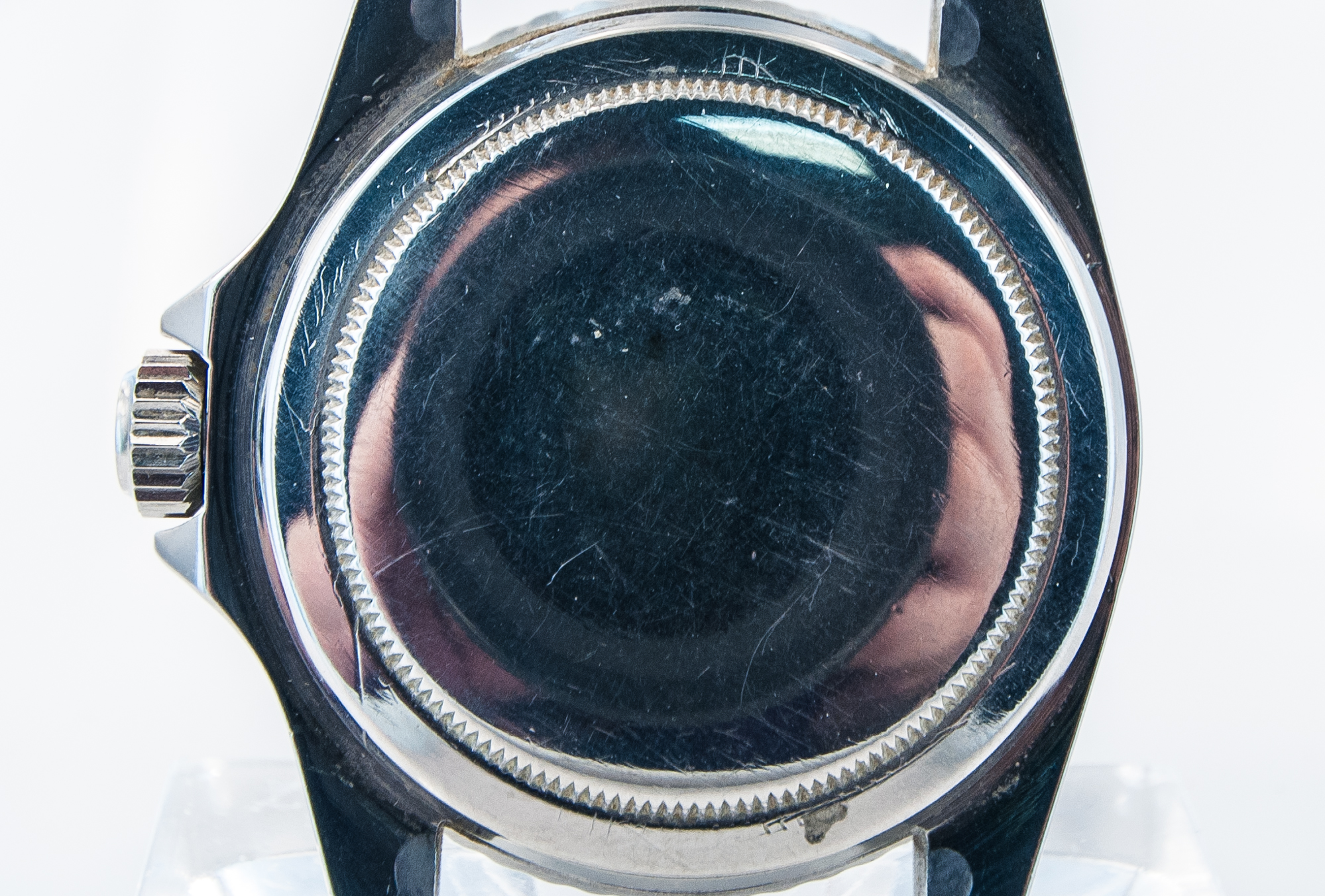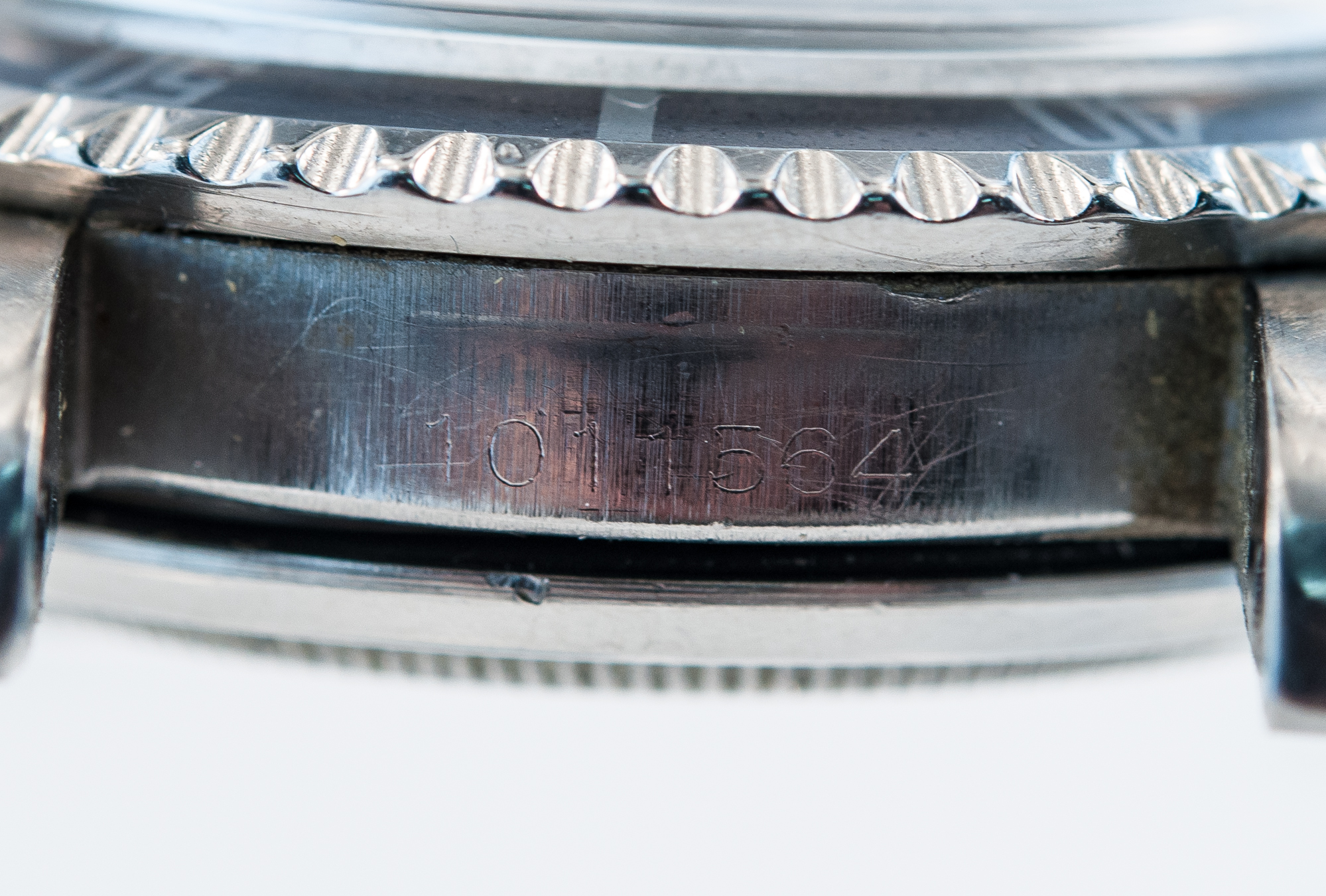 MK Personal Collection The present lot is part of a larger privately held collection and is intended for exhibition purposes only. Super Rare Gilt Underline Dial Rolex Submariner Ref 5513 Pointed Crown Wristwatch Circa 1963. This is one of the rarest Rolex watches made. It features a Submariner Ref 5513 with pointed crown guards Serial # 1.011,564 Ref 5513 stamped on inside back 5513 III.63. It features a Cal. 1530, rhodium-plated, "oeil-de-perdrix" decoration Rolex movement with 26 jewels. It has a straight line lever escapement, monometallic balance adjusted to temperatures and five positions, shock-absorber, self-compensating free-spring Breguet balance-spring and microstella regulating screws that is in running condition. The watch does need an overhaul and crown adjustment. It is topped with a rare and exotic original black glossy dial with gold (gild) coated lettering which makes it even more rare, the unusual underline. It has a round, triangular and bâton indexes, outer minute divisions. The dial is outrageous and the watch is all original. The Rolex Submariner reference 5513 was introduced in 1962 and its production was carried on for 28 years, making it one of the longest-lasting Submariner references in Rolex history. The 5513 was retailed alongside its sister reference 5512, a Chronometer certified 4-line Submariner introduced in 1959. The reference 5513 was progressively improved over the course of its life, starting with matte dials and transitioning to glossy dials.