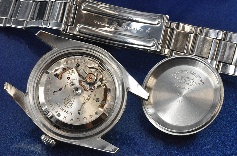 MK Personal Collection The present lot is part of a larger privately held collection and is intended for exhibition purposes only. This is a super rare Tropical Dial Rolex GMT Master Wristwatch Ref 6542 No Crown Guard, Circa 1957. This watch with Ref 6542 and Serial #1.262,690 has a three-body construction screwed-down case back and crown, red and black graduated revolving perspex bezel for the second timezone in 24 hours, crystal with "Cyclops" lens (crystal is cracked), highly charismatically aged brown lacquered dial with gold printing. Among collectors, this type of dial is now called "tropical". This designation is derived from the color of the lacquer which over the years has changed from black to a warm chocolate brown; Cal. 1030 with a rhodium-plated 25 jewel movement, straight line lever escapement, monometallic balance adjusted to temperatures and 5 positions, shock-absorber, self-compensating Breguet balance-spring Serial # N693,649. This is a very rare watch and collectors don't want to miss out on this rarity. It was worn by the original owner in the 1958 Antarctic Expo International Geophysical Year. The immense popularity of the Rolex GMT-Master series to this day is a testament to the timeless design of the reference that started it all, the reference 6542. Widely considered the master of the GMT-Masters, the reference started production in 1955 and was only manufactured for 4 years, the model being discontinued in 1959. The reference is based in the mid-century glamour of air travel, having been originally designed for Pan Am pilots during the golden age of flight. It was then lifted to further accolade adorning the wrist of Honor Blackmans Pussy Galore in James Bond, Goldfinger released in 1964.