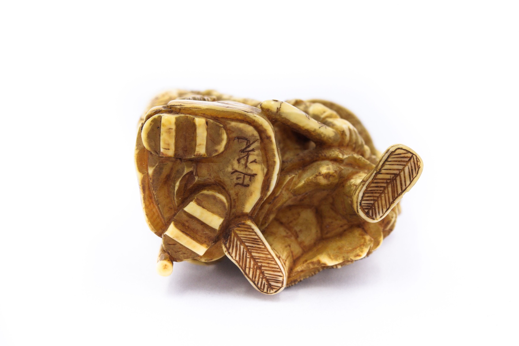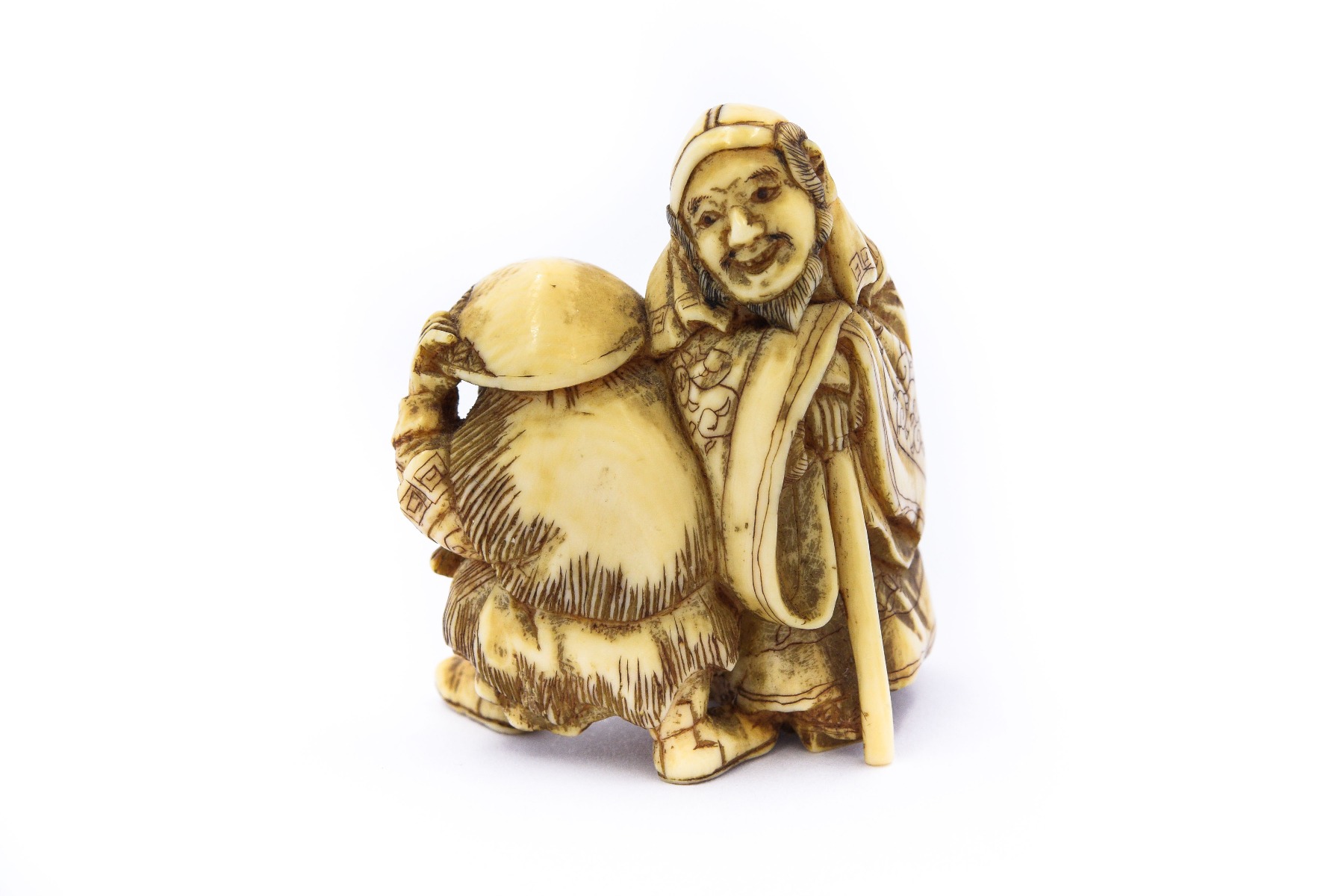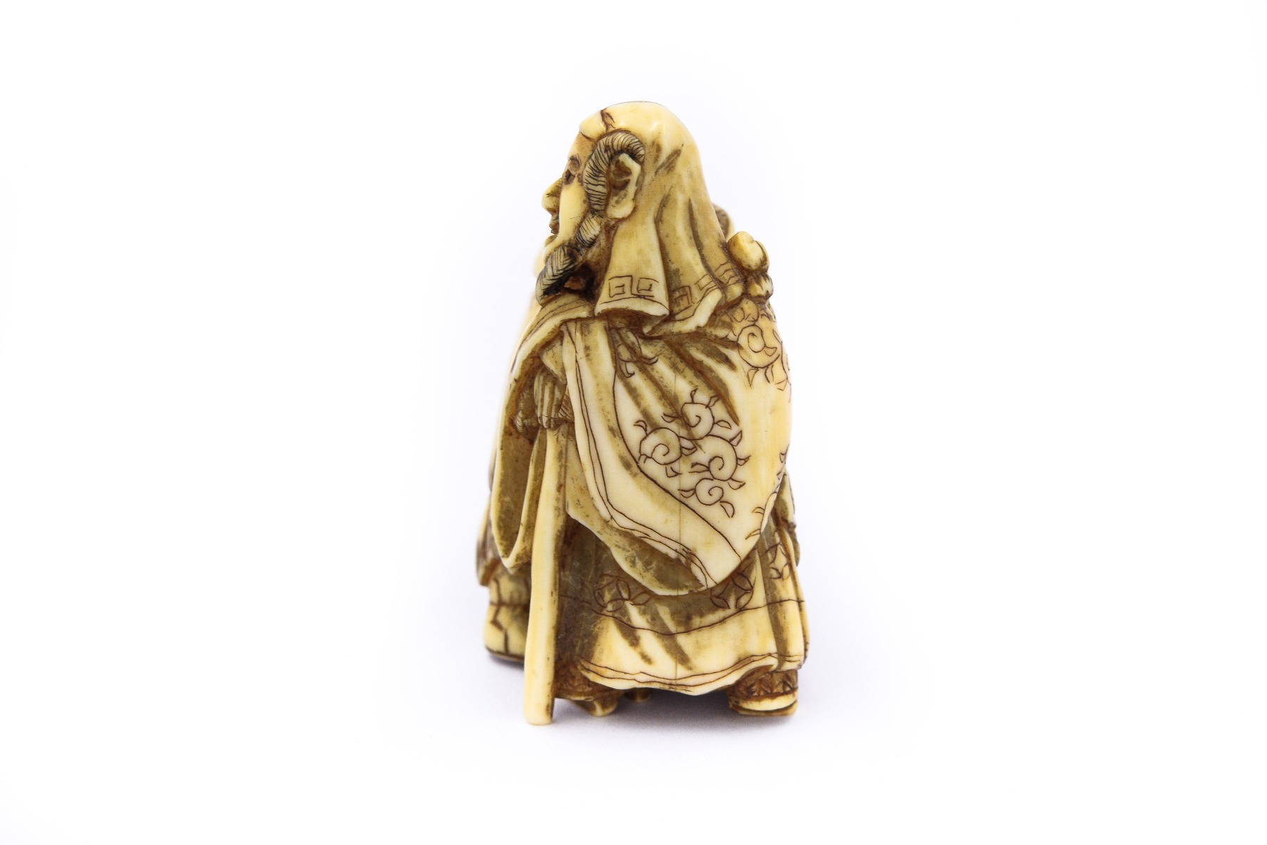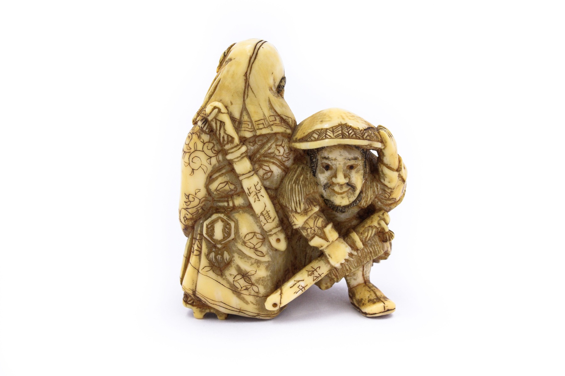 Netsuke Back of Samuri 0624; Measures 43.3mm x 32.89mm; Weight 15.6 dwt/24.25g with certificate of appraisal