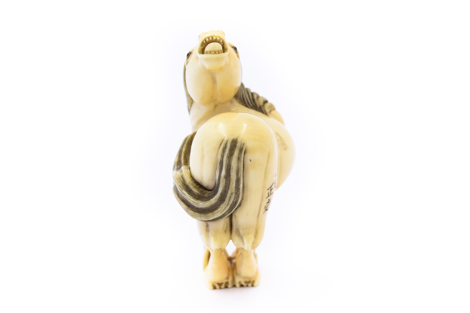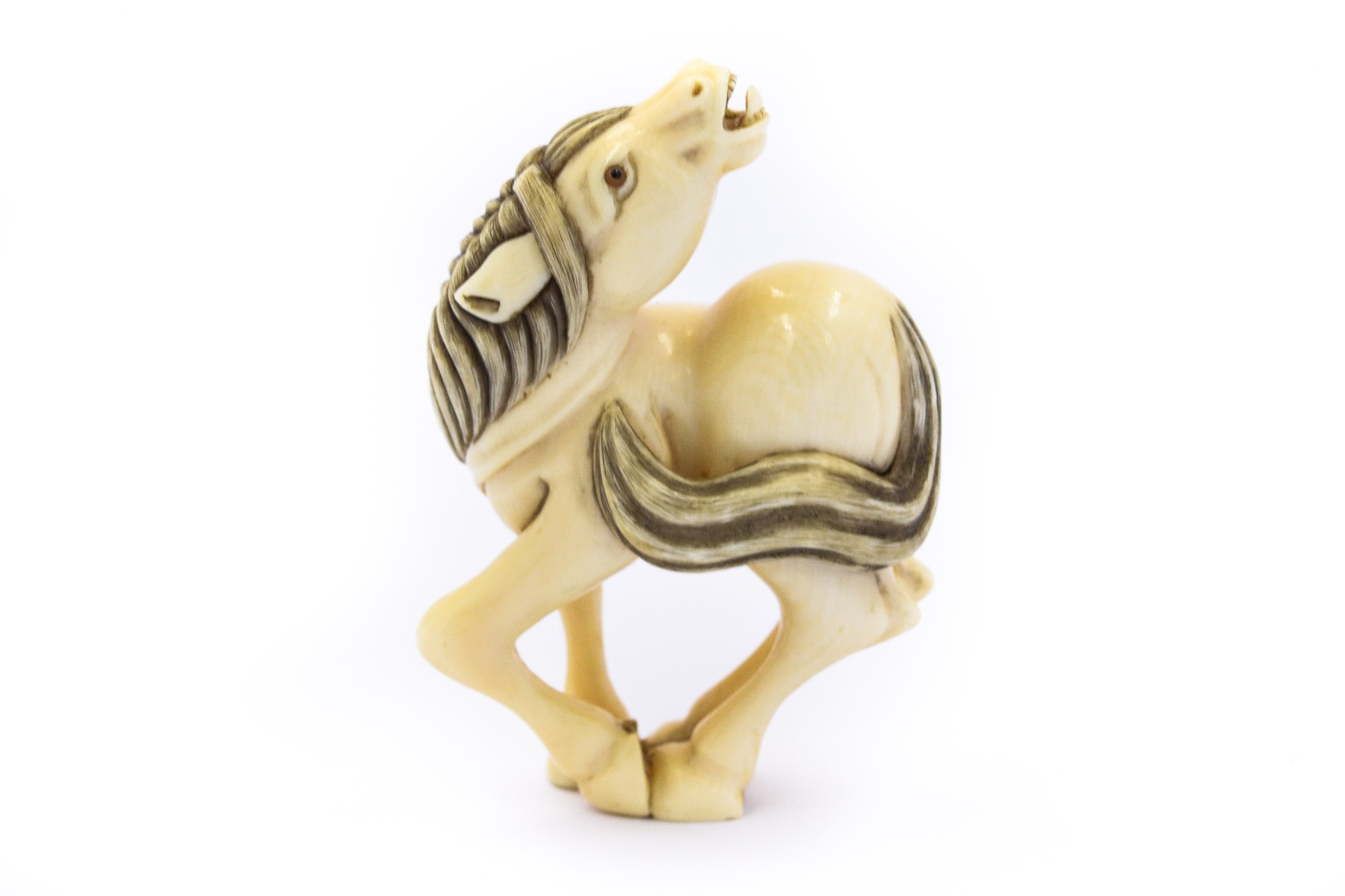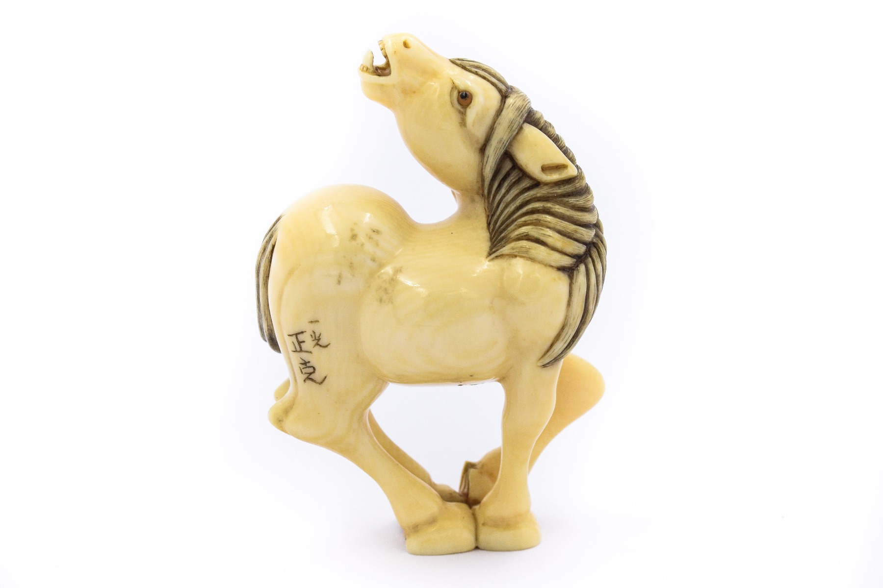 Netsuke Neighing Horse By Ikko Nasakatsu 0617; Measures 58.10mm x 42.63mm; Weighs 18.5dwt/28.67g with certificate of appraisal