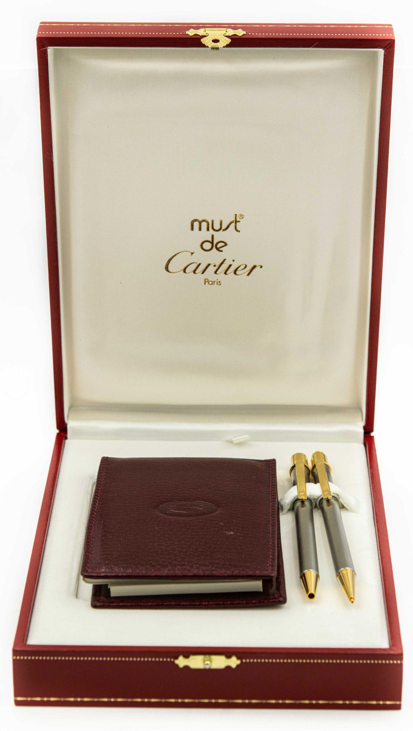 NOS Must de Cartier France Gold Finish Ballpoint Pen & Pencil Wallet Set with Box