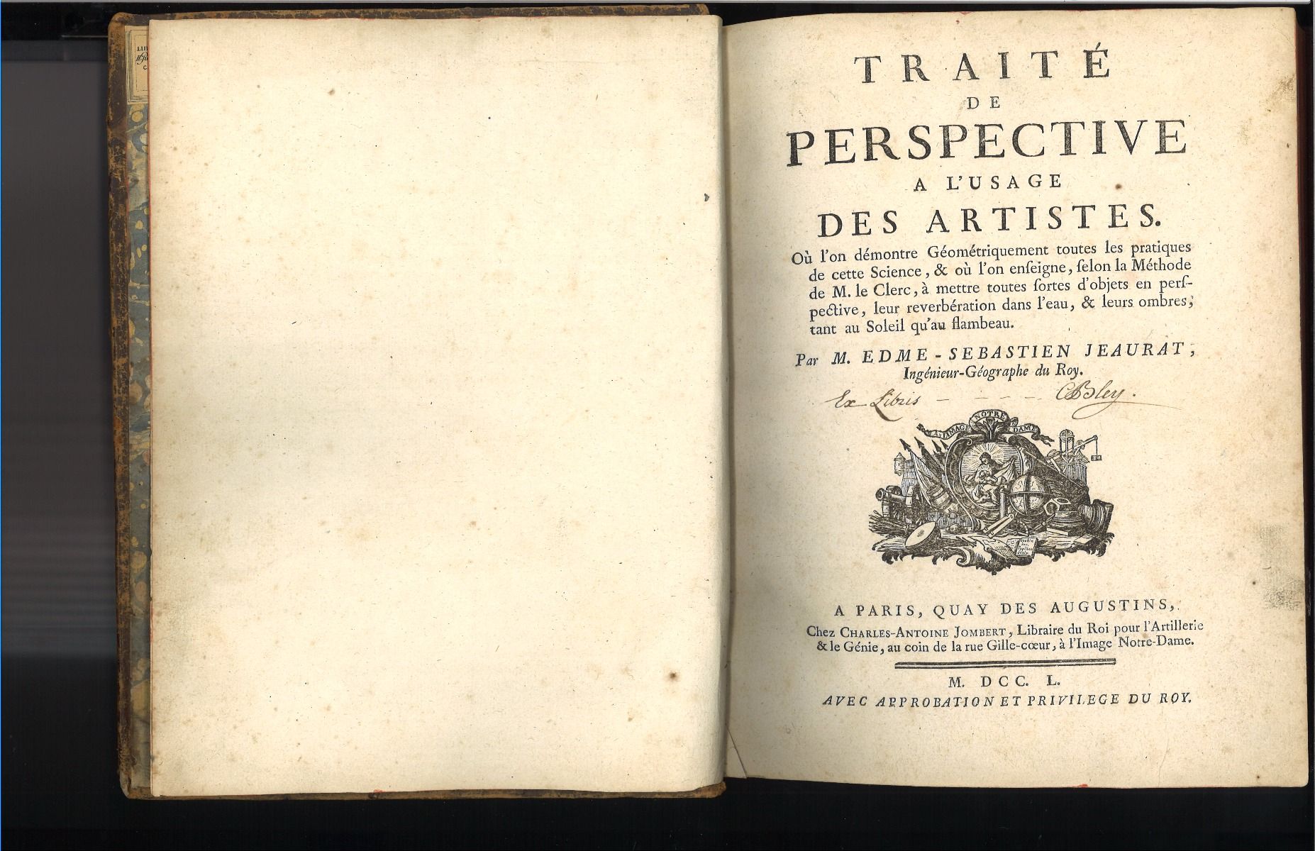 Traite de Perspective A L'usage Des Artistes; 1750-Paris-Chez Charles-Antoine Jombert; This is a book on how to achieve perspective in art works in French. The condition is very good to fine. The white pages and maps binding are intact.